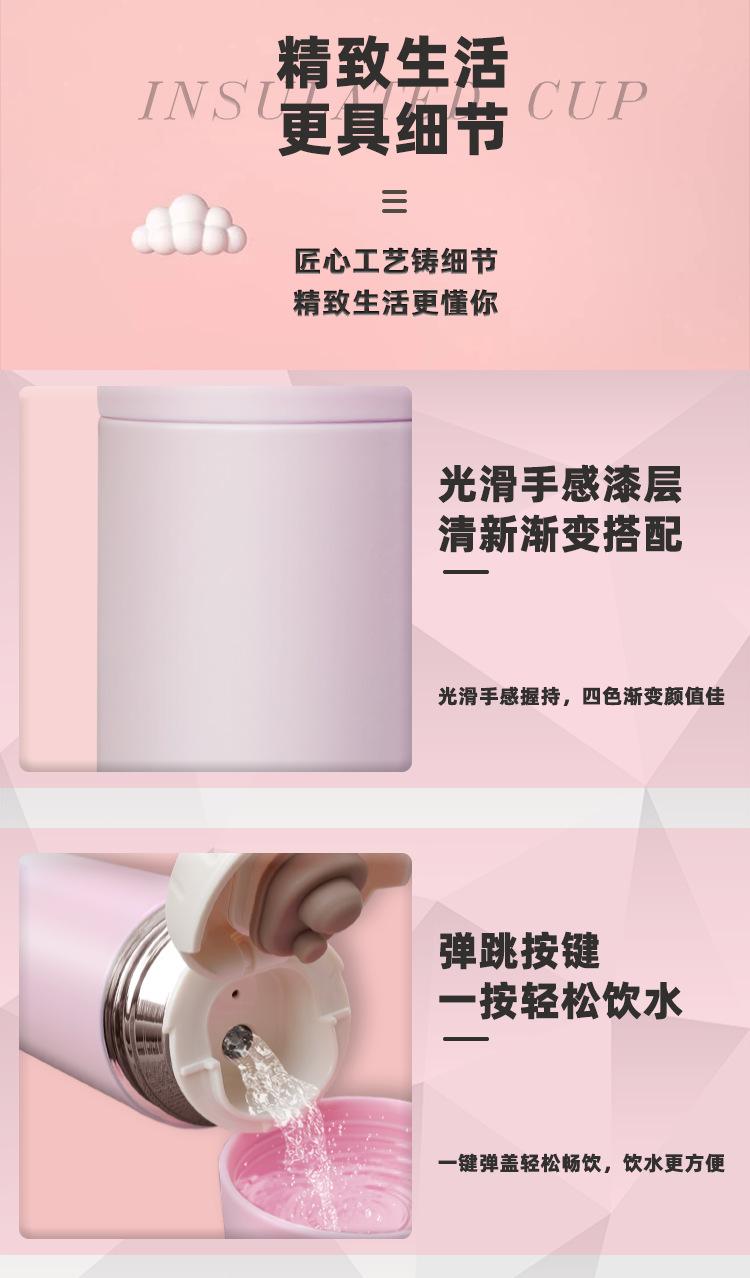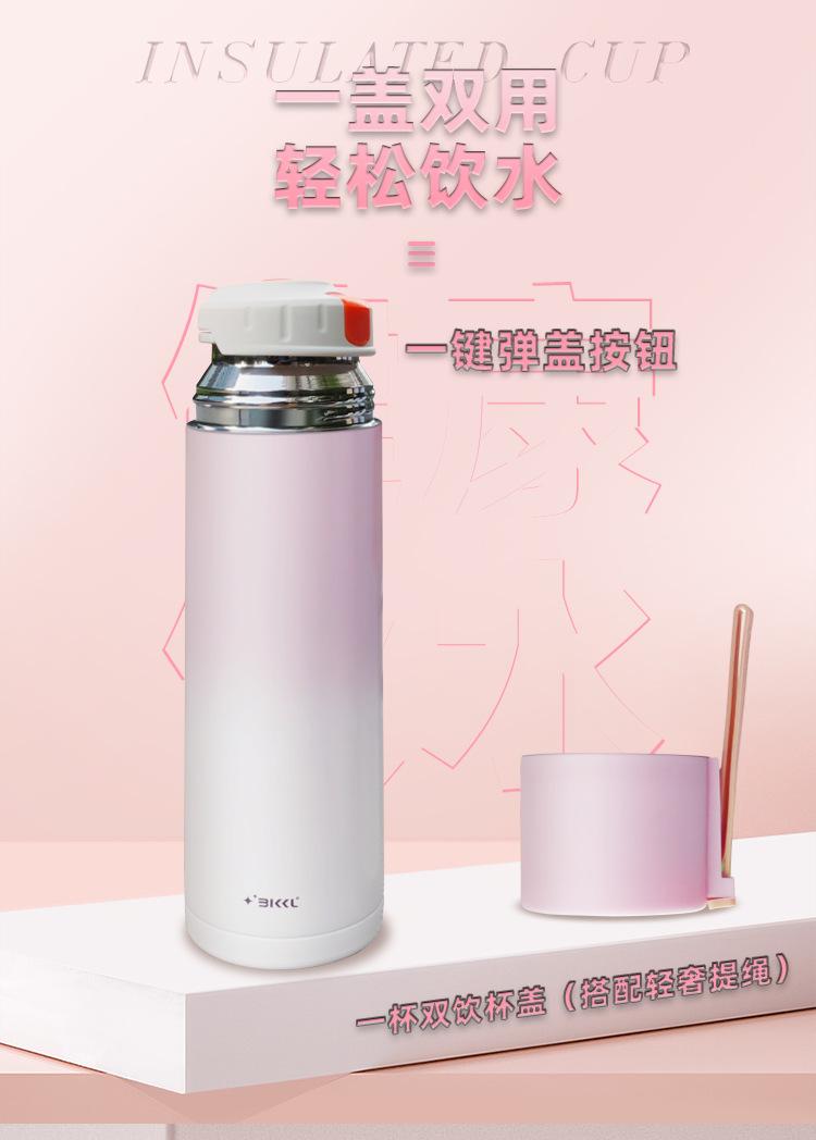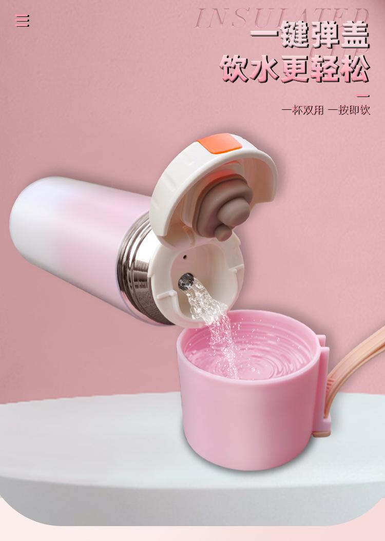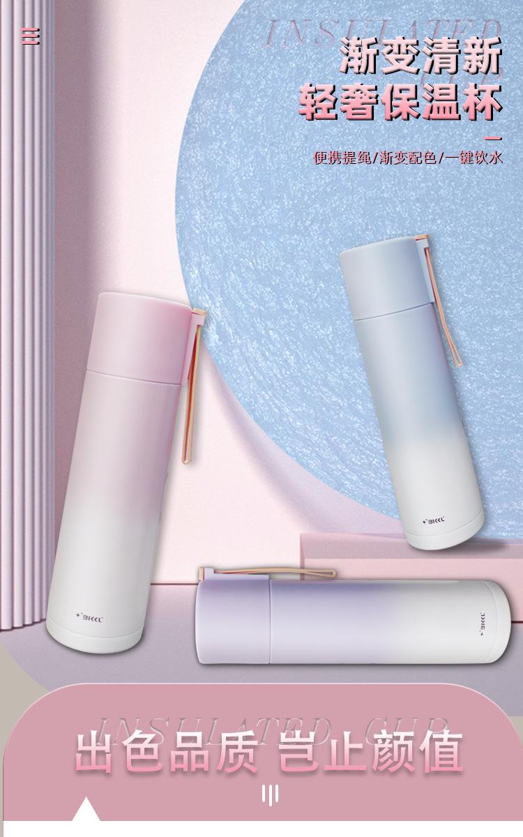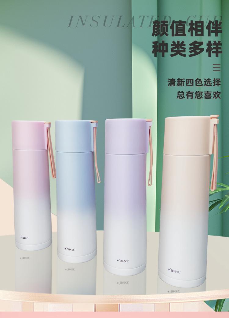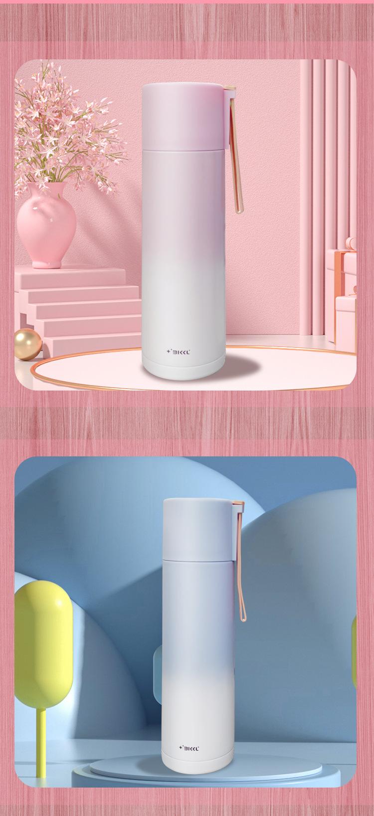 Termo de acero inoxidable 316 de alto valor de color, taza fresca con degradado para niñas, taza informal, portátil con asa, venta al por mayor