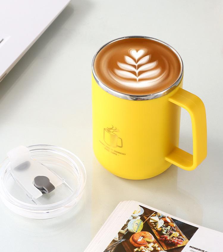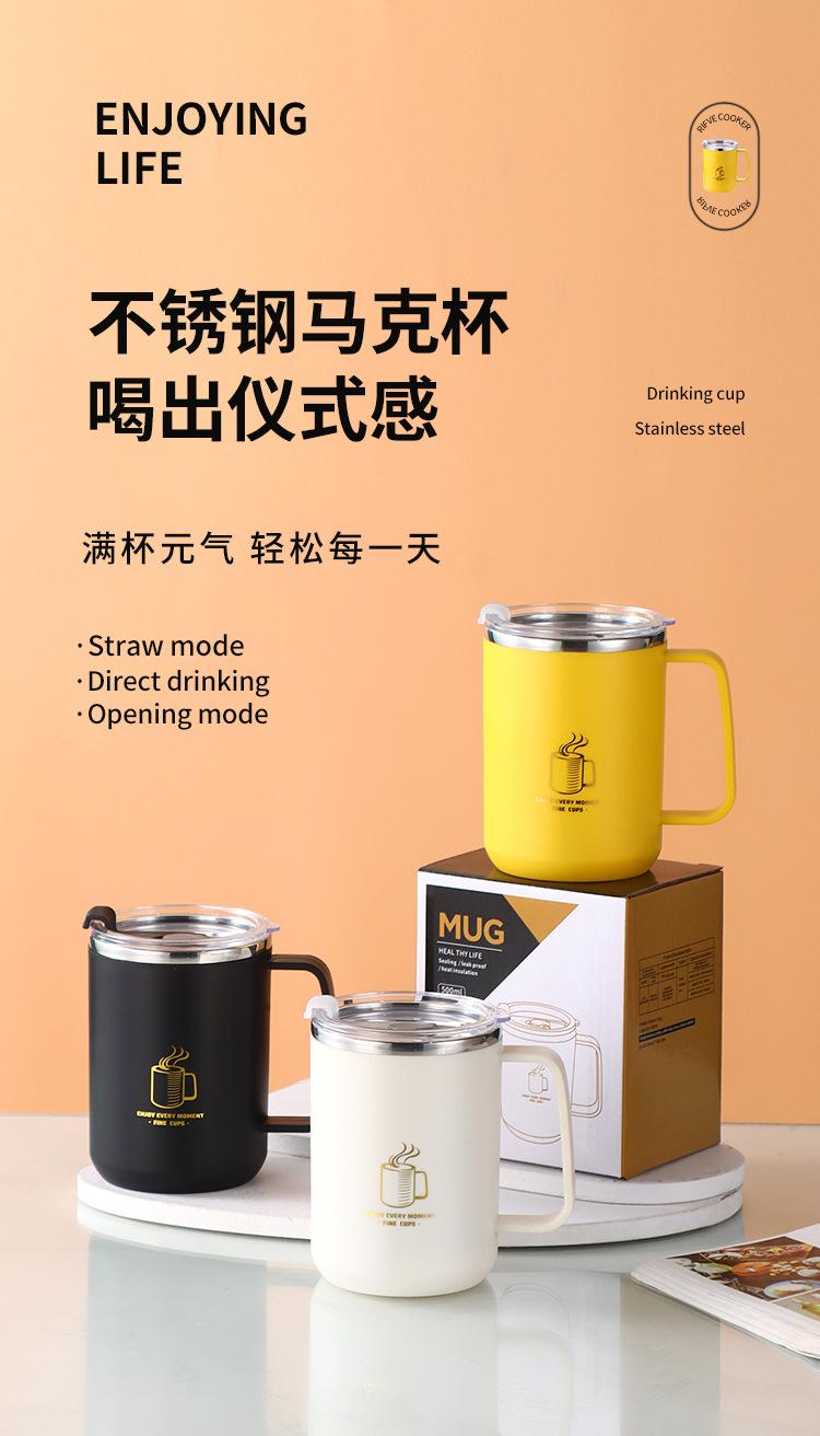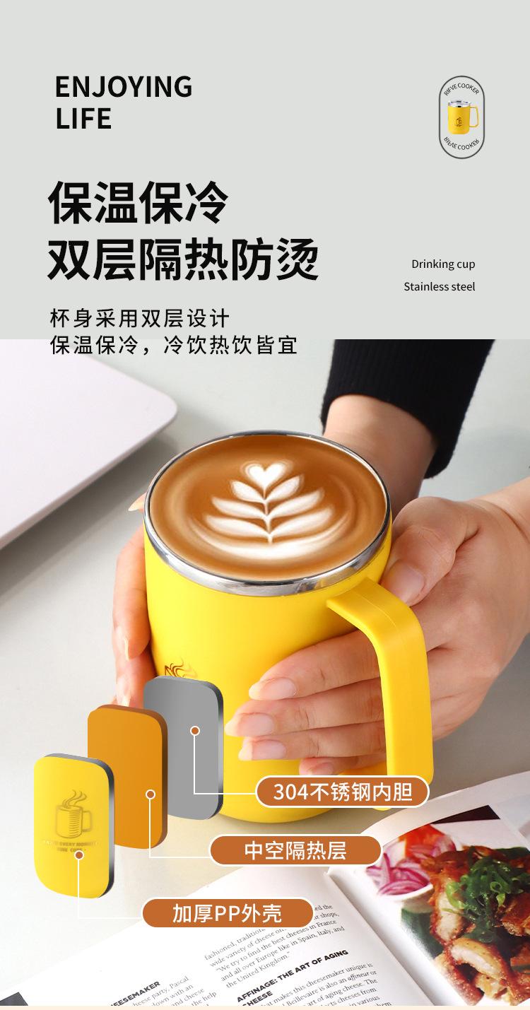 Taza de Doble Capa de Acero Inoxidable 304 con Tapa, Taza Universal para Hogar Anticaída para Oficina Aislada para Té Café Regalo