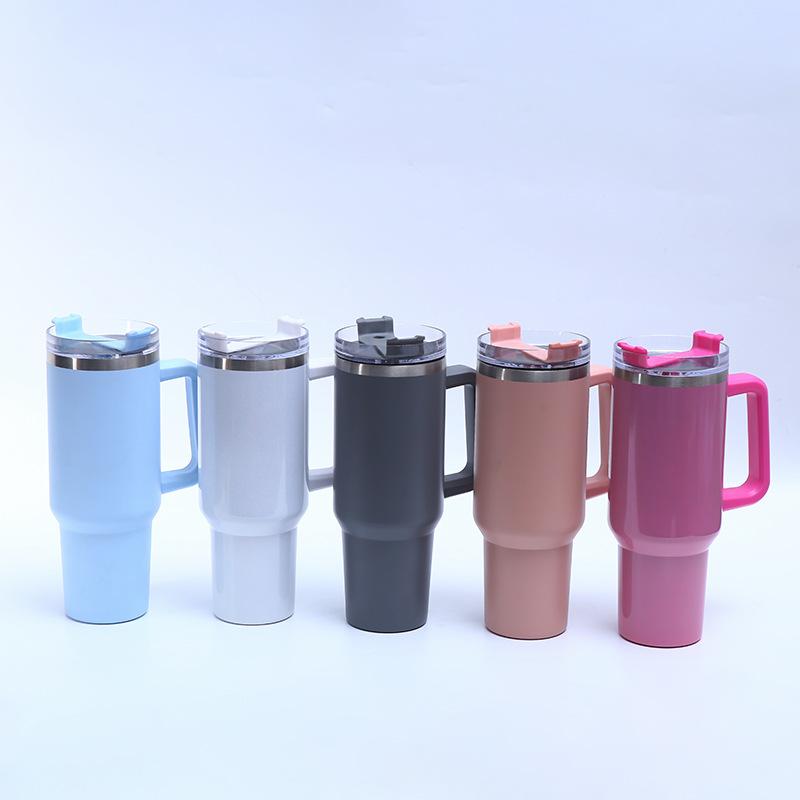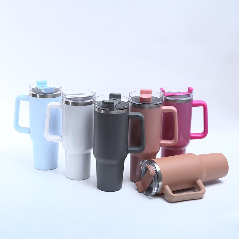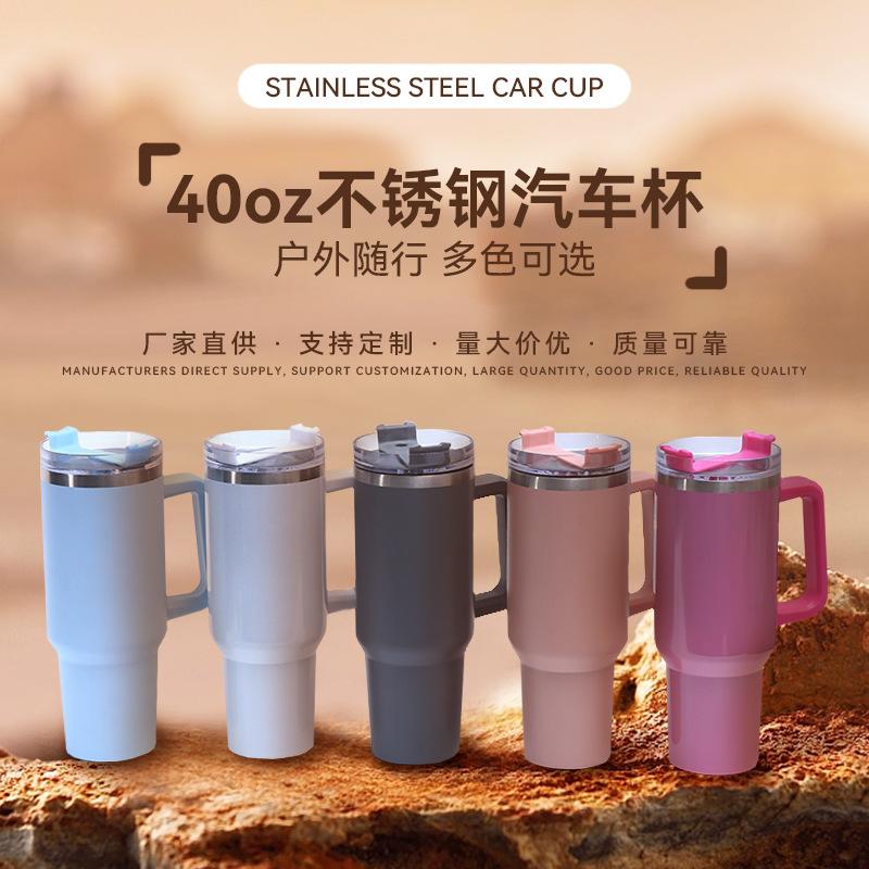 Nueva taza de plástico con asa de 40 oz para automóvil, de una o dos generaciones, transfronteriza, de acero inoxidable 304, para café frío y cerveza.
