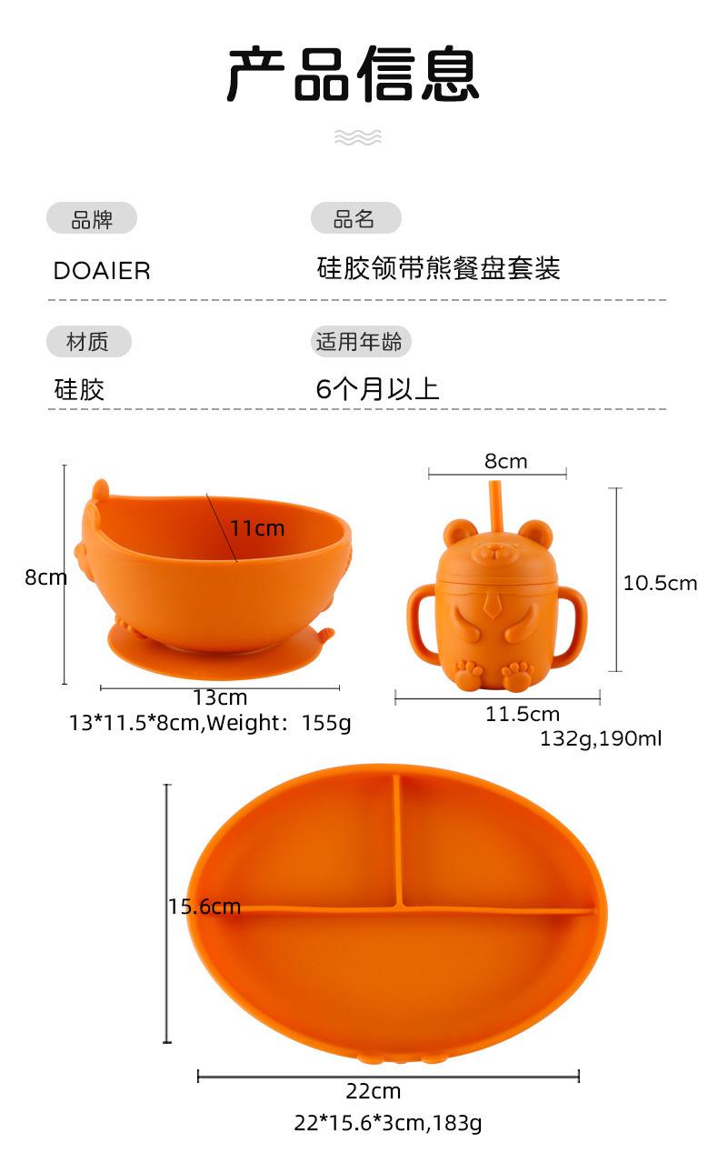 Plato Compartimentado para Comida Caliente de Bebé Transfronterizo Grado Alimenticio Silicona para Niños Plato de Cena Oso Ventosa Todo en Uno
