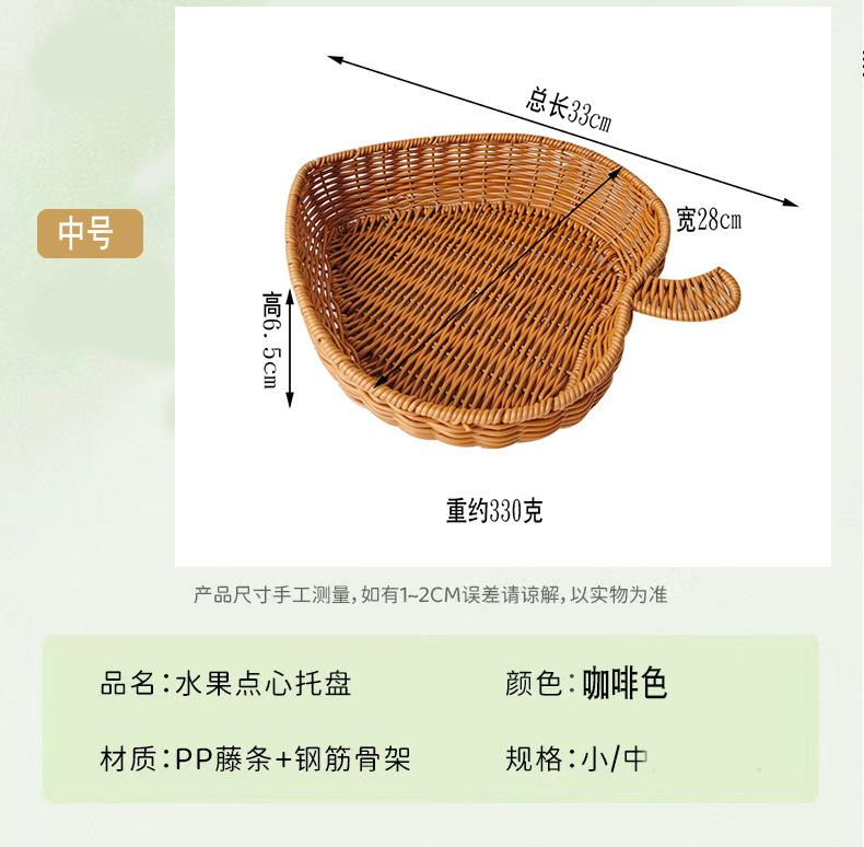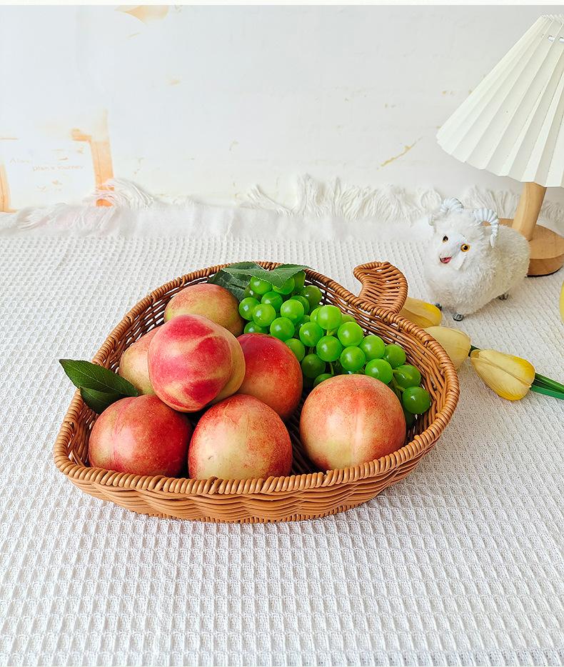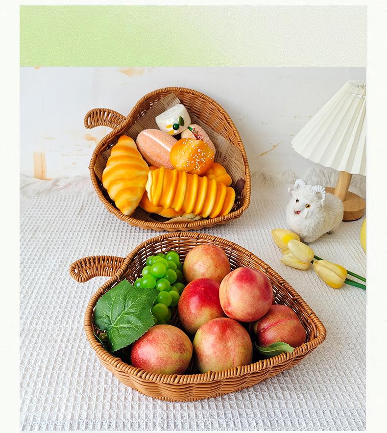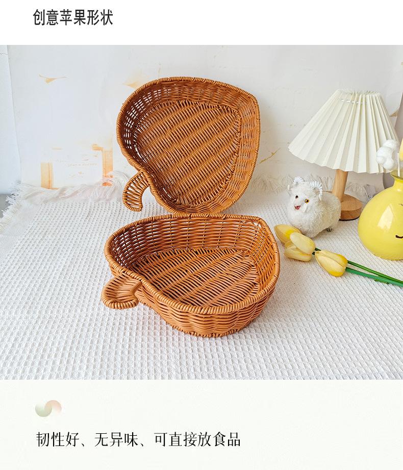 Cesta de pan de ratán, cesta para exhibir frutas y verduras, cesta para guardar refrigerios, cesta tejida de plástico con forma de manzana, bandeja para frutas