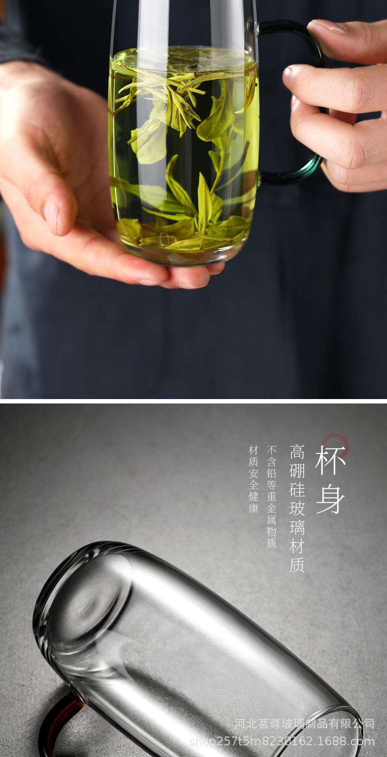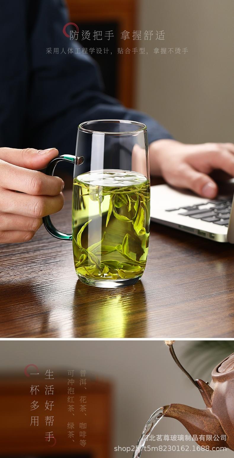 Taza de té de vidrio Taza maestra de vidrio resistente al calor Taza de té verde Taza de té de celebridad de Internet Taza de té de oficina en casa con asa