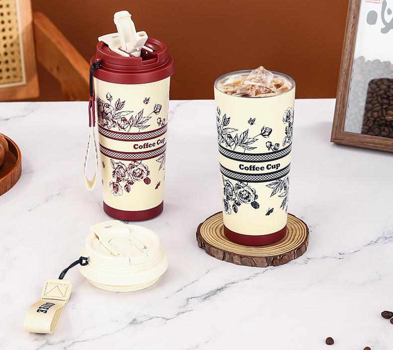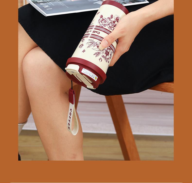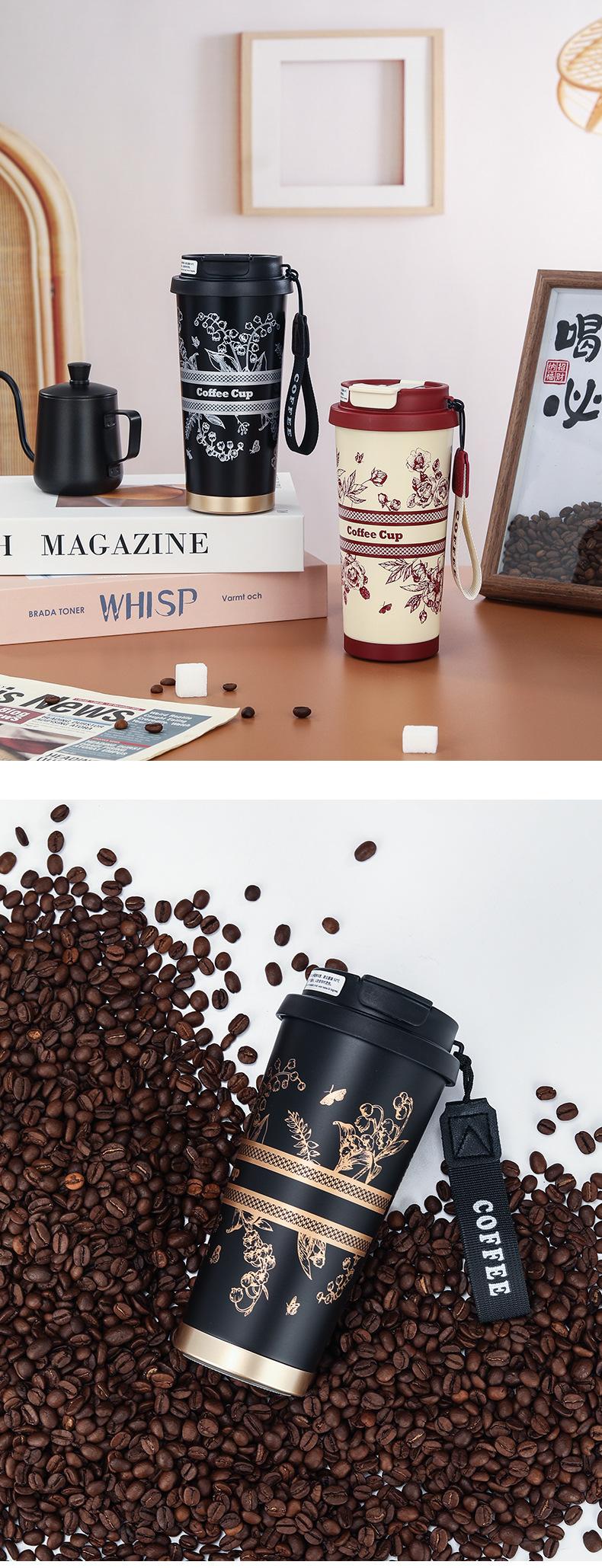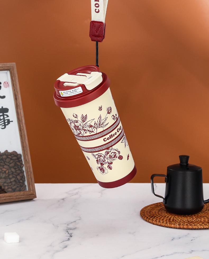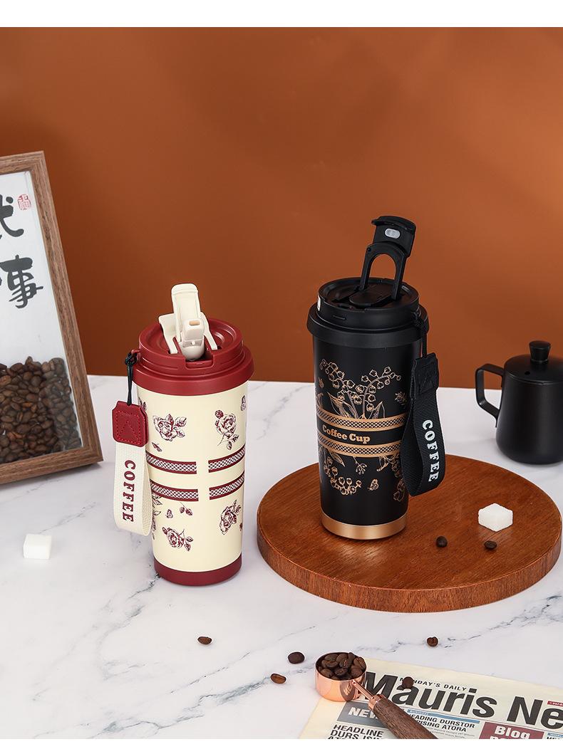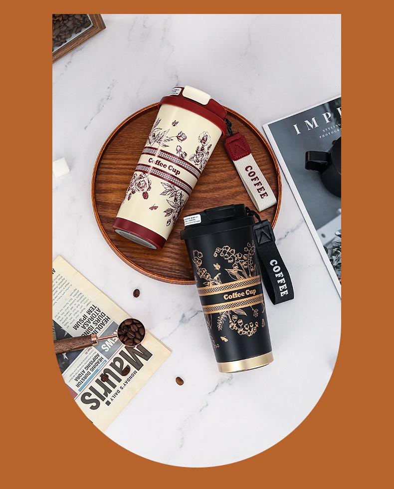 Taza de Café Nueva de Lirio de los Valles con Alta Apariencia y Taza para Beber Doble con Cuerda Acero Inoxidable 316 Vaso Termo Portátil para Coche