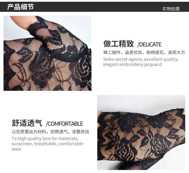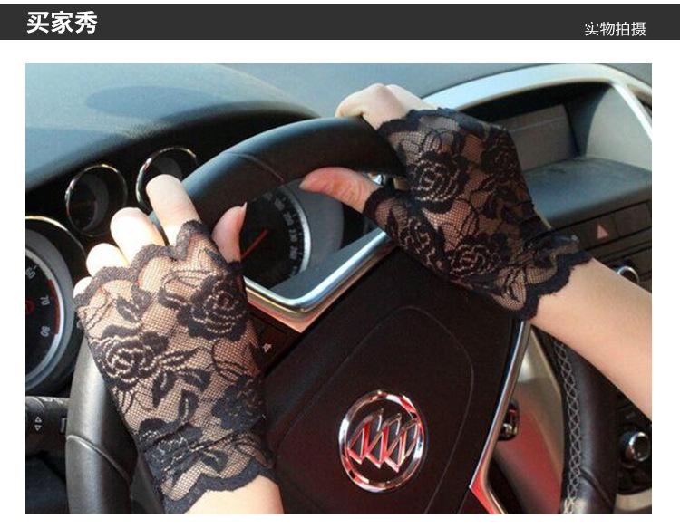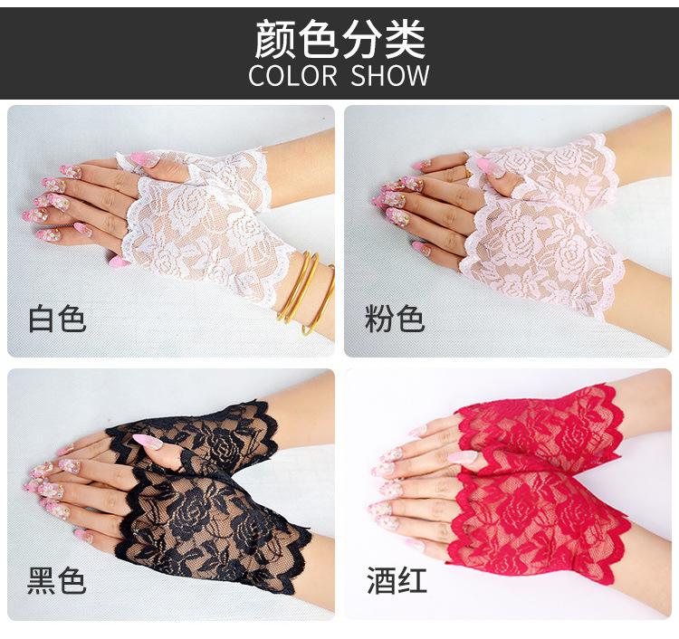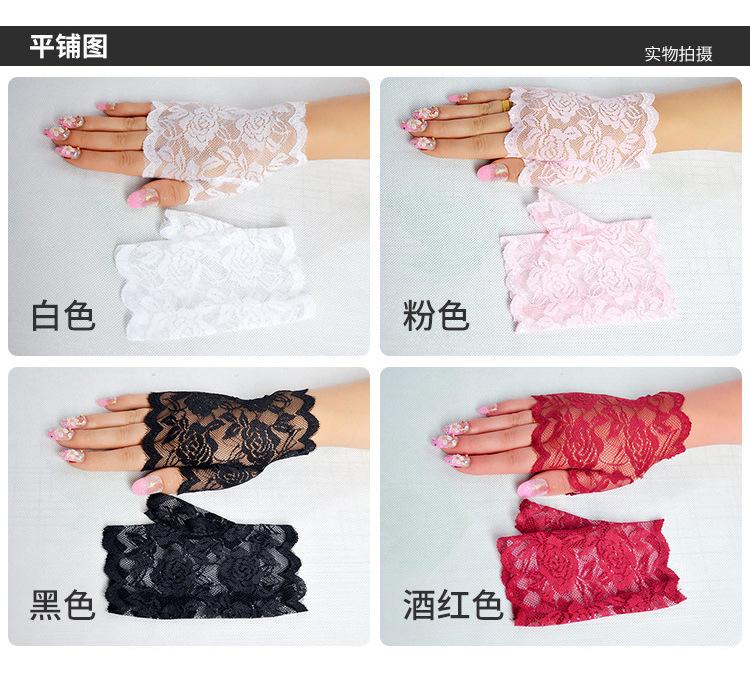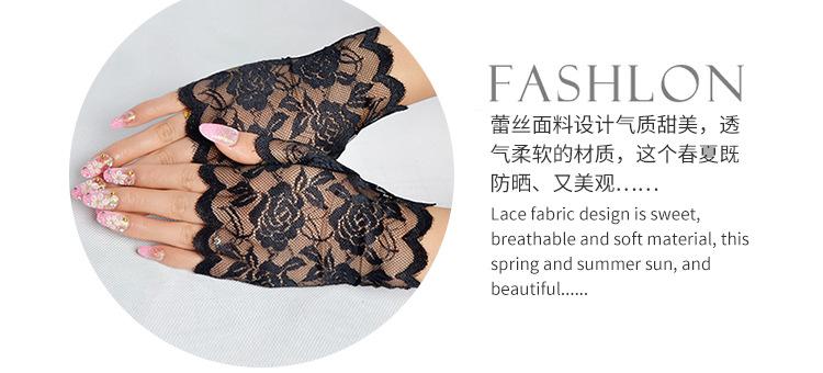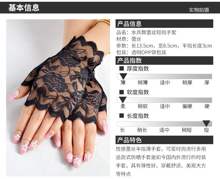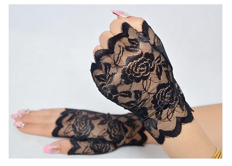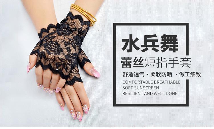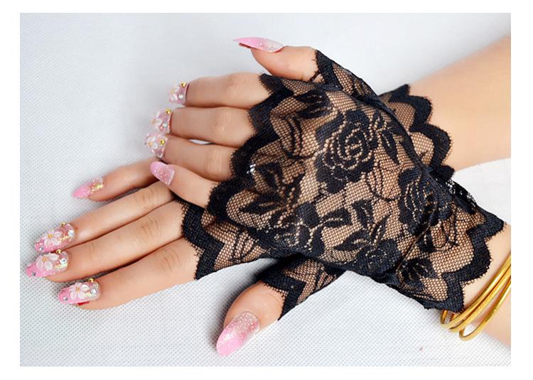 Guantes de encaje negro de baile de marinero para mujer para conducir protección UV medio dedo guantes para cubrir cicatrices estilo corto sin dedos