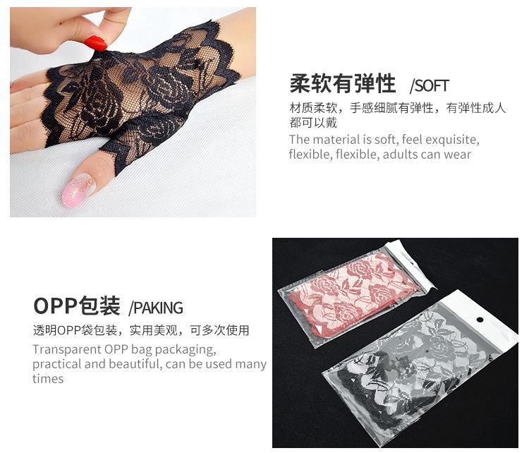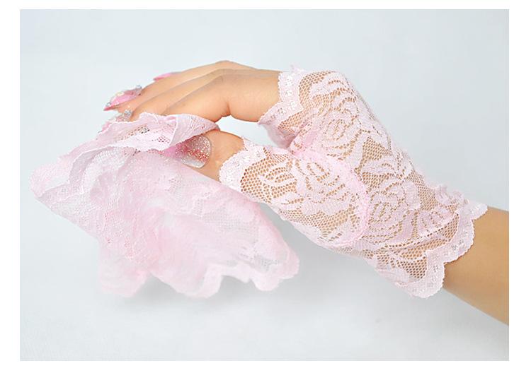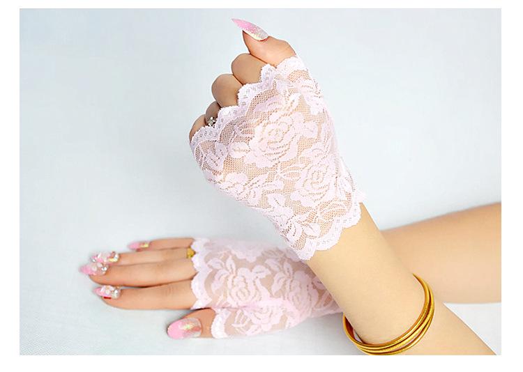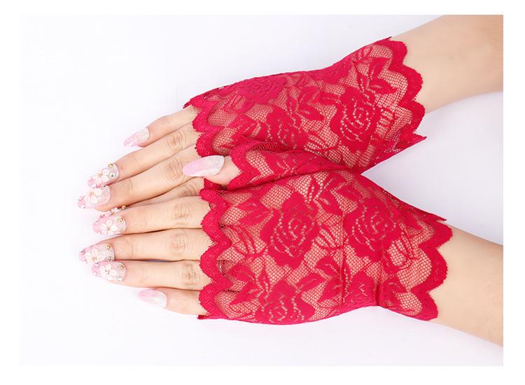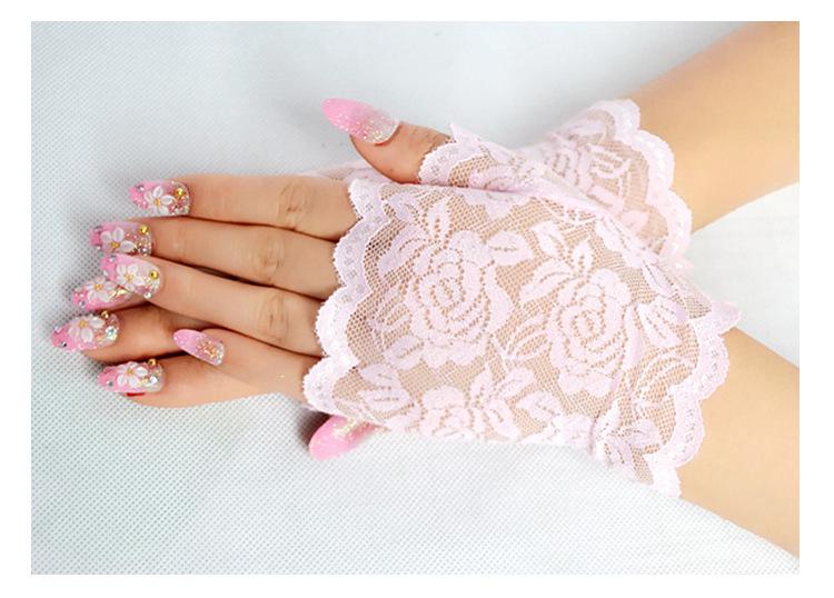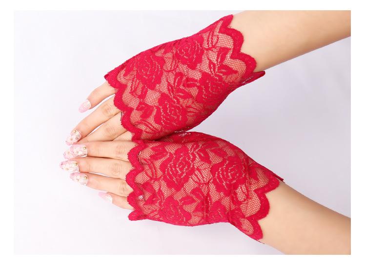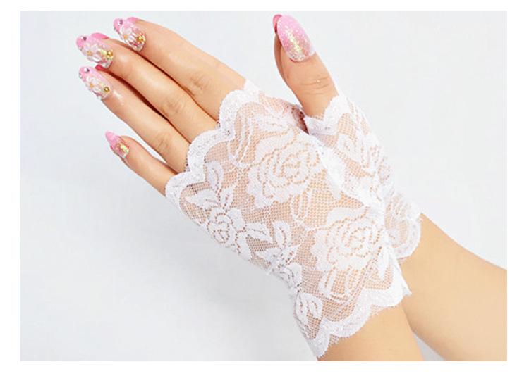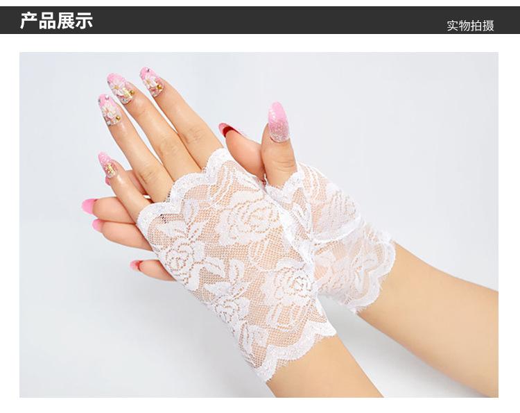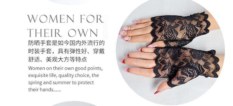 Guantes de encaje negro de baile de marinero para mujer para conducir protección UV medio dedo guantes para cubrir cicatrices estilo corto sin dedos