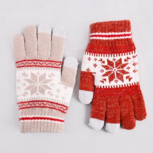Guantes de invierno para estudiantes, cálidos, anticongelantes, a rayas, para dedos, puesto, superventas, microelásticos, para pareja, de lana, táctiles, con copos de nieve