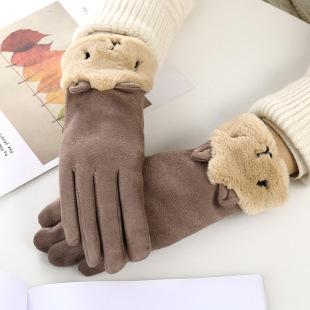 Guantes de piel de venado con pantalla táctil para mujer, guantes de felpa gruesos y cálidos para invierno, guantes de ciclismo para exteriores con dibujos animados lindos para estudiantes