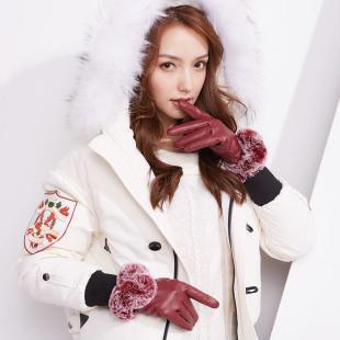 Guantes de cuero para mujer versión coreana invierno ciclismo pantalla táctil PU más terciopelo cálido estudiante lindo simulación bola de pelo de conejo guantes táctiles