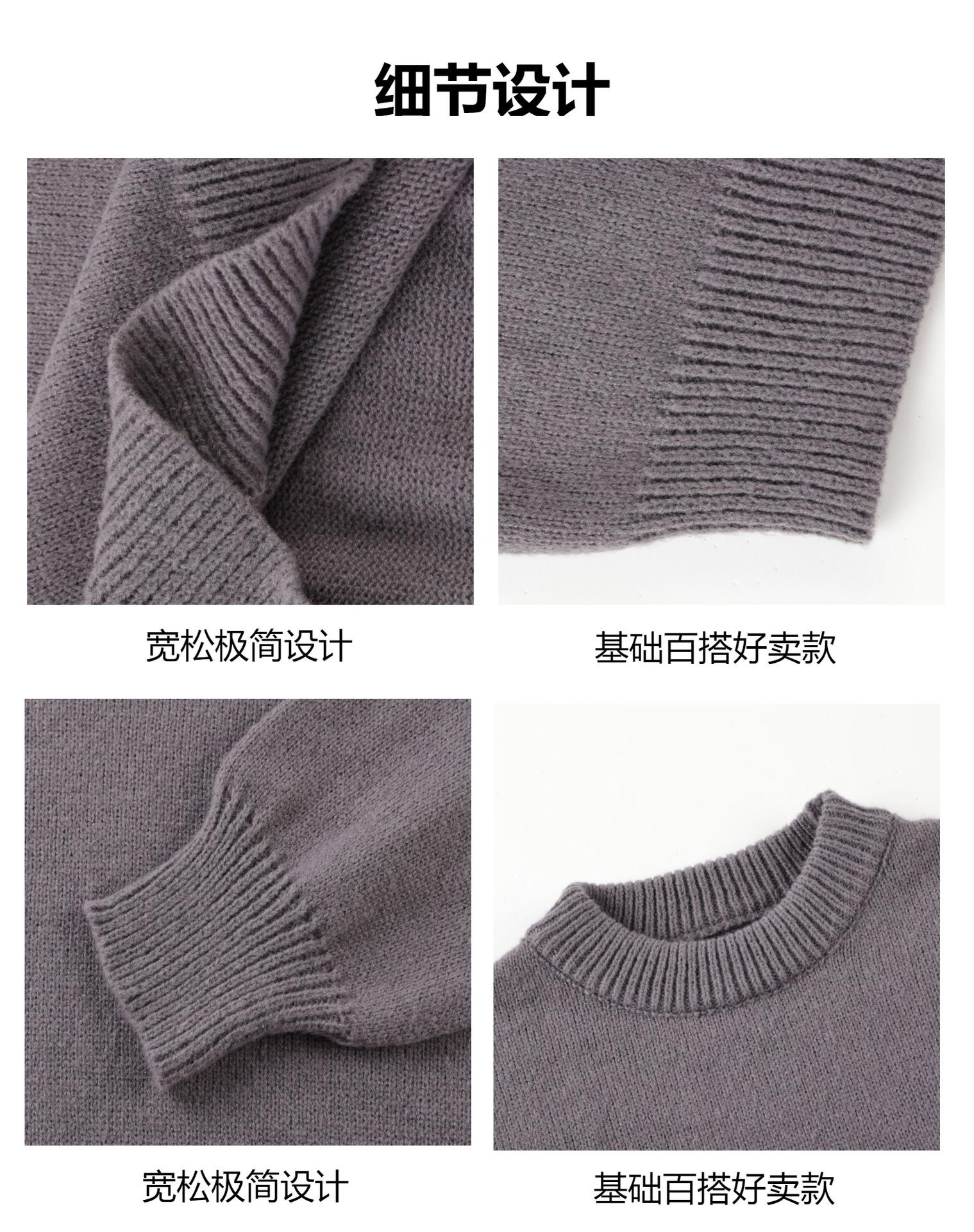 Procesamiento de Cuello Redondo 2022 con Suéter Tejido Holgado de Estilo Perezoso de Manga Larga Linterna para Mujer Otoño e Invierno Bajo Manga Larga