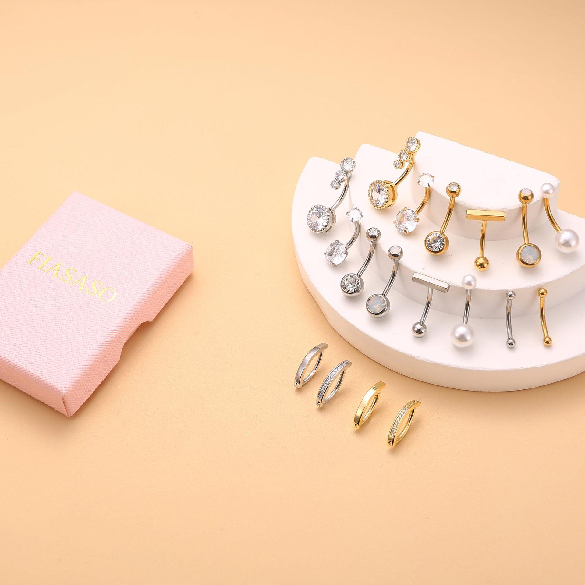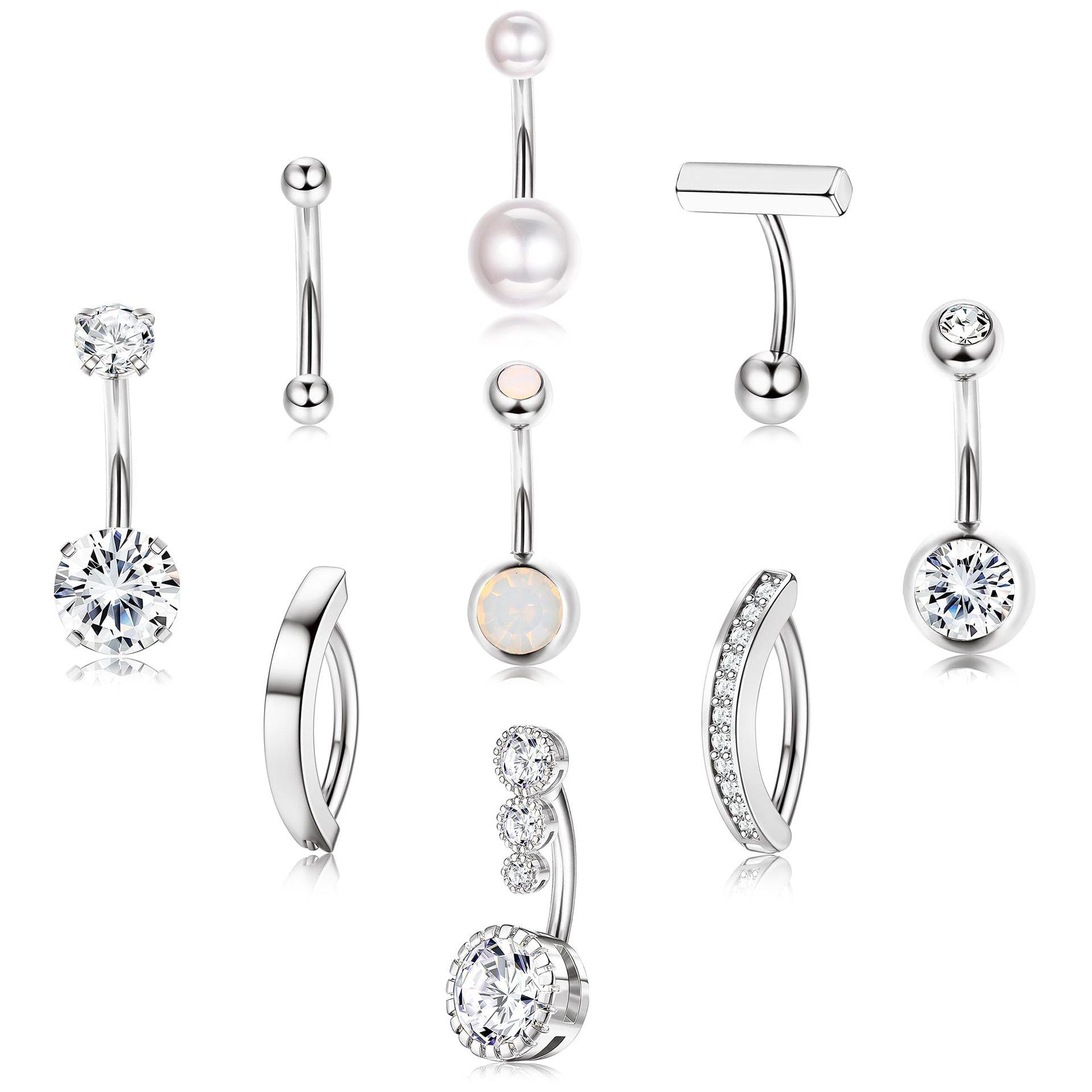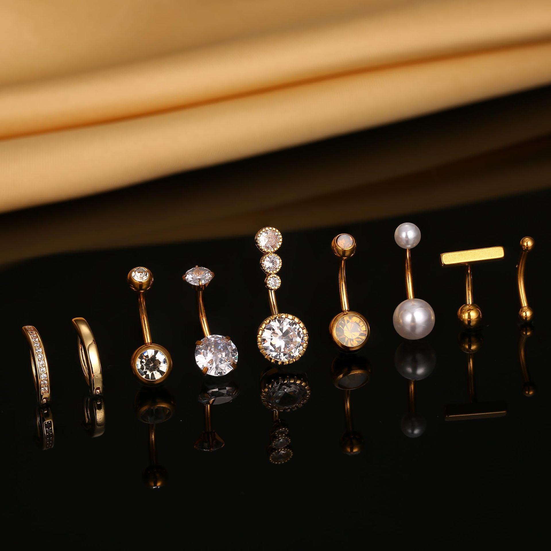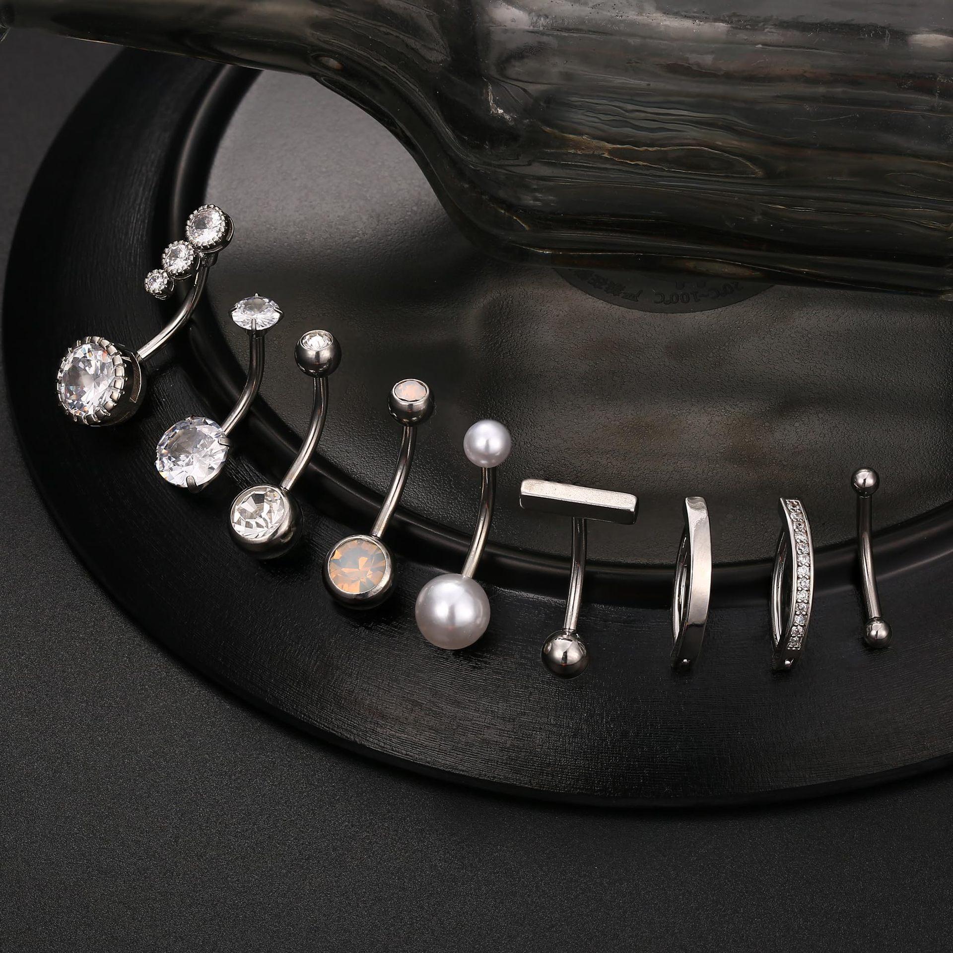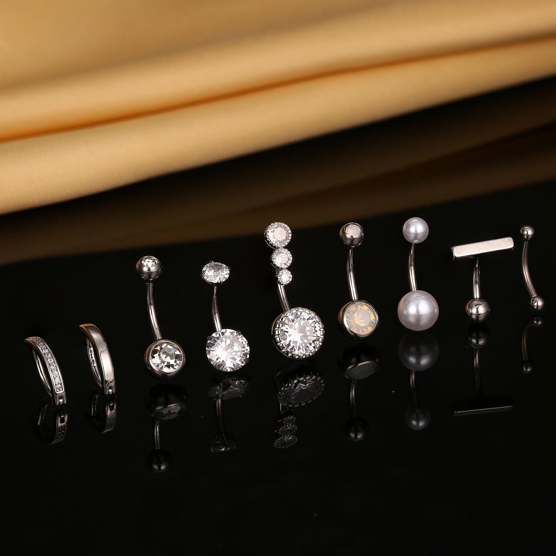 Anillo para ombligo nuevo de acero inoxidable de 9 piezas con micro incrustaciones de circonita simple y exquisita, piercing de joyería para ombligo en forma de T