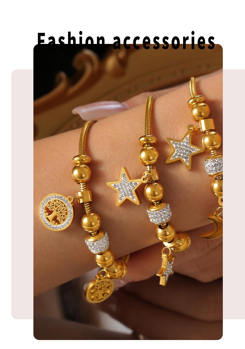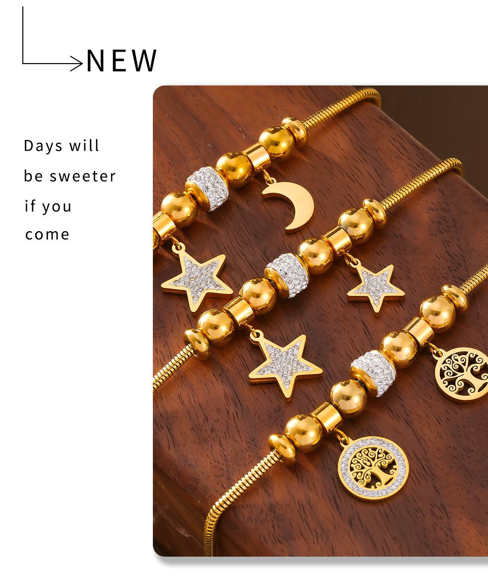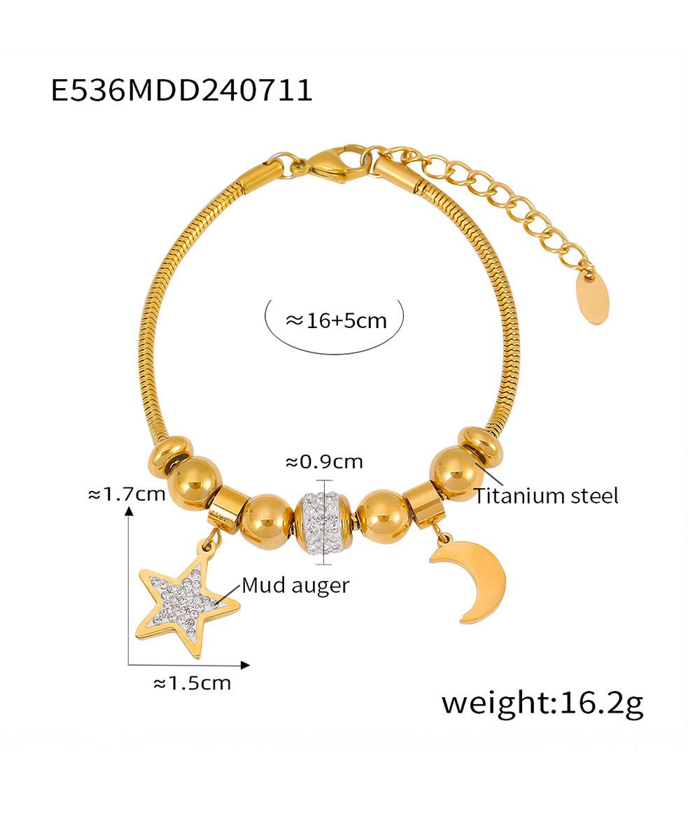 Nuevo colgante geométrico multiforma con incrustaciones de circonita estrella luna pulsera de acero de titanio nicho femenino joyería de mano al por mayor