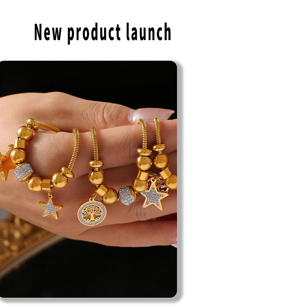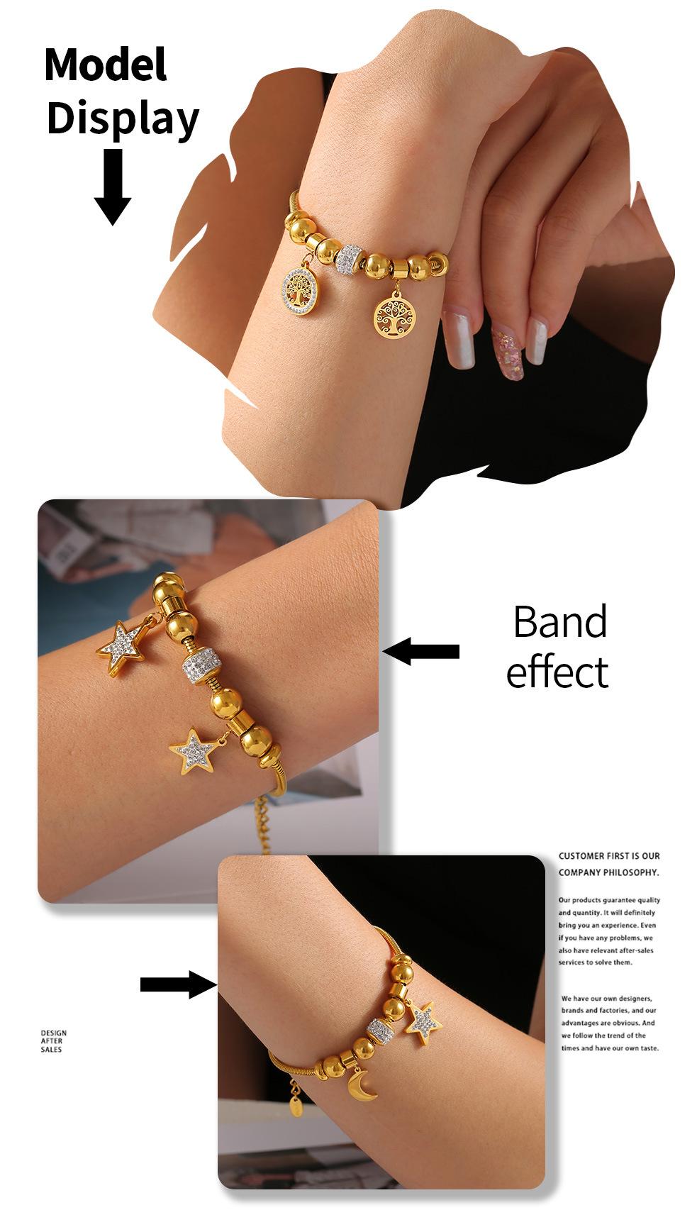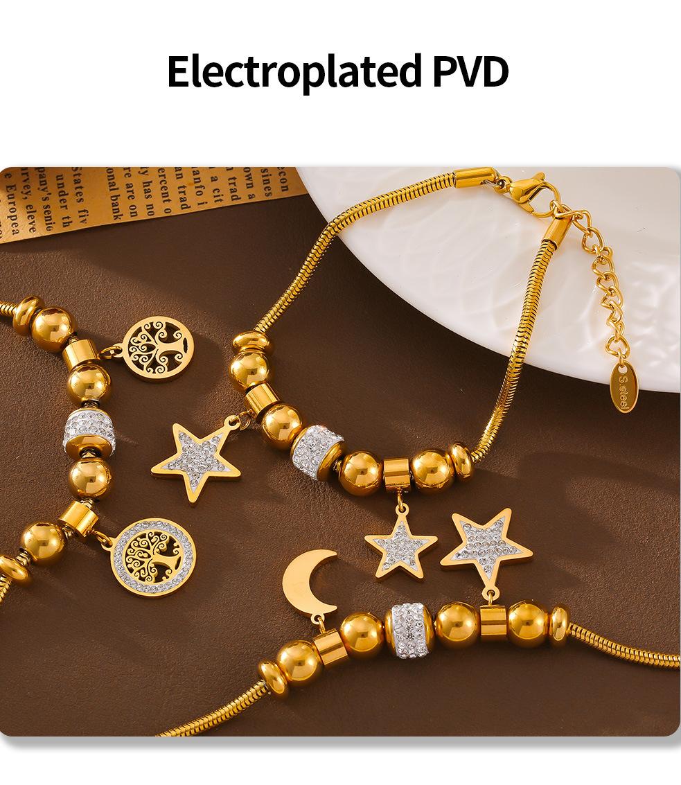 Nuevo colgante geométrico multiforma con incrustaciones de circonita estrella luna pulsera de acero de titanio nicho femenino joyería de mano al por mayor