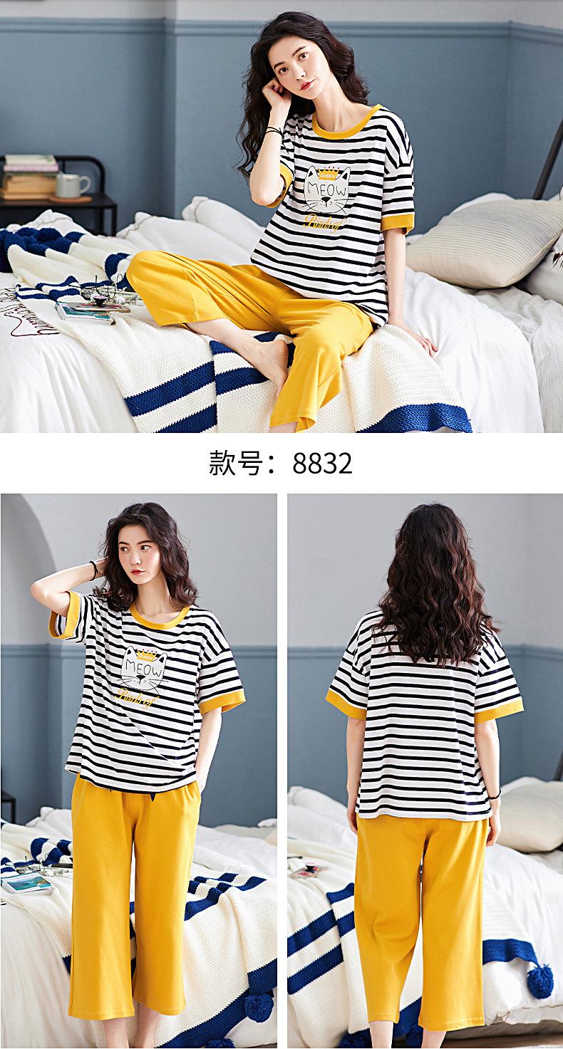 Pijama nuevo de mujer 2024 verano mujer verano algodón manga corta pantalones capri traje de mujer verano ropa de casa
