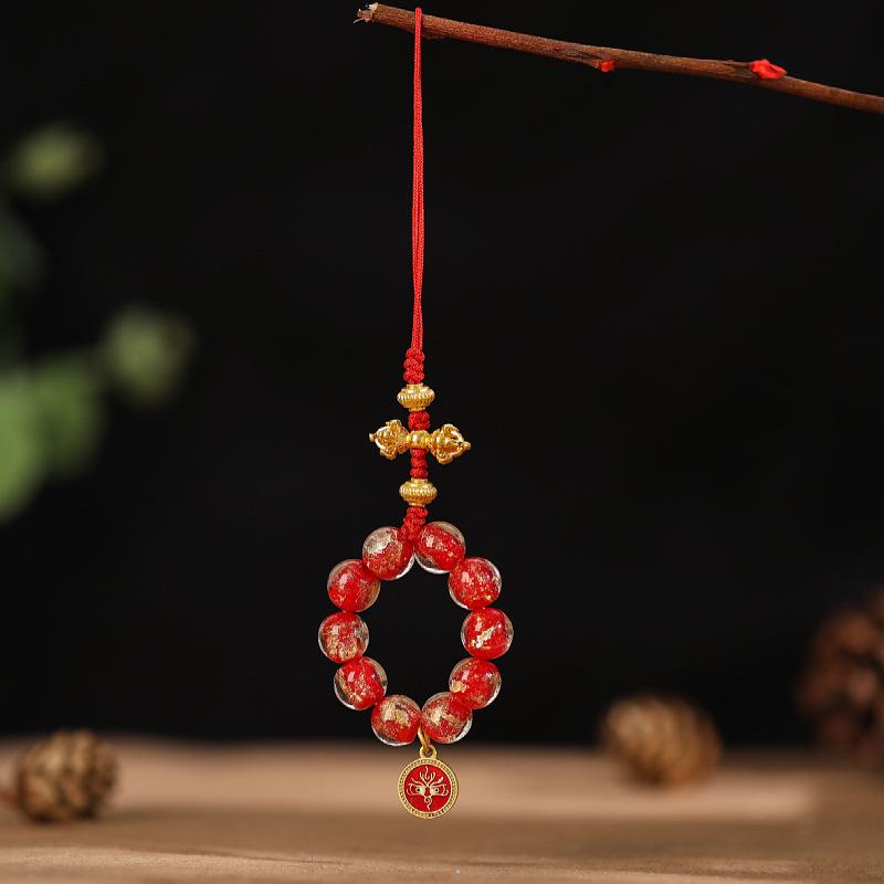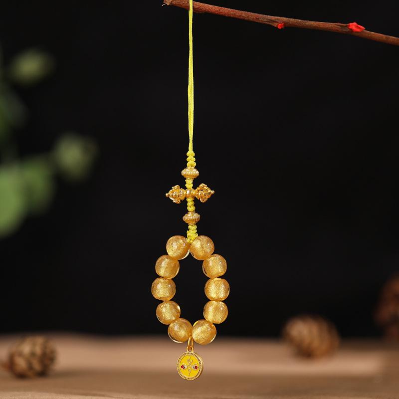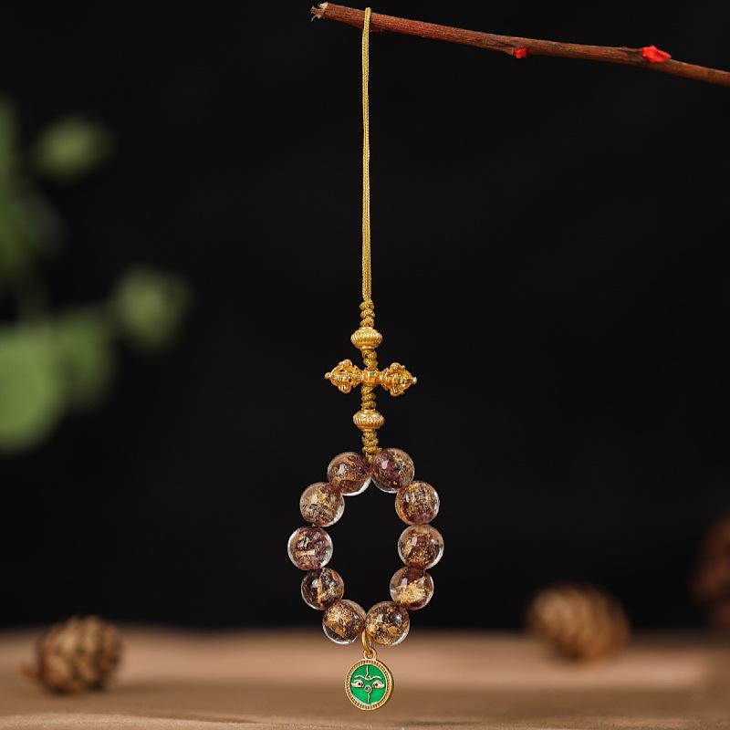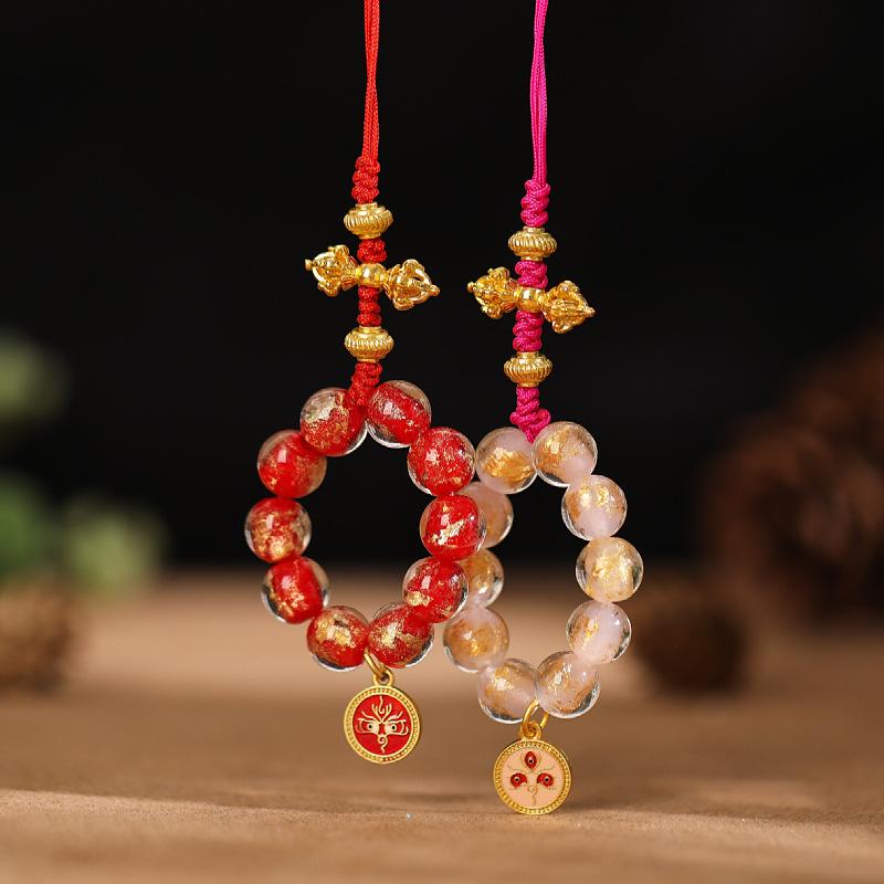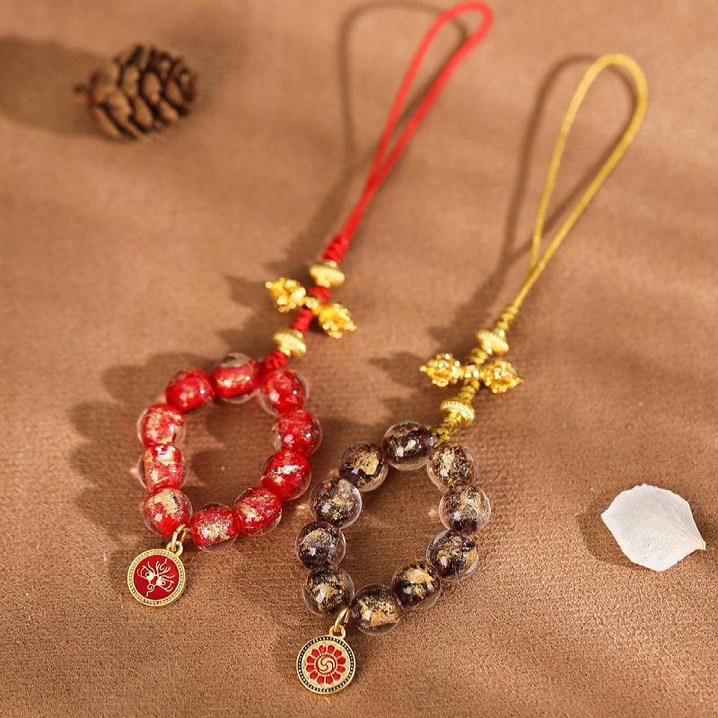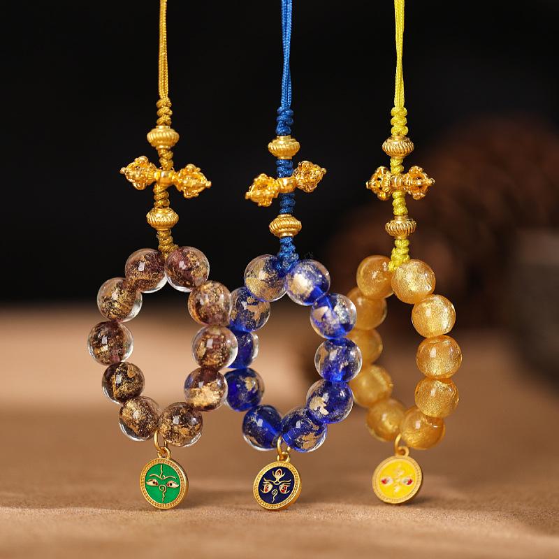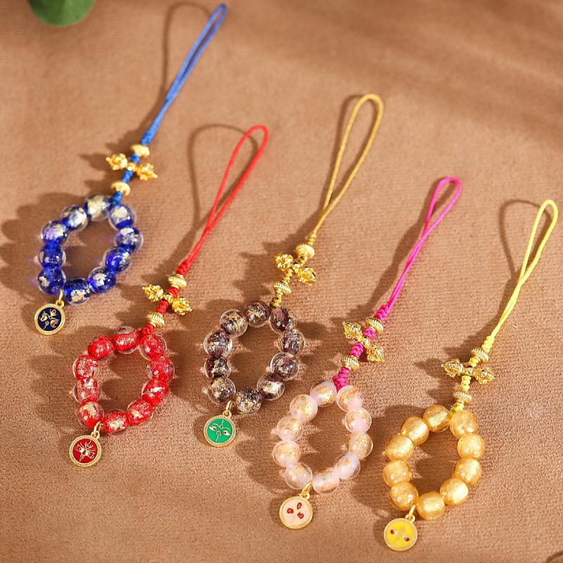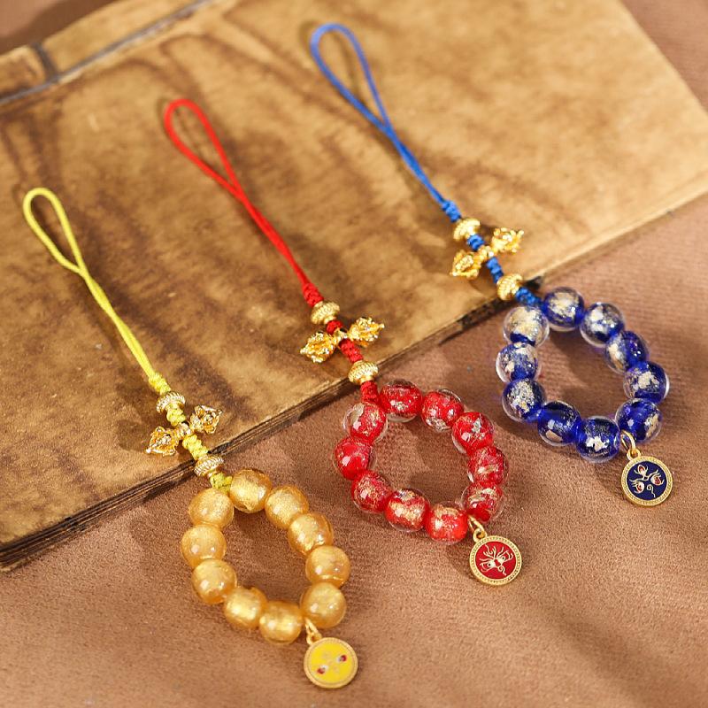 Colgante de cadena para teléfono móvil Dios de la Riqueza de cinco vías, colgante de color retorcido a mano, esmalte coloreado gris fragante multi-tesoro, cuentas de Buda, colgante de vajra de diamante, adornos de la suerte