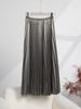 Falda metálica brillante de alta calidad para mujer, de longitud media, nueva falda drapeada adelgazante de línea A para primavera y otoño.