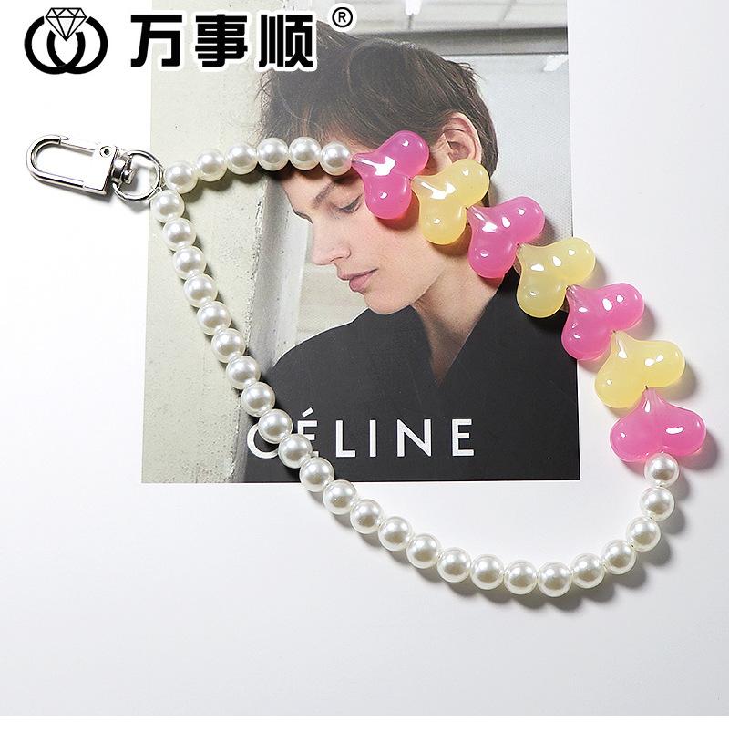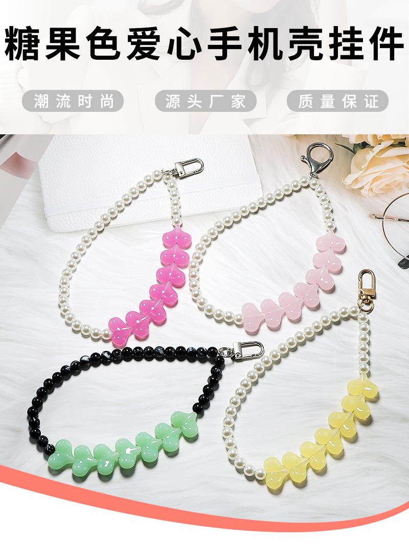 Venta al por mayor de fábrica ins japonés y coreano color caramelo amor agujero recto con cuentas cordón para teléfono móvil cordón Accesorios Venta al por mayor