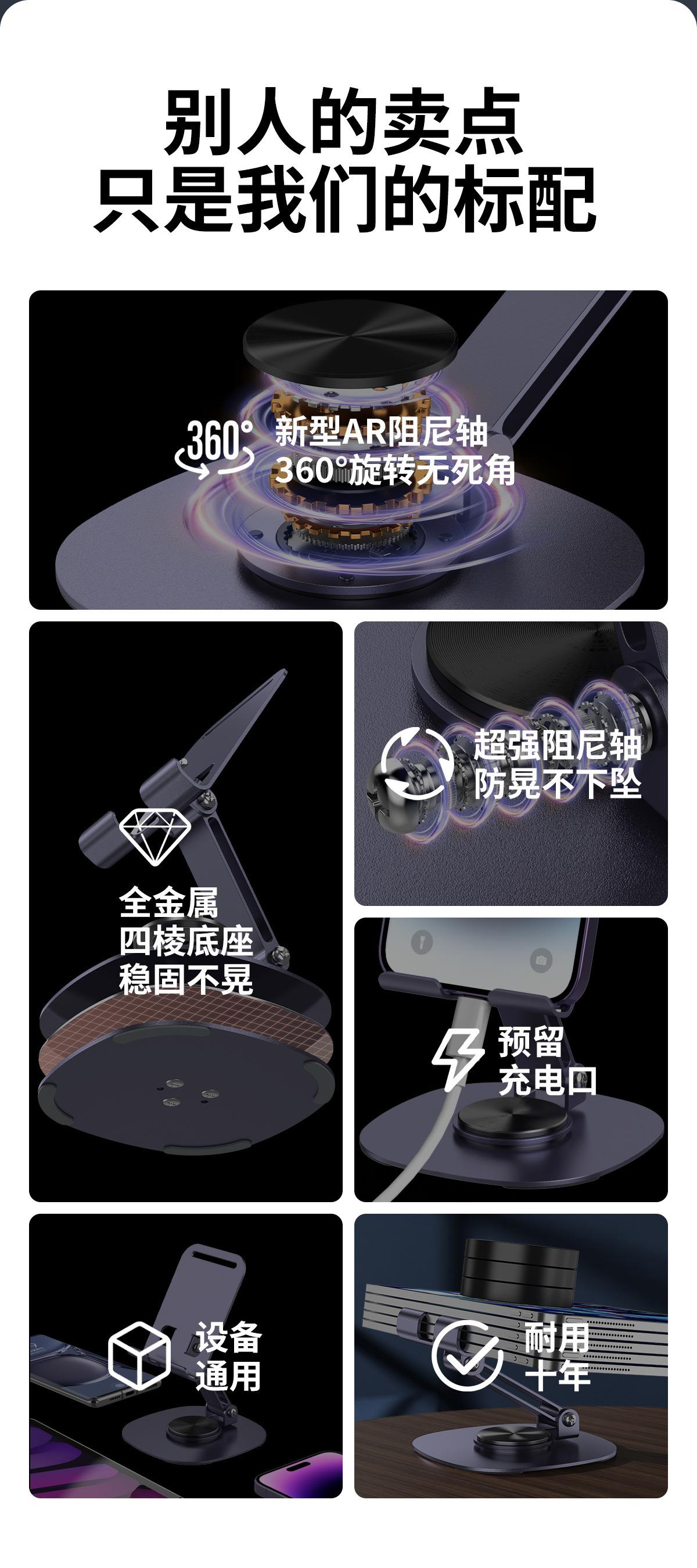 Soporte Multifuncional para Teléfono Móvil para Escritorio Soporte para Teléfono Móvil Giratorio de 360 Grados Estirable Plegable Marco de Soporte para Tablet Personalización