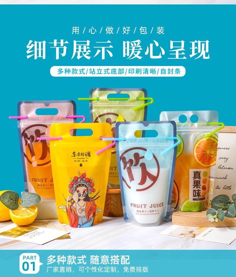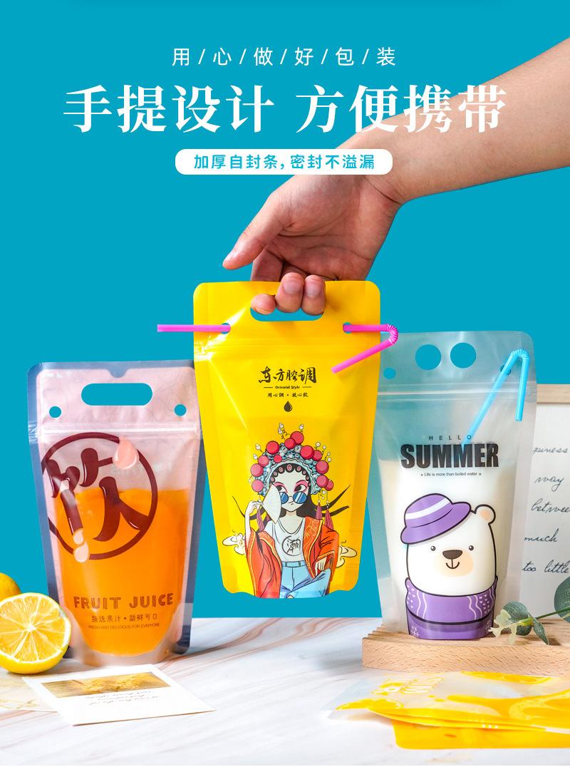 Bolsa de embalaje portátil con autosellado para sopa de ciruelas, directa de fábrica, bolsa de bebida desechable, bolsa de embalaje transparente para jugos