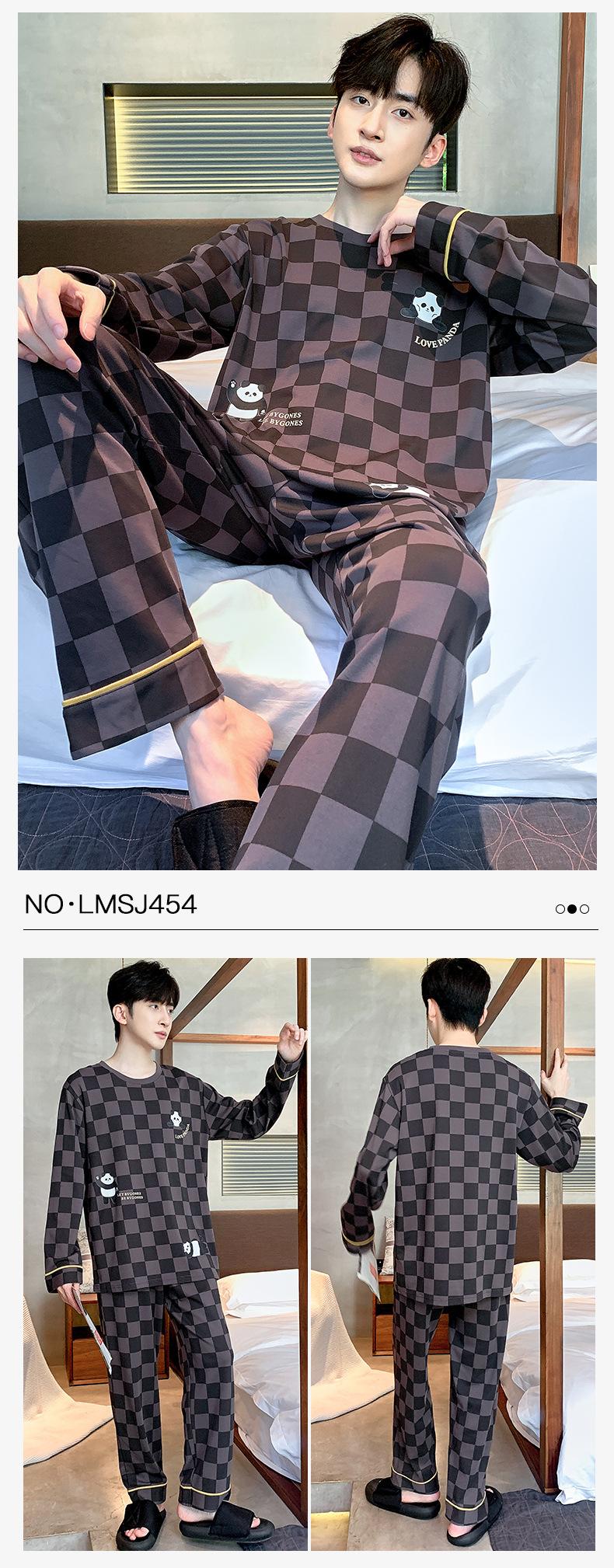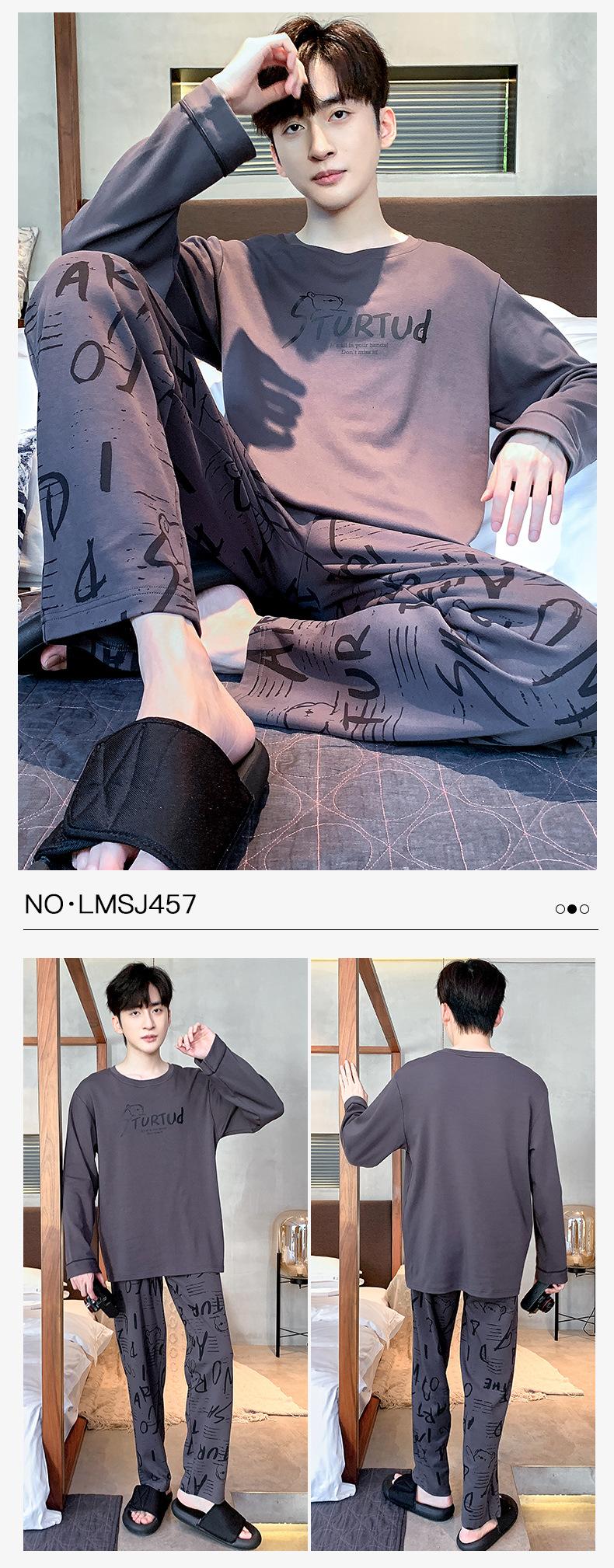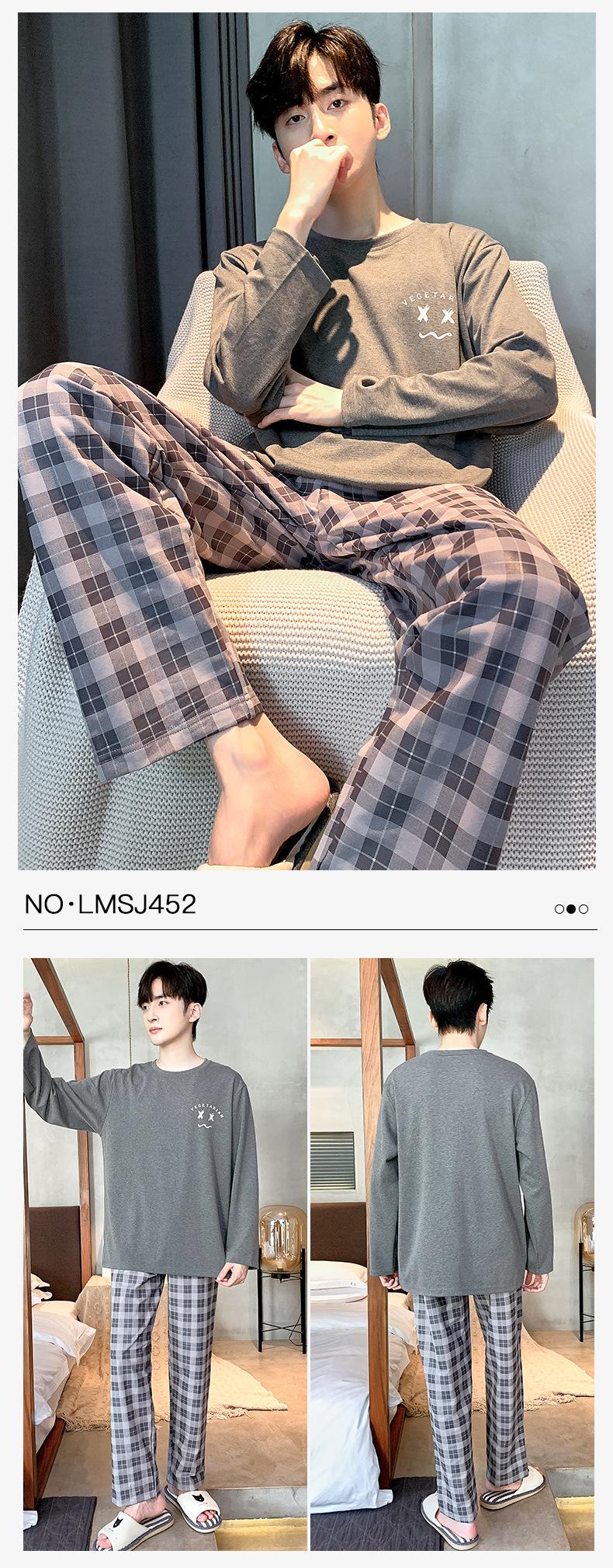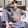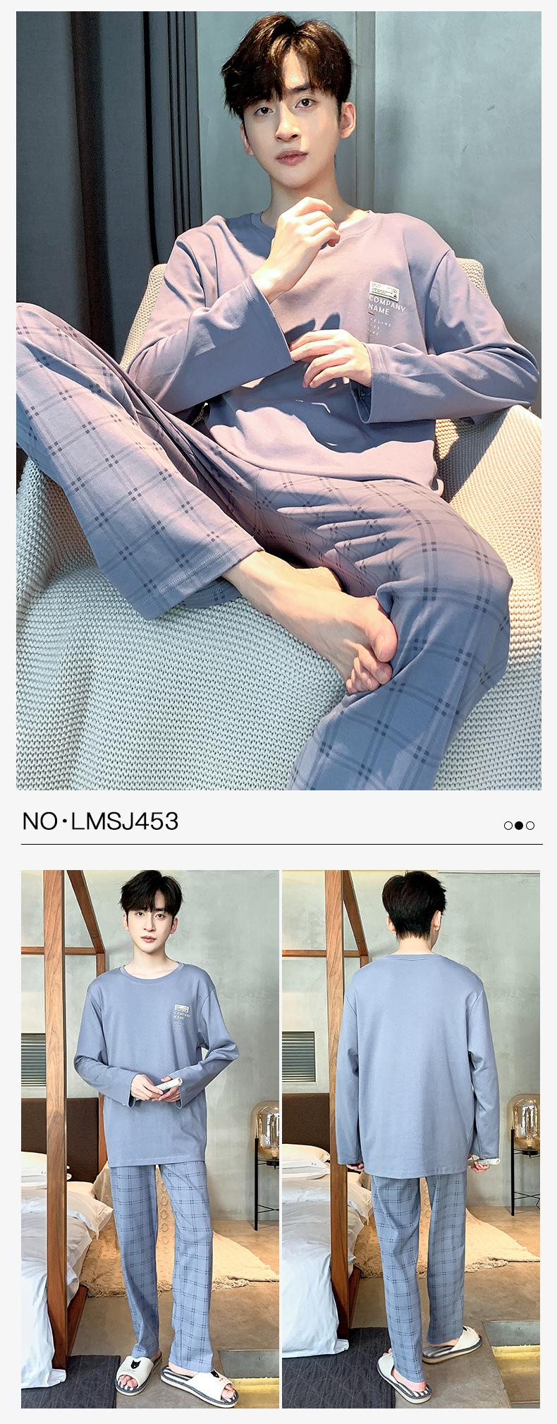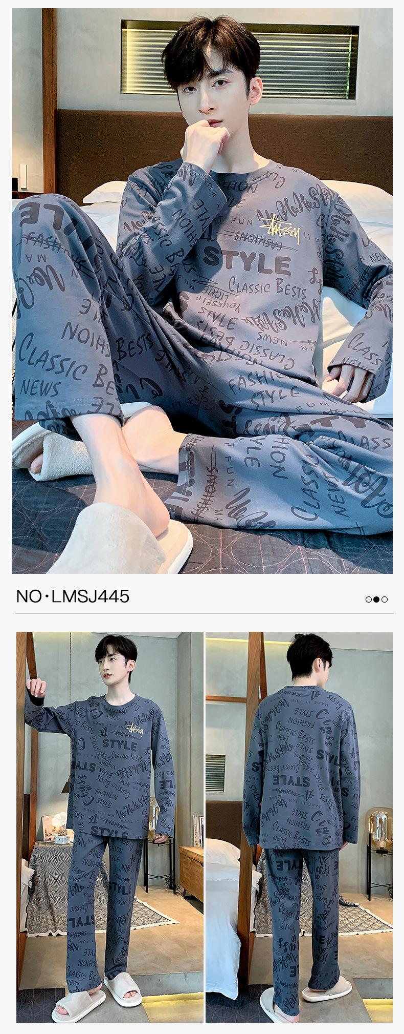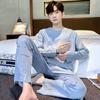 Pijamas nuevos de primavera y otoño para hombre, de algodón, de manga larga, holgados, de talla grande, ropa informal para el hogar, traje para hombre que se puede usar al aire libre.