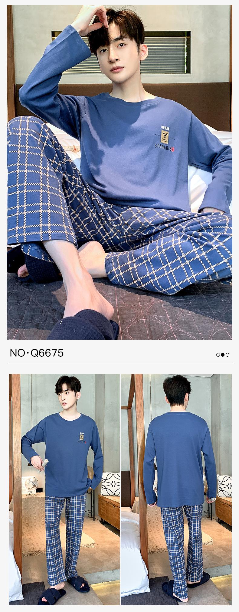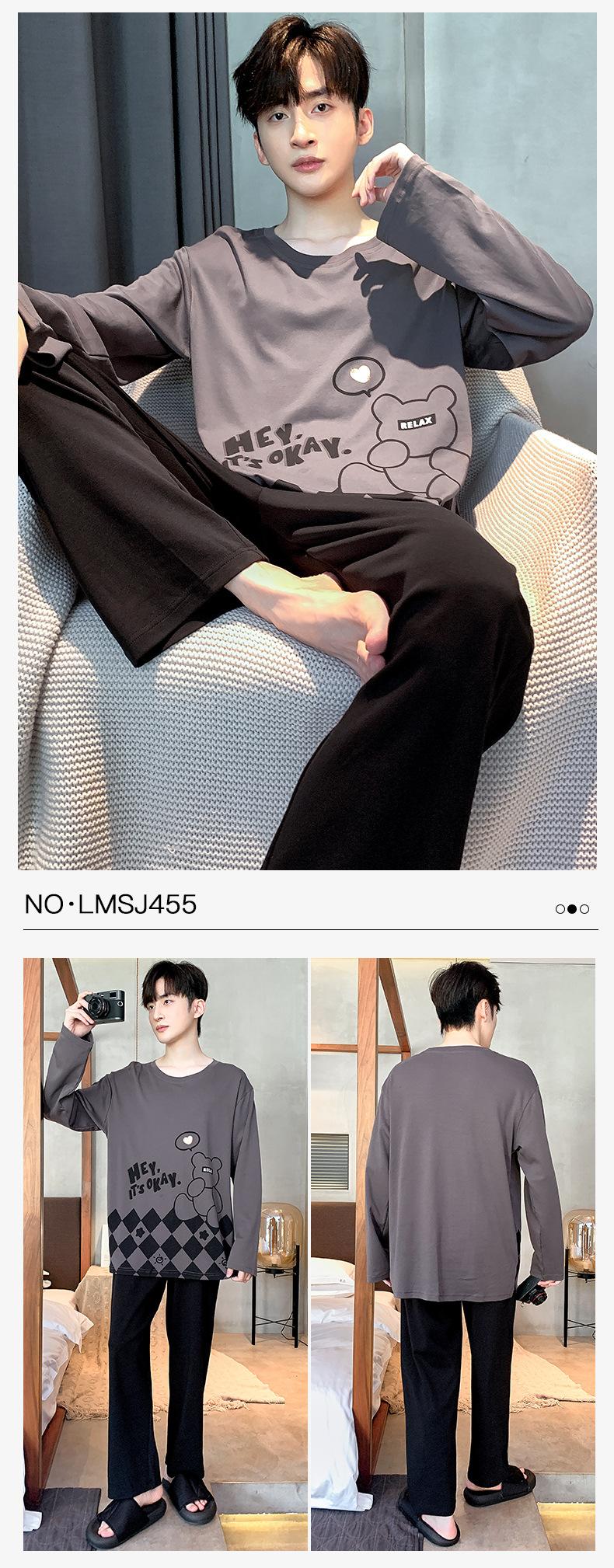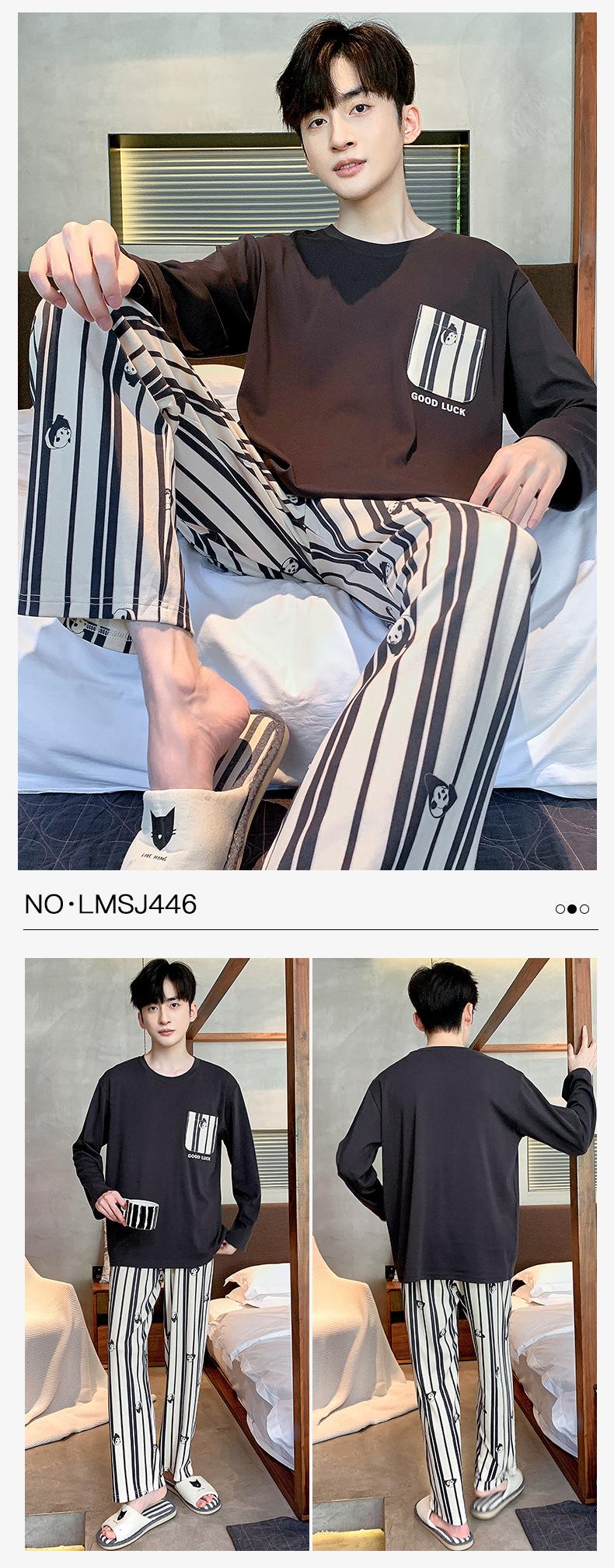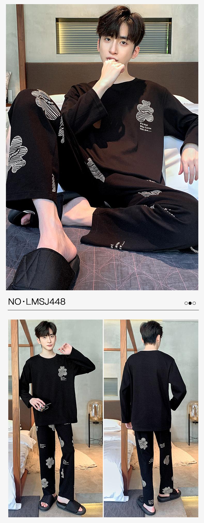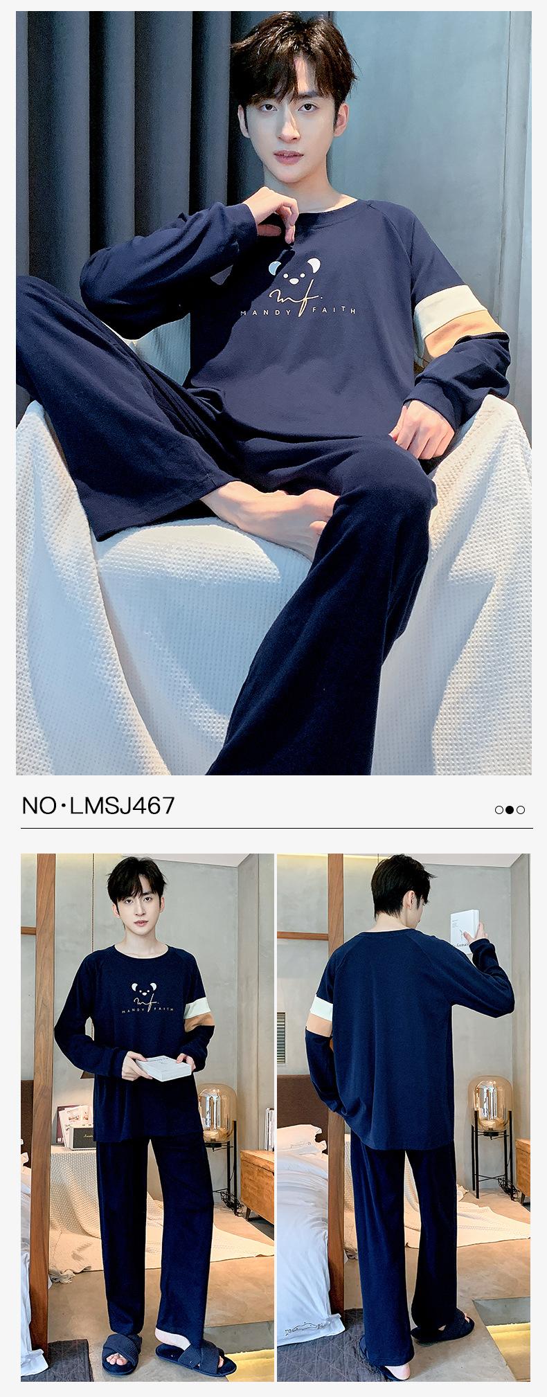 Pijamas nuevos de primavera y otoño para hombre, de algodón, de manga larga, holgados, de talla grande, ropa informal para el hogar, traje para hombre que se puede usar al aire libre.