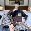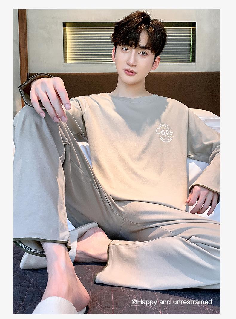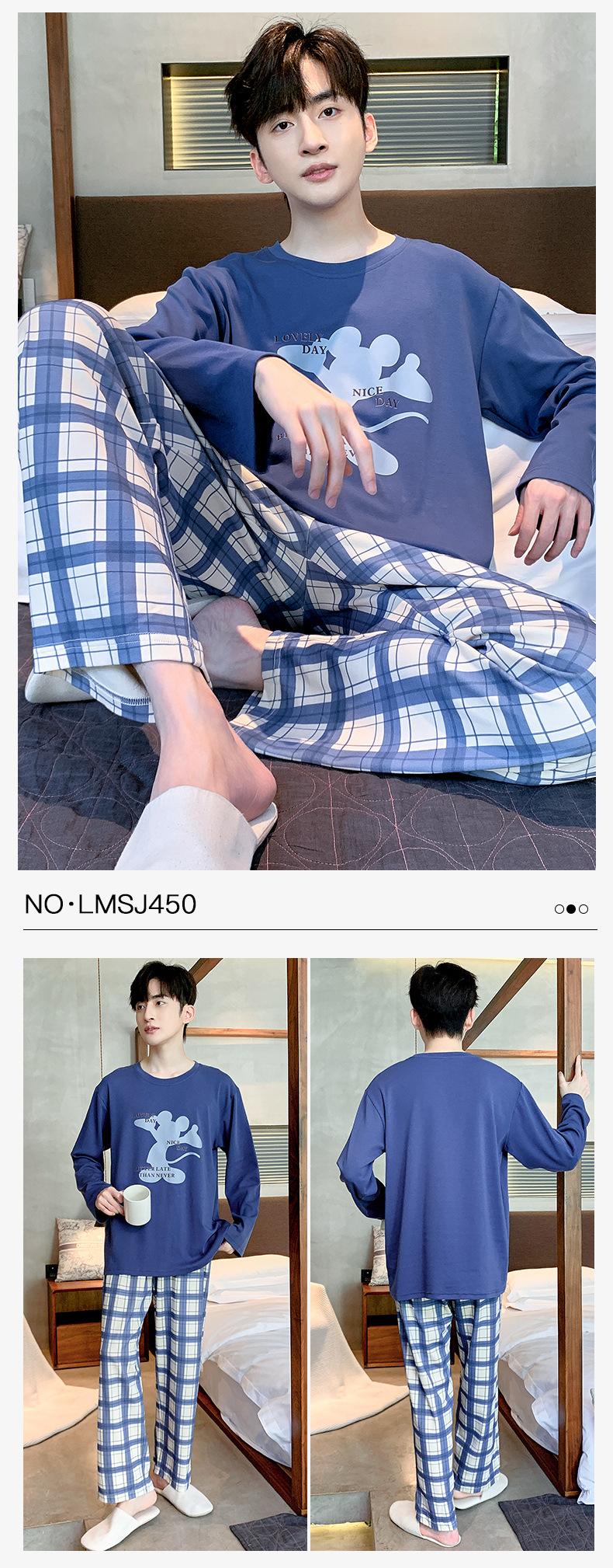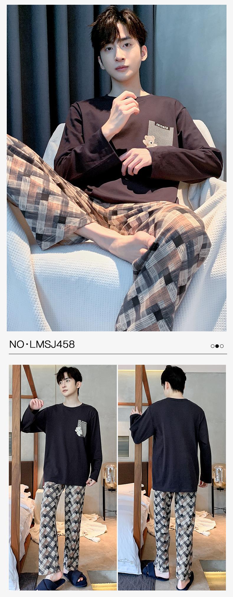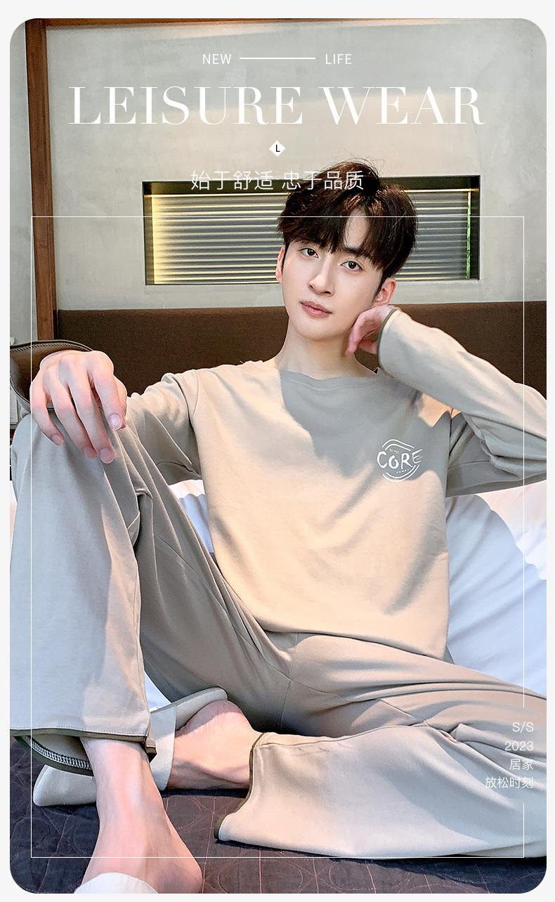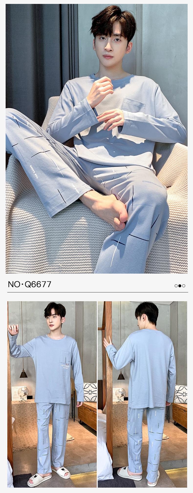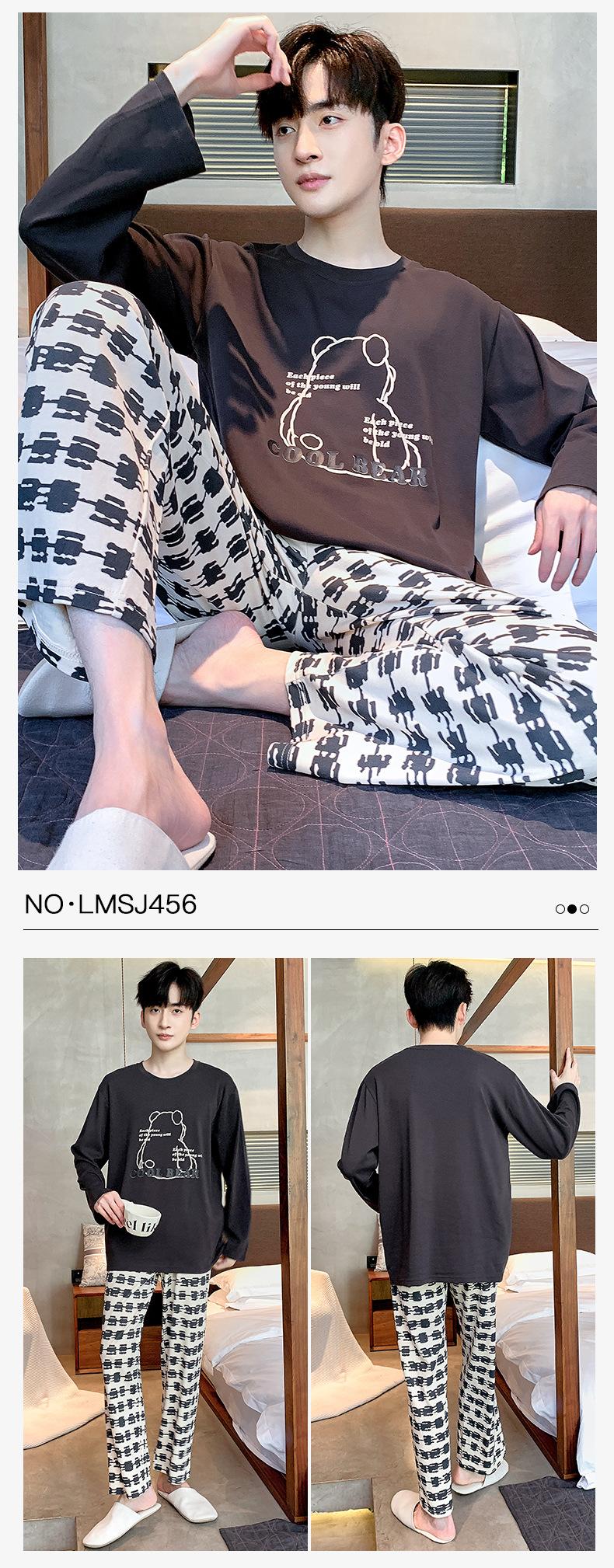 Pijamas nuevos de primavera y otoño para hombre, de algodón, de manga larga, holgados, de talla grande, ropa informal para el hogar, traje para hombre que se puede usar al aire libre.