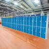 1.a. Un armario pequeño consta de 6 puertas que forman una unidad. Para enviar el nombre y la información del departamento, se utiliza una placa base como punto de partida. Cada armario se conecta temporalmente para enviar la información. Cada armario tiene una interfaz de datos. Se requieren cables de datos (XH4A), cables de alimentación (rojo y negro) y la fuente de alimentación de la cerradura. La pantalla azul debe estar cerrada. El cableado no debe estar cerca del cuerpo del armario. Las partes horizontales y verticales deben estar ocultas, y se deben tomar medidas de fijación seguras en el recorrido del cableado. Esto se debe a que se coloca ropa en el interior, lo que impide fijar y ocultar la pantalla azul de forma segura. Existe el riesgo de que el cuerpo de la cerradura y la conexión queden colgados.