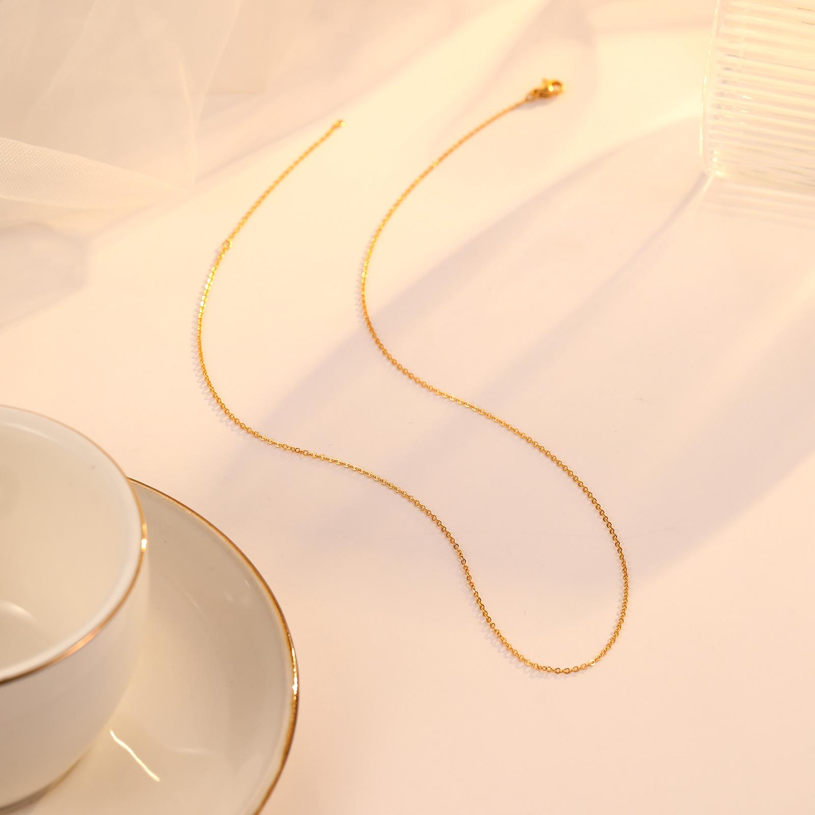 La cadena redonda de hueso mide 16+5cm de largo y 1.4mm de ancho. La cadena de cruz aplanada mide 16+5mm de largo y 1.1mm de ancho. La cadena de bolas mide 16+5cm de largo y 1.9mm de ancho. El cierre de langosta mide 9.mm (7 circones) con un diámetro exterior de 4.9mm.