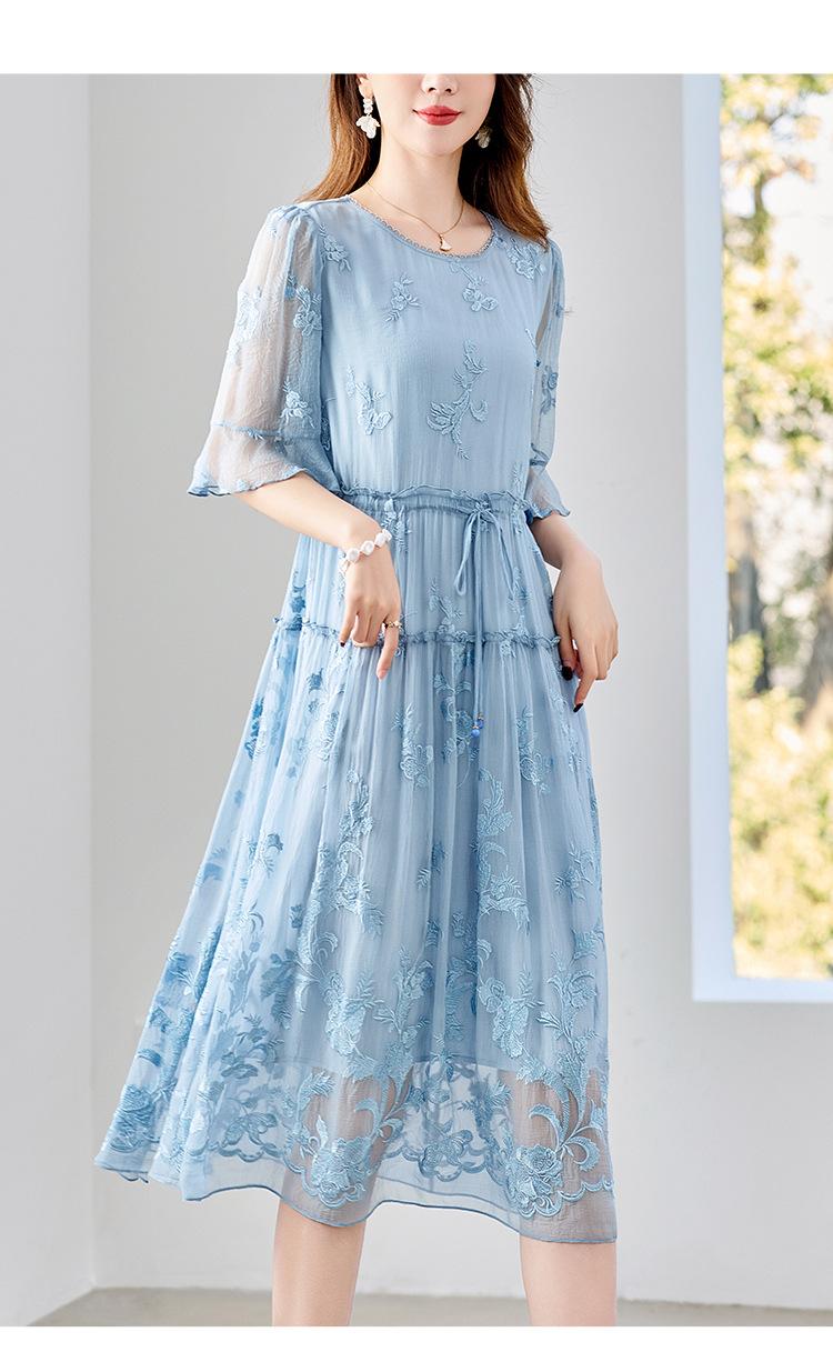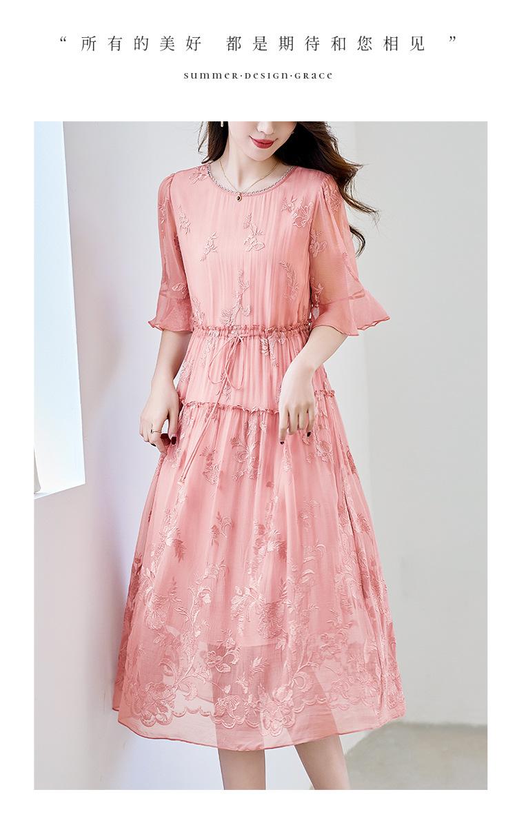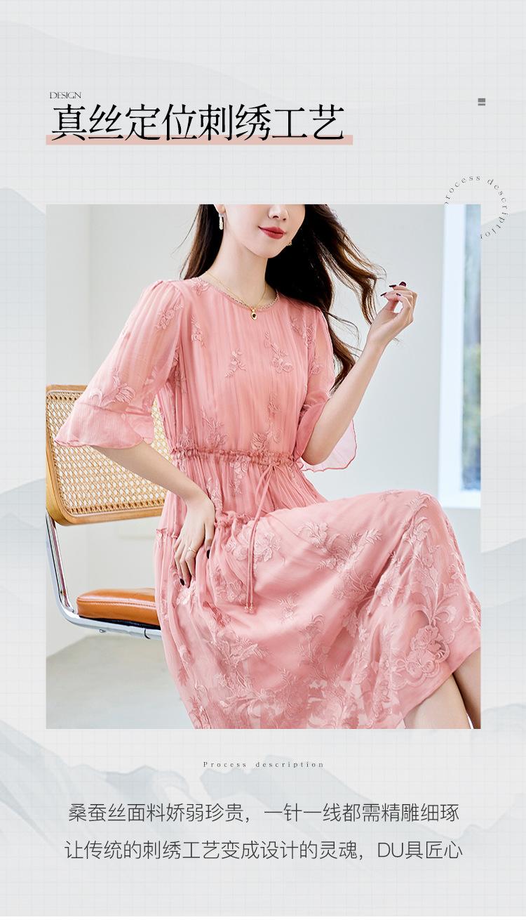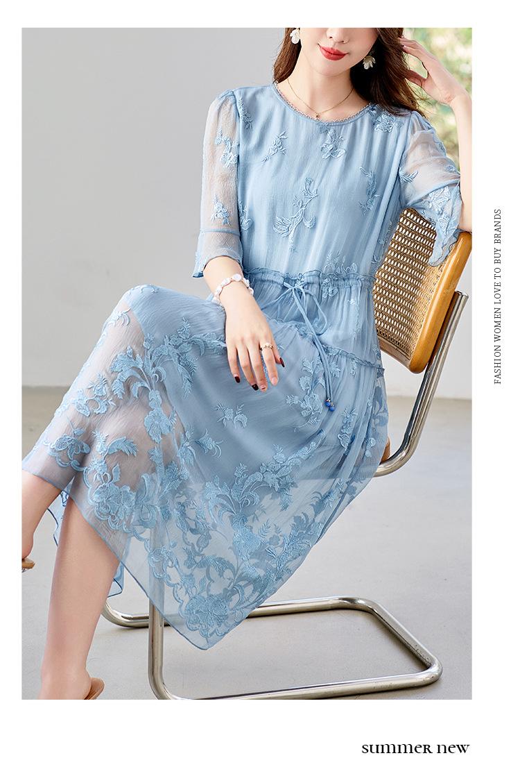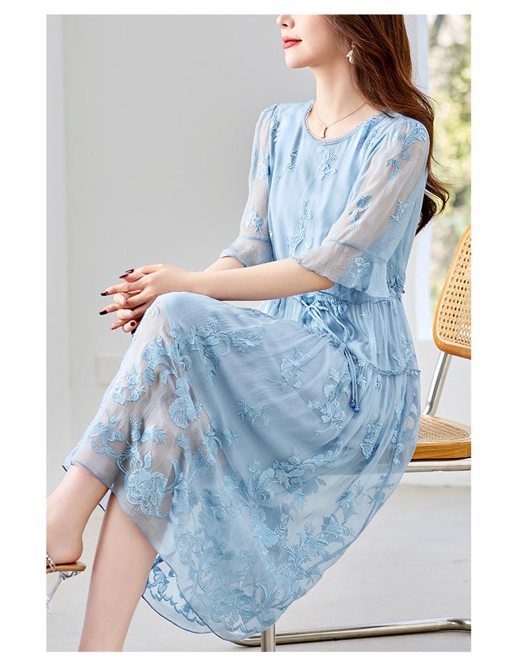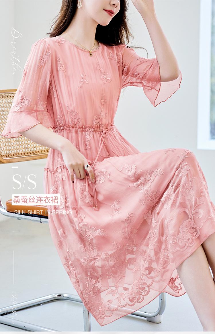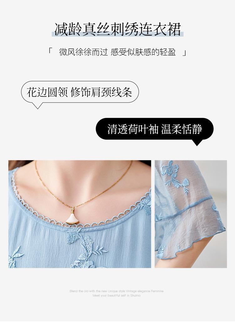 Ropa Original para Mujer de las Cuatro Estaciones Vestido de Seda 000% Falda Midi de Seda de Morera Bordada para Mujer 824970