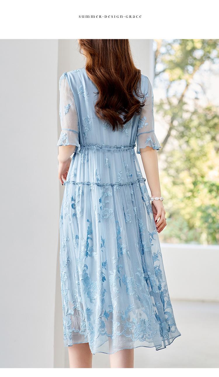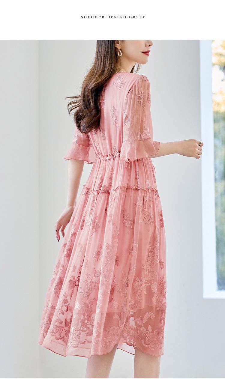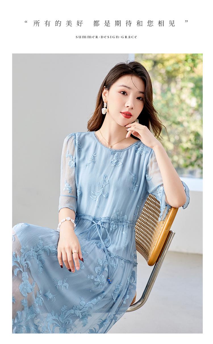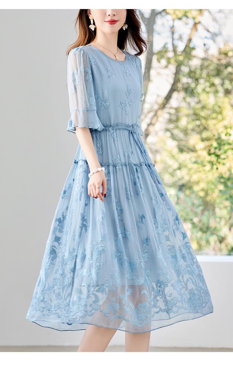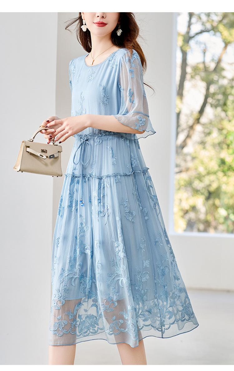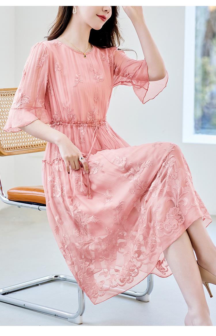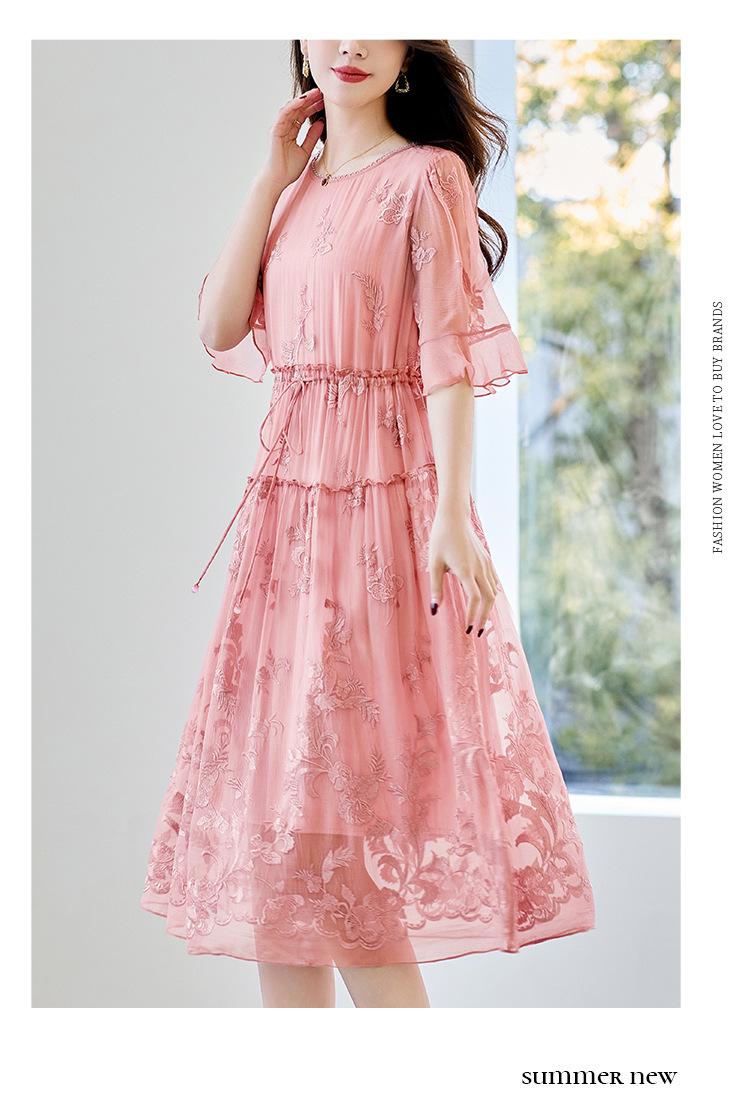 Ropa Original para Mujer de las Cuatro Estaciones Vestido de Seda 000% Falda Midi de Seda de Morera Bordada para Mujer 824970