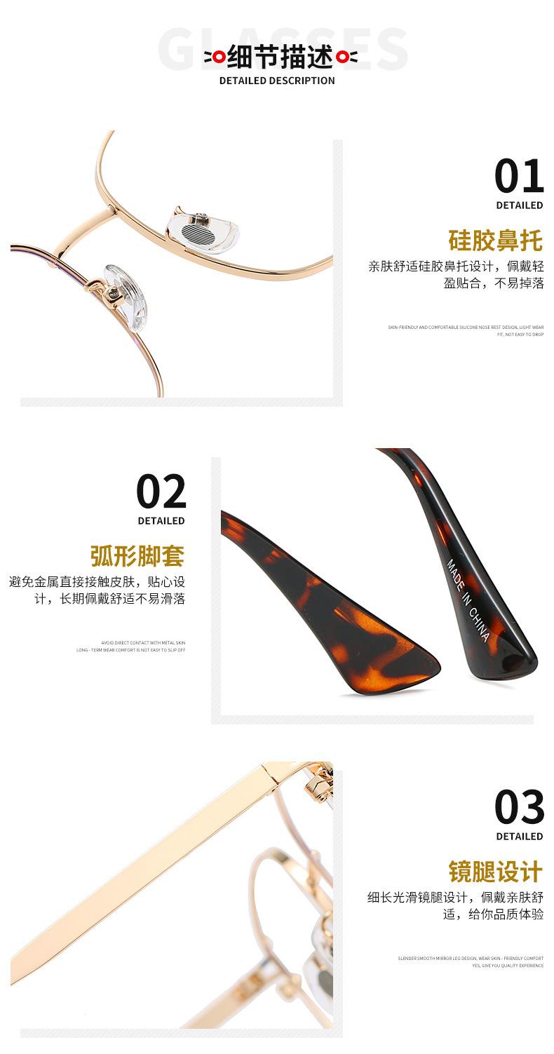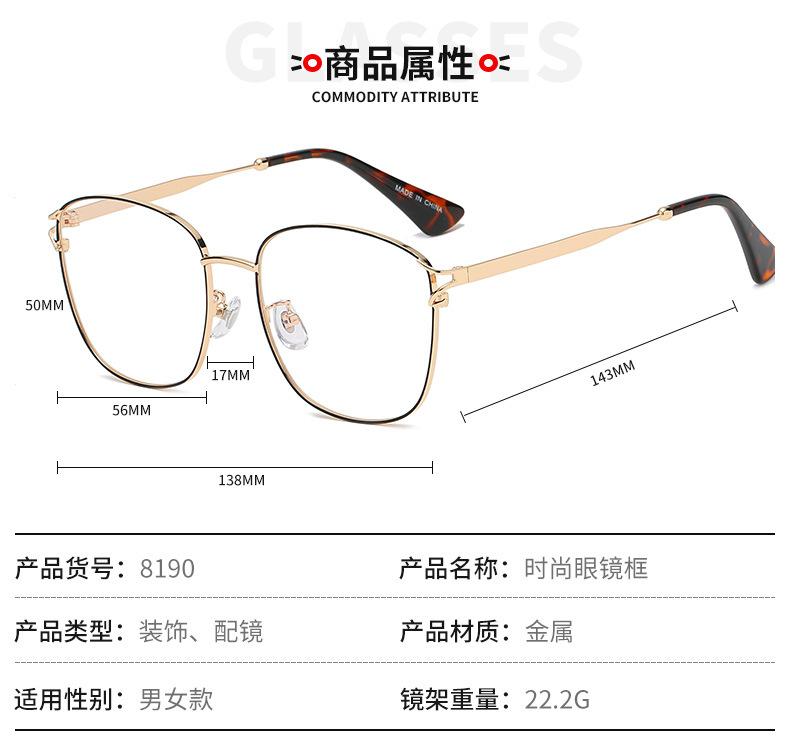 Nuevas y exquisitas gafas de moda con marco de contraste de metal, moda coreana, espejo plano para hombres y mujeres, venta al por mayor