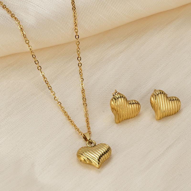 Collar de amor transfronterizo de Amazon para mujer, cadena de clavícula de acero inoxidable chapada en oro de 18 quilates, aretes versátiles en forma de corazón.