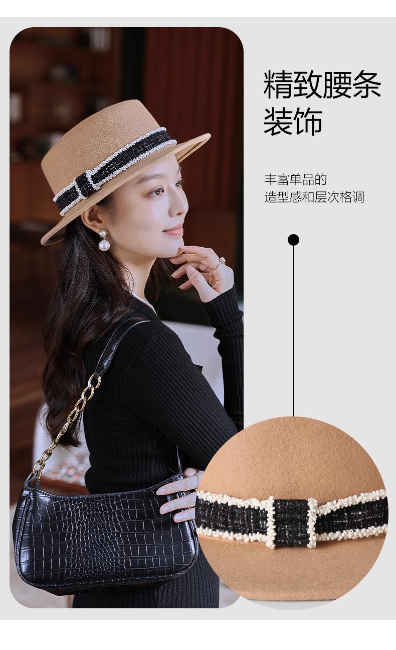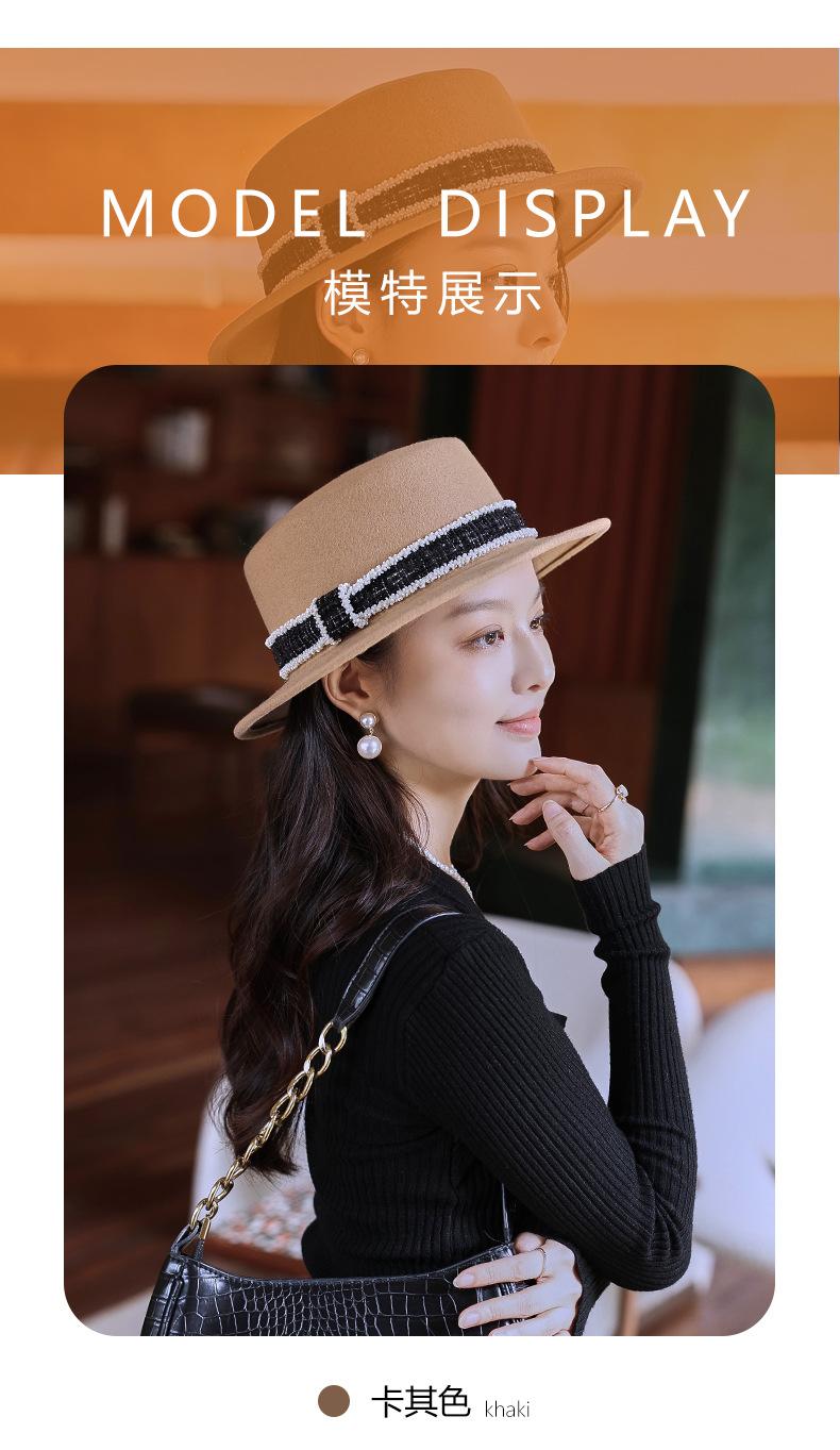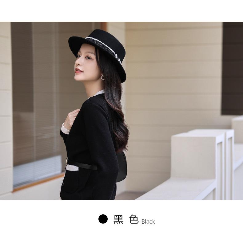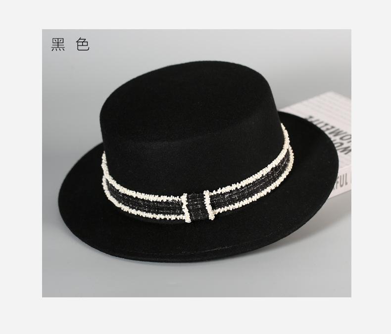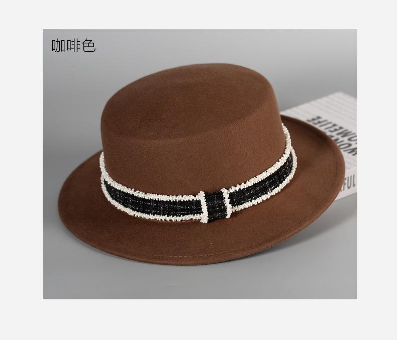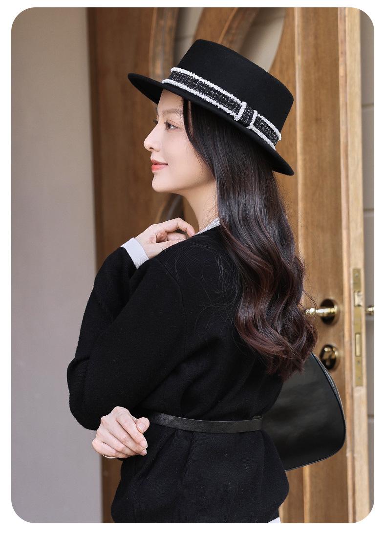 Sombrero de ala plana de estilo británico, boutique de moda de lana de otoño e invierno para mujer, sombrero de copa plana de banda ancha de estilo pequeño y fragante informal, venta al por mayor