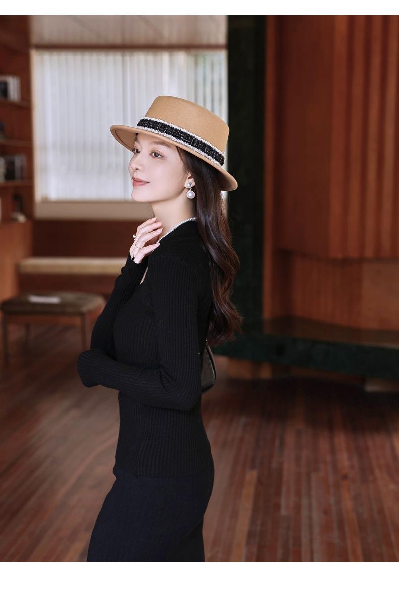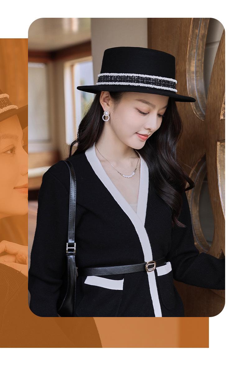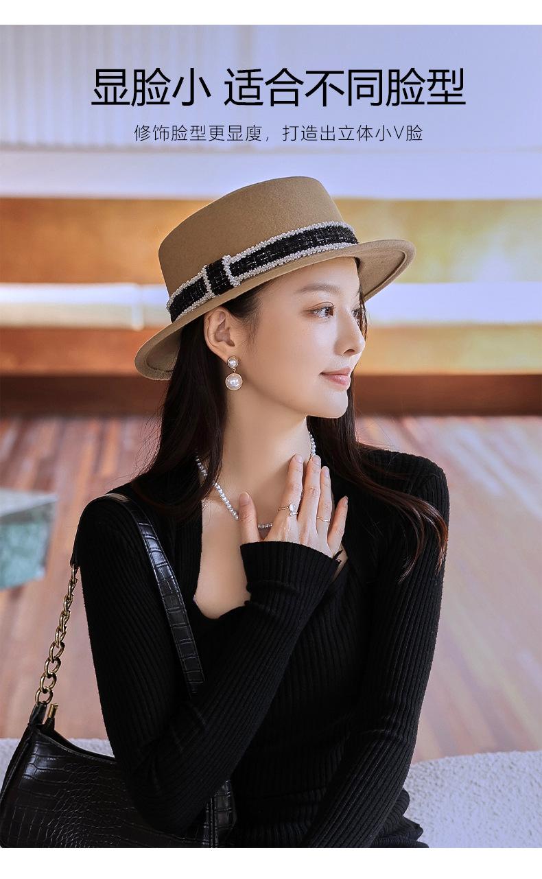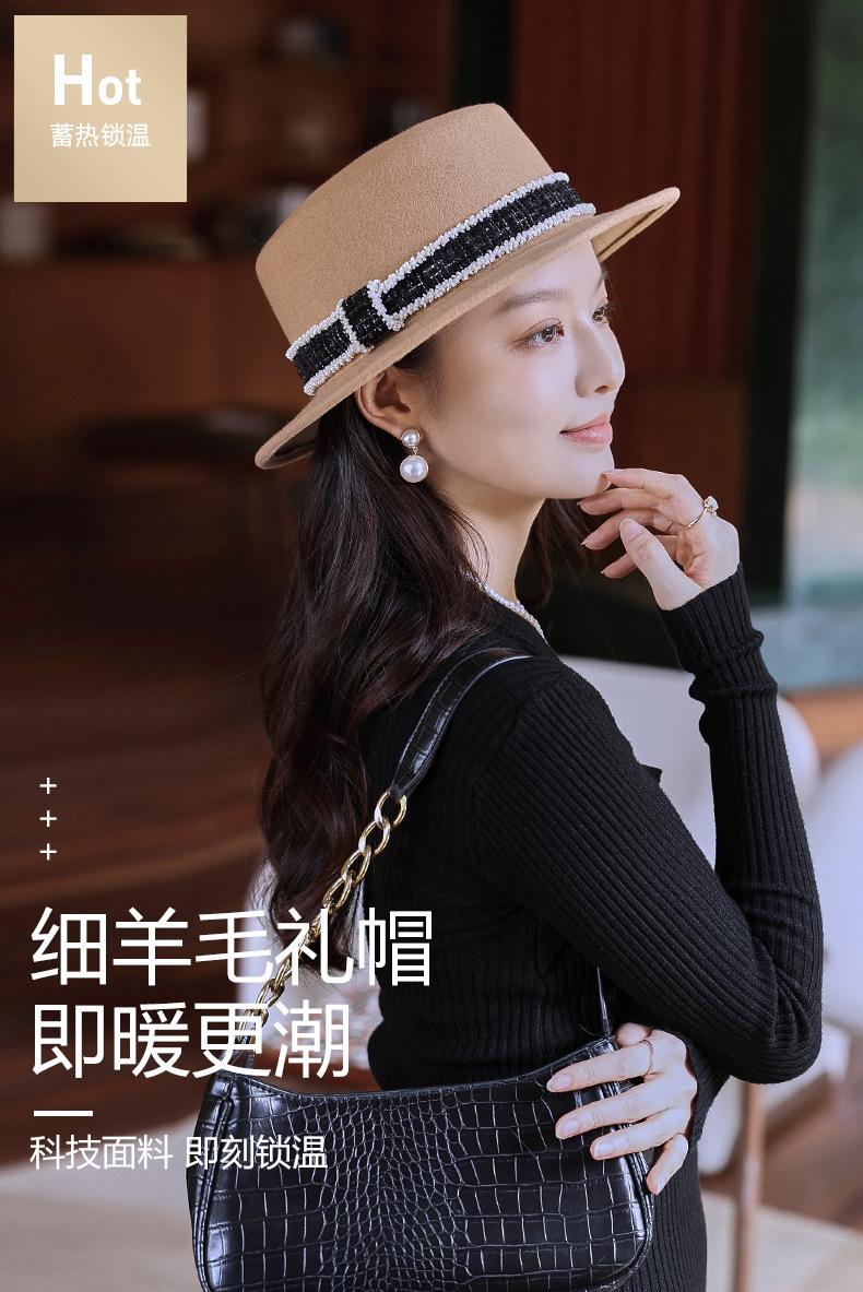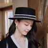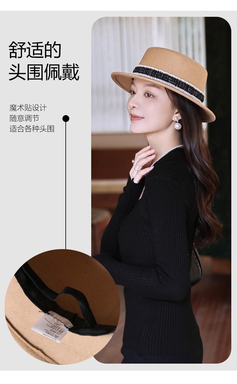 Sombrero de ala plana de estilo británico, boutique de moda de lana de otoño e invierno para mujer, sombrero de copa plana de banda ancha de estilo pequeño y fragante informal, venta al por mayor