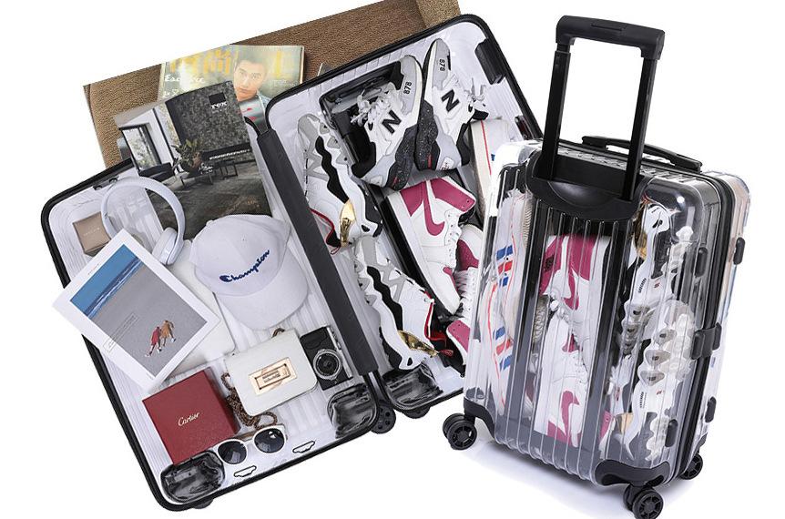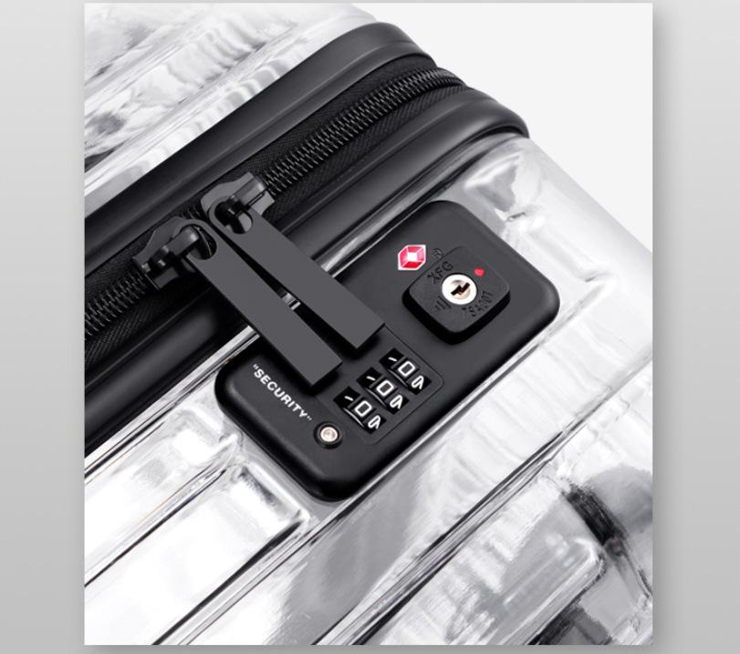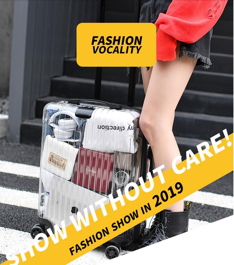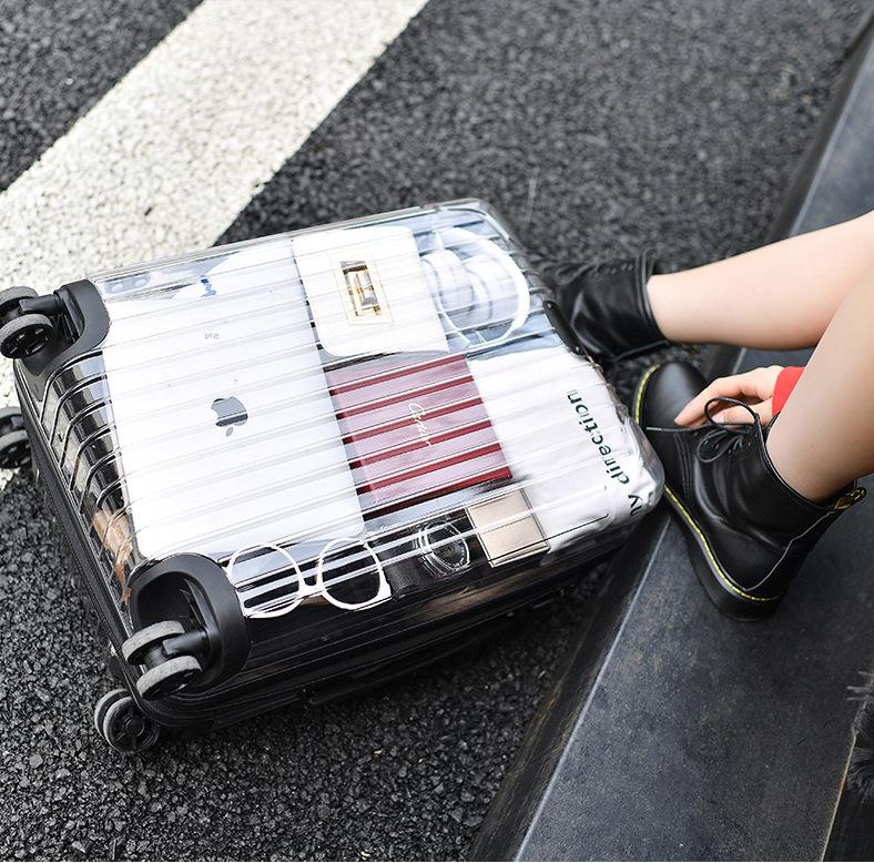 Maleta con ruedas personalizada de fábrica, maleta transparente, equipaje de moda Cyber Celebrity, maleta de embarque de PC pura, a prueba de caídas
