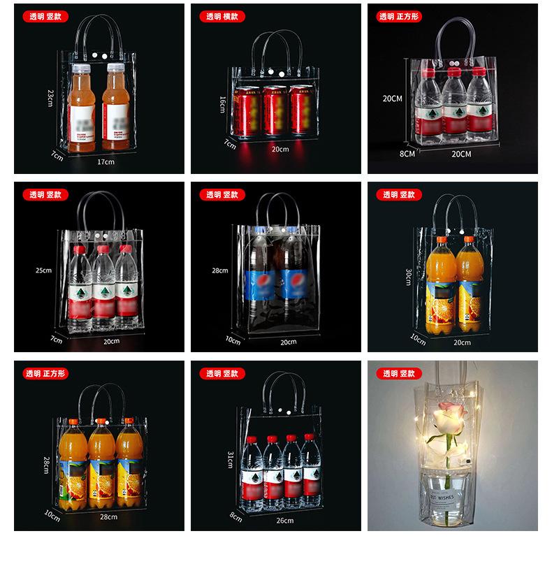 Bolsa de Plástico Pvc Personalizada con Broche Cartera Tienda de Ropa Bolsa de Compras Bolsa para Empaque de Bebidas Bolsa de Regalo Transparente Personalización
