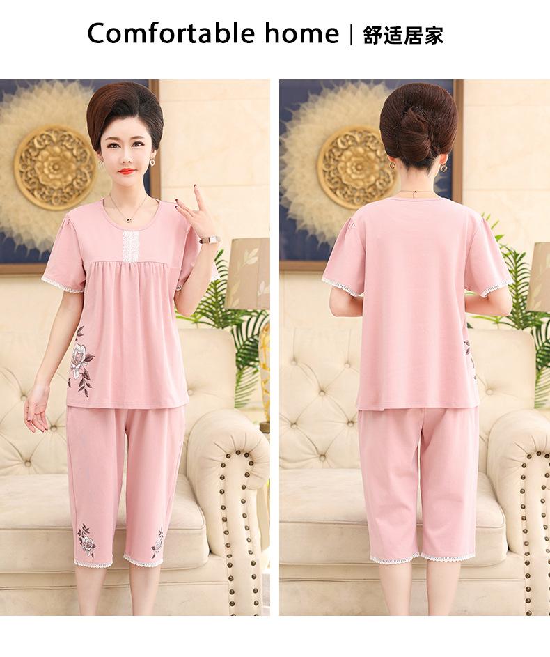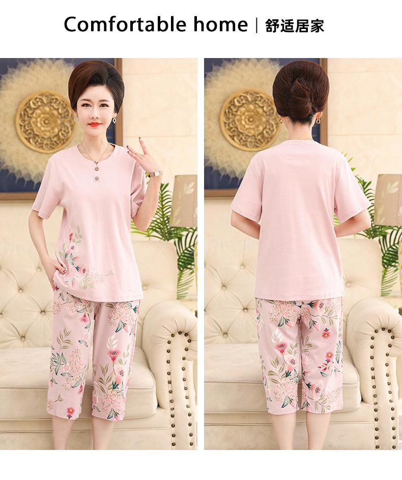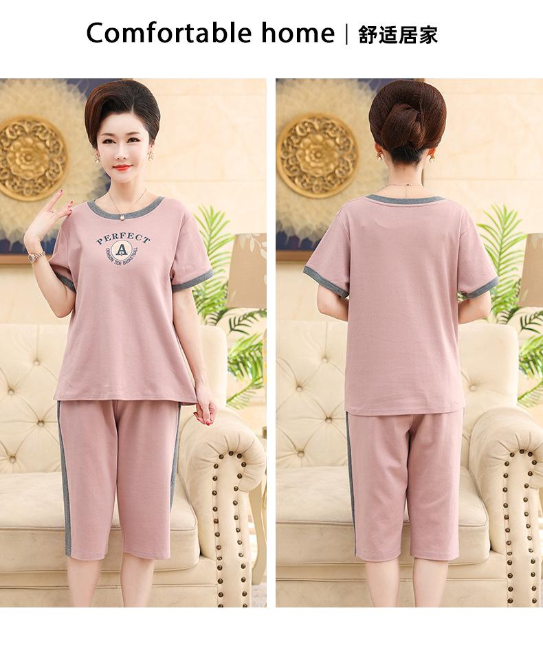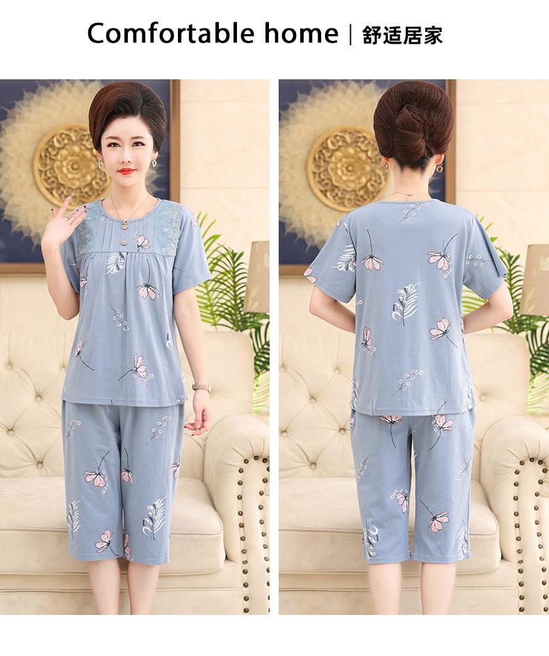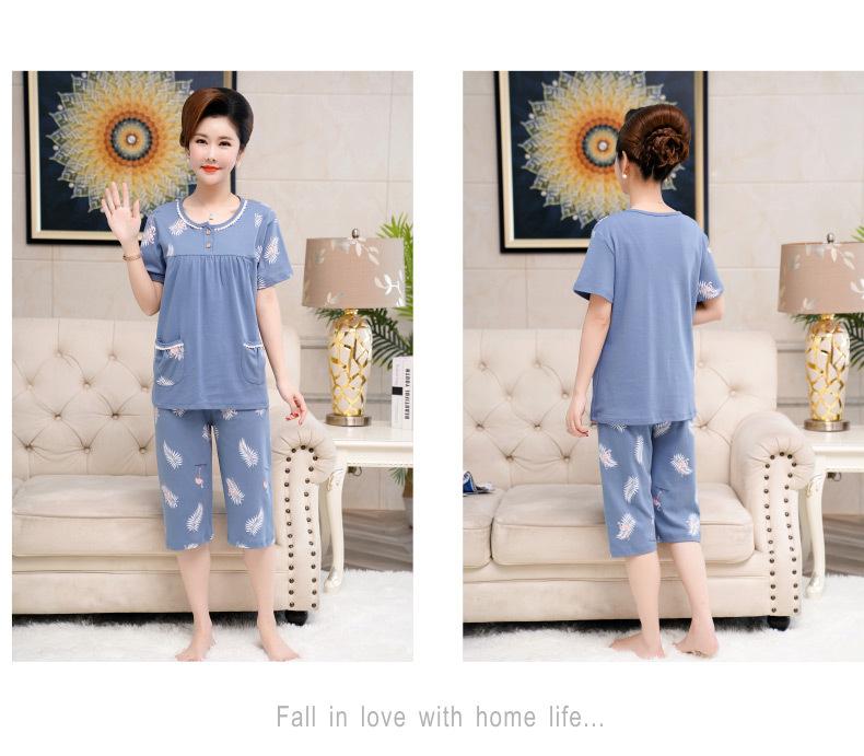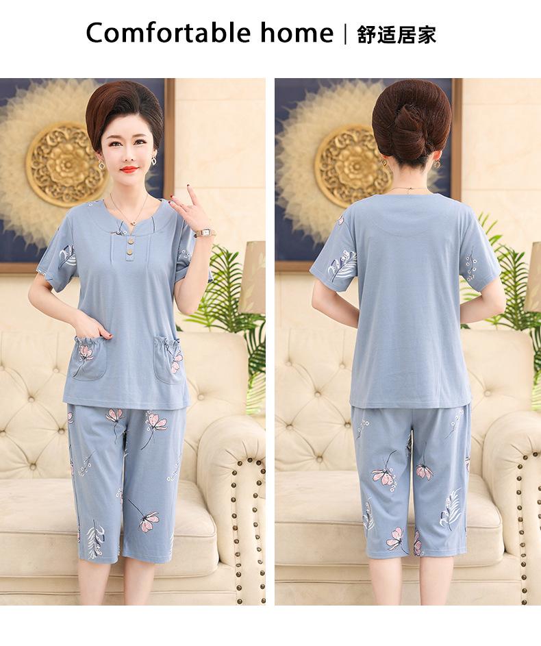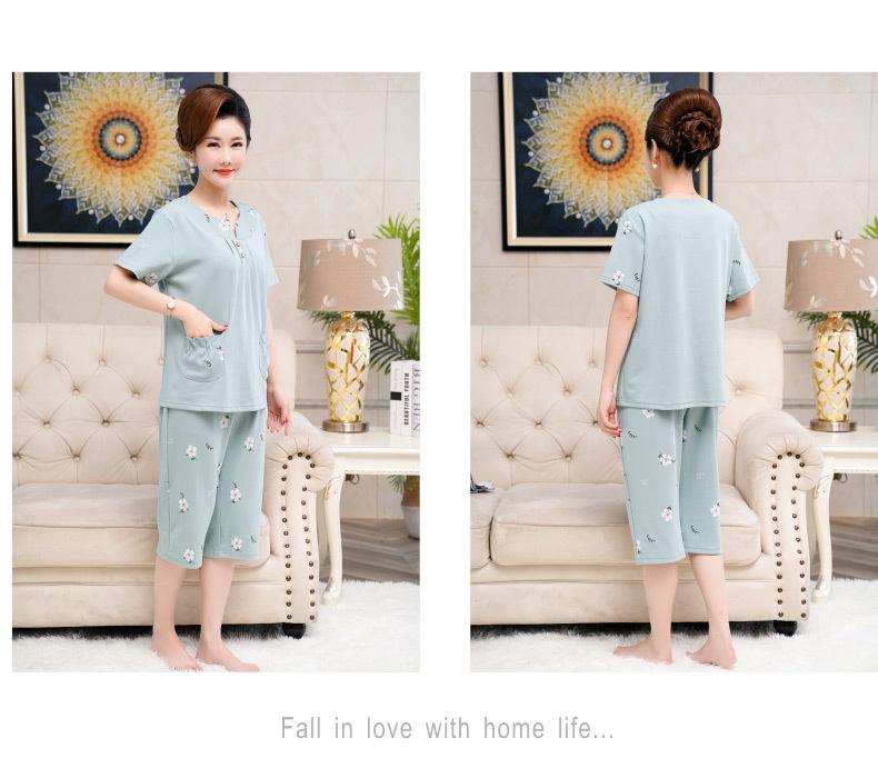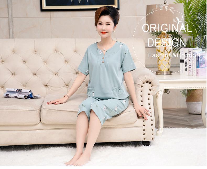 Pijama de verano para mujer de mediana edad y anciana de algodón puro de manga corta y pantalones capri delgados de verano para mamá para estar en casa se puede usar como traje de exterior