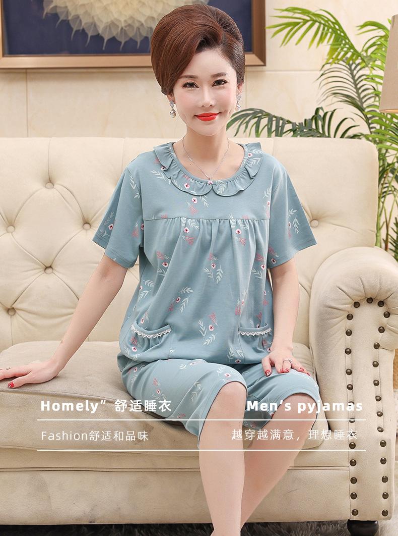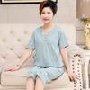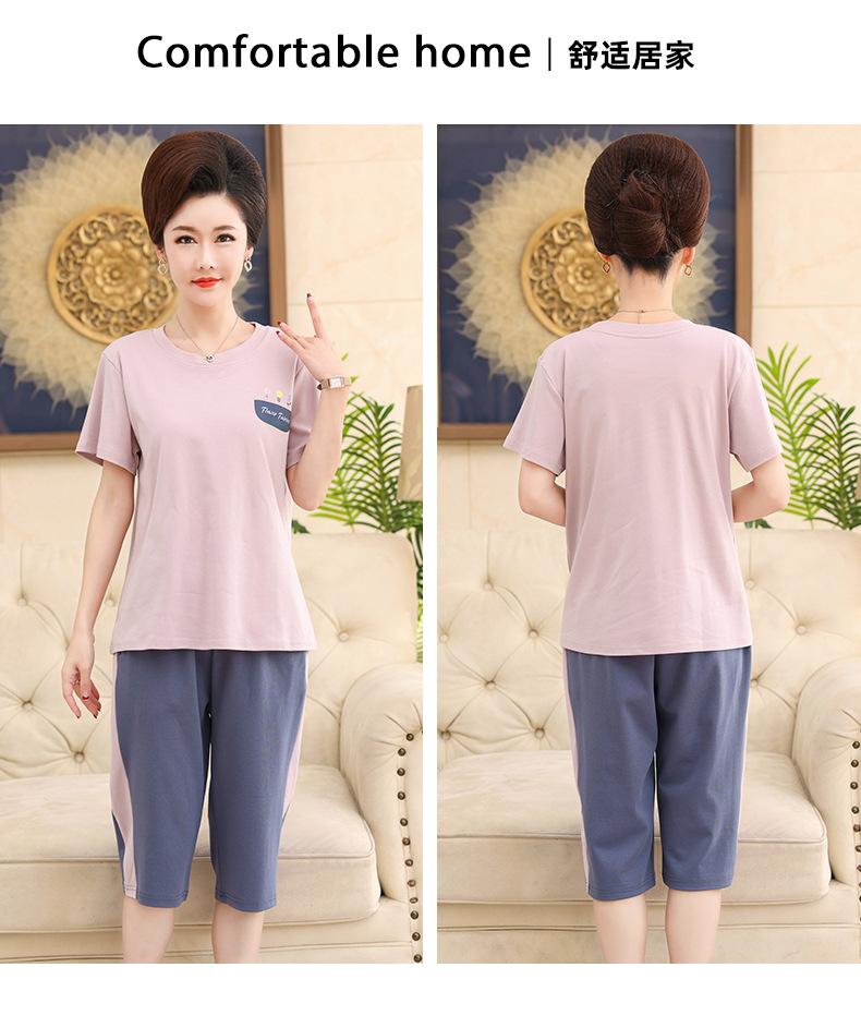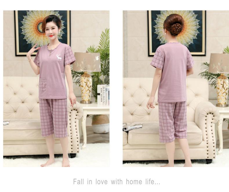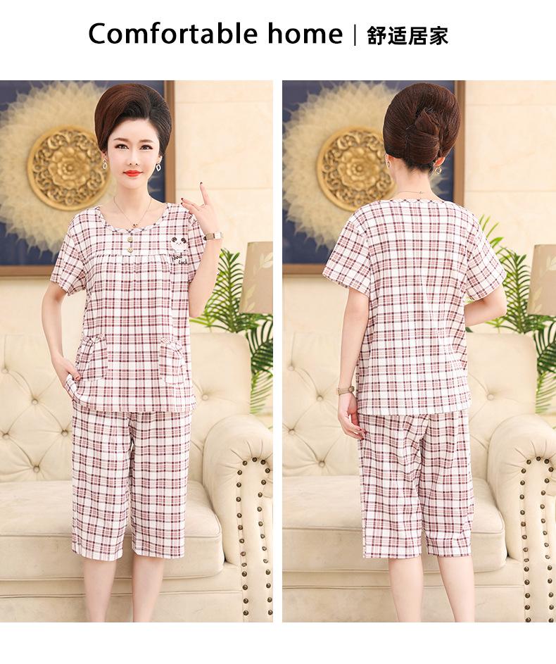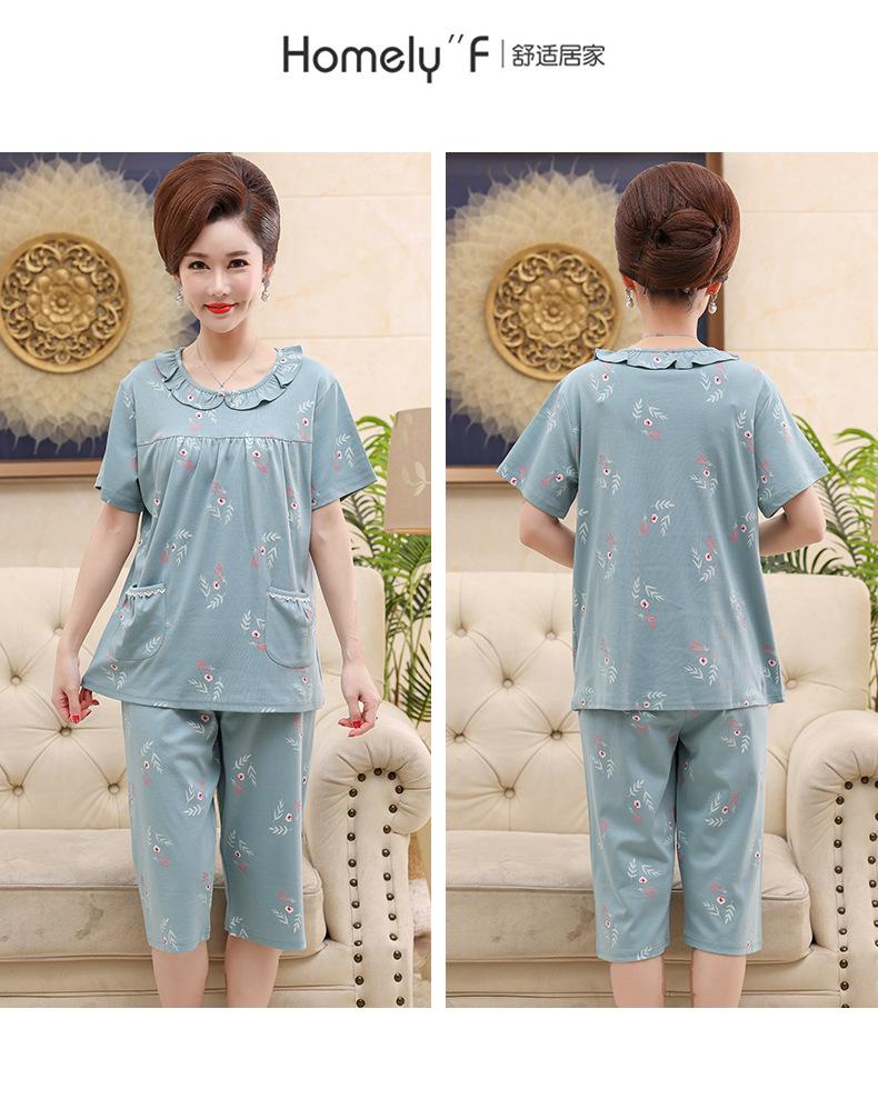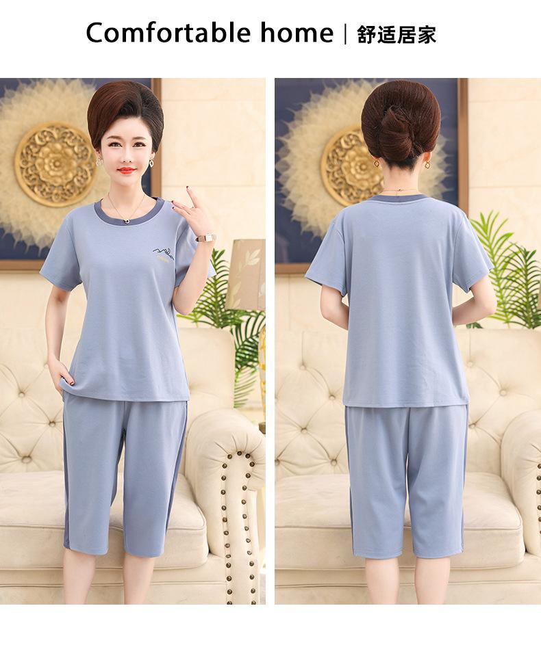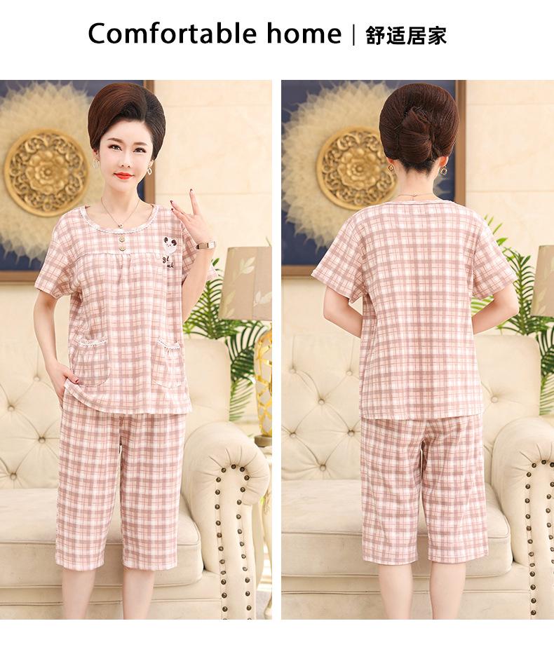 Pijama de verano para mujer de mediana edad y anciana de algodón puro de manga corta y pantalones capri delgados de verano para mamá para estar en casa se puede usar como traje de exterior