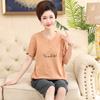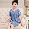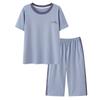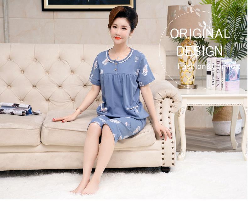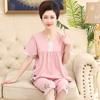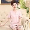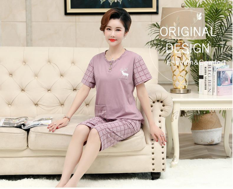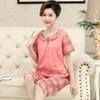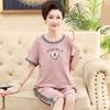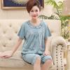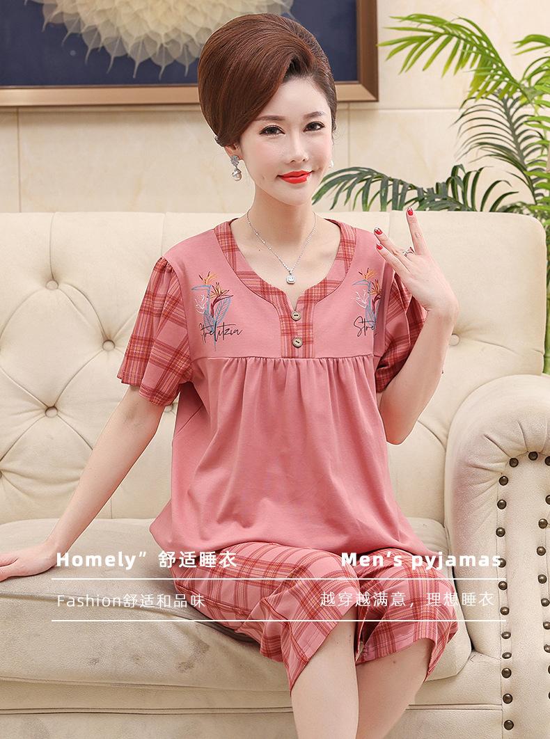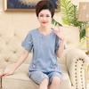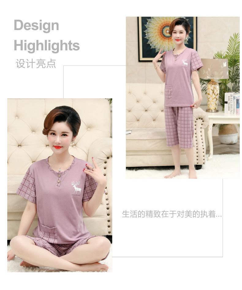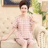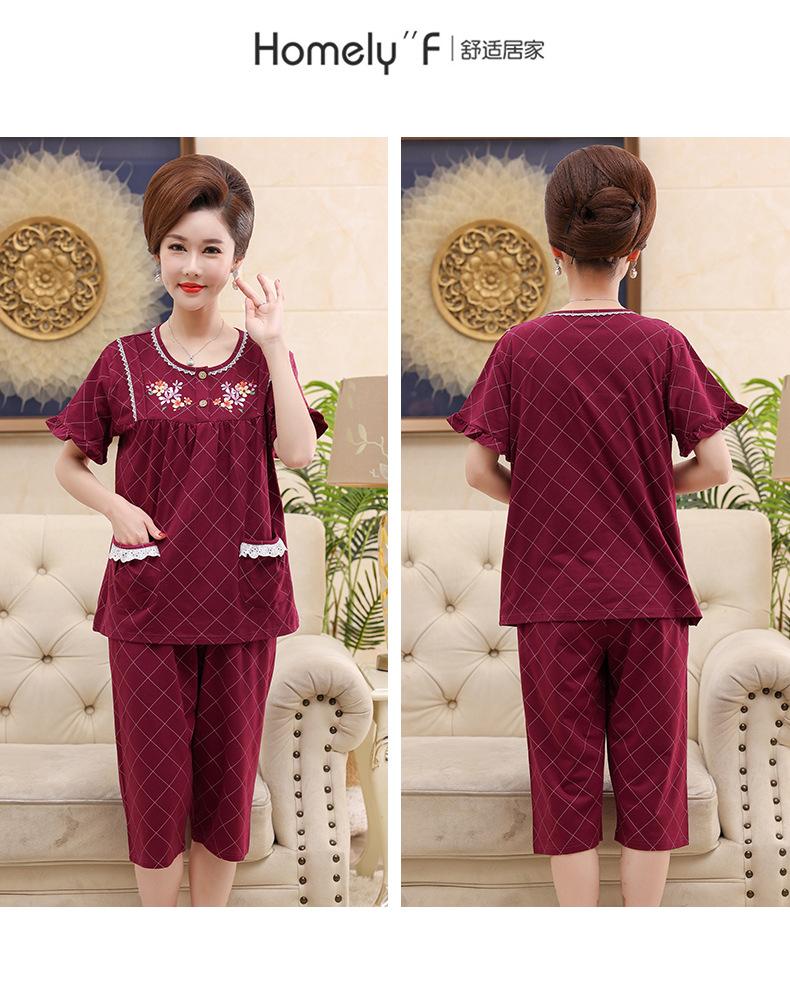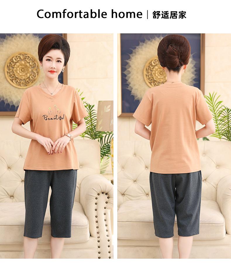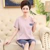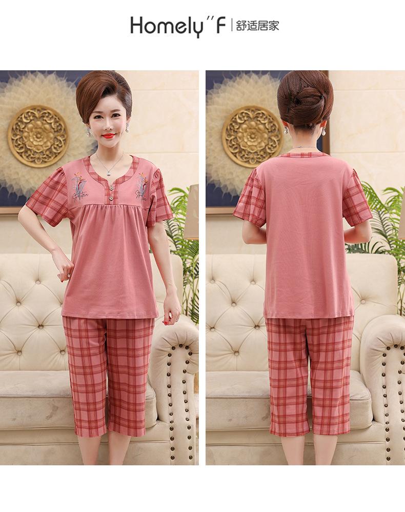 Pijama de verano para mujer de mediana edad y anciana de algodón puro de manga corta y pantalones capri delgados de verano para mamá para estar en casa se puede usar como traje de exterior