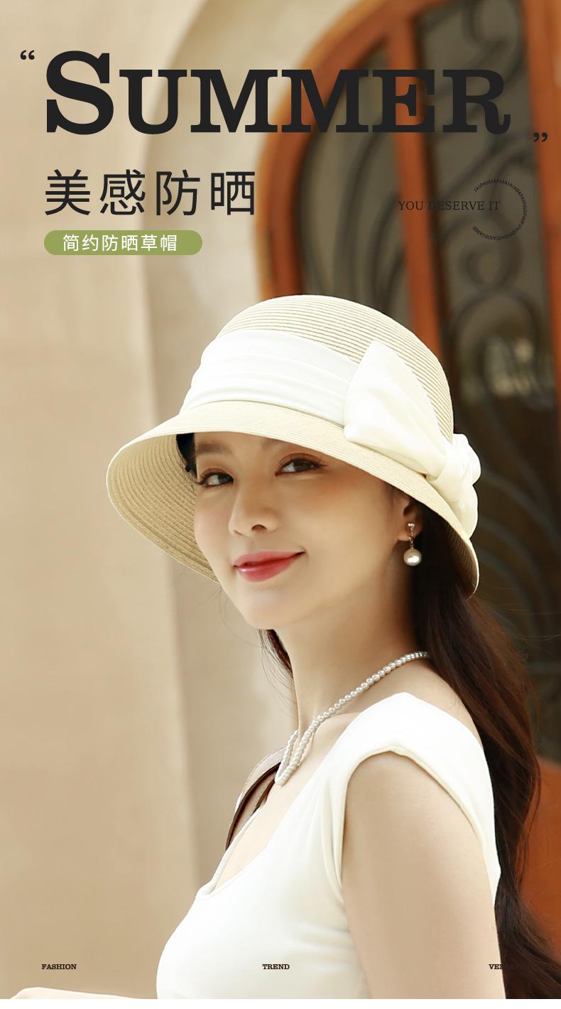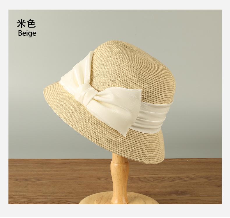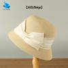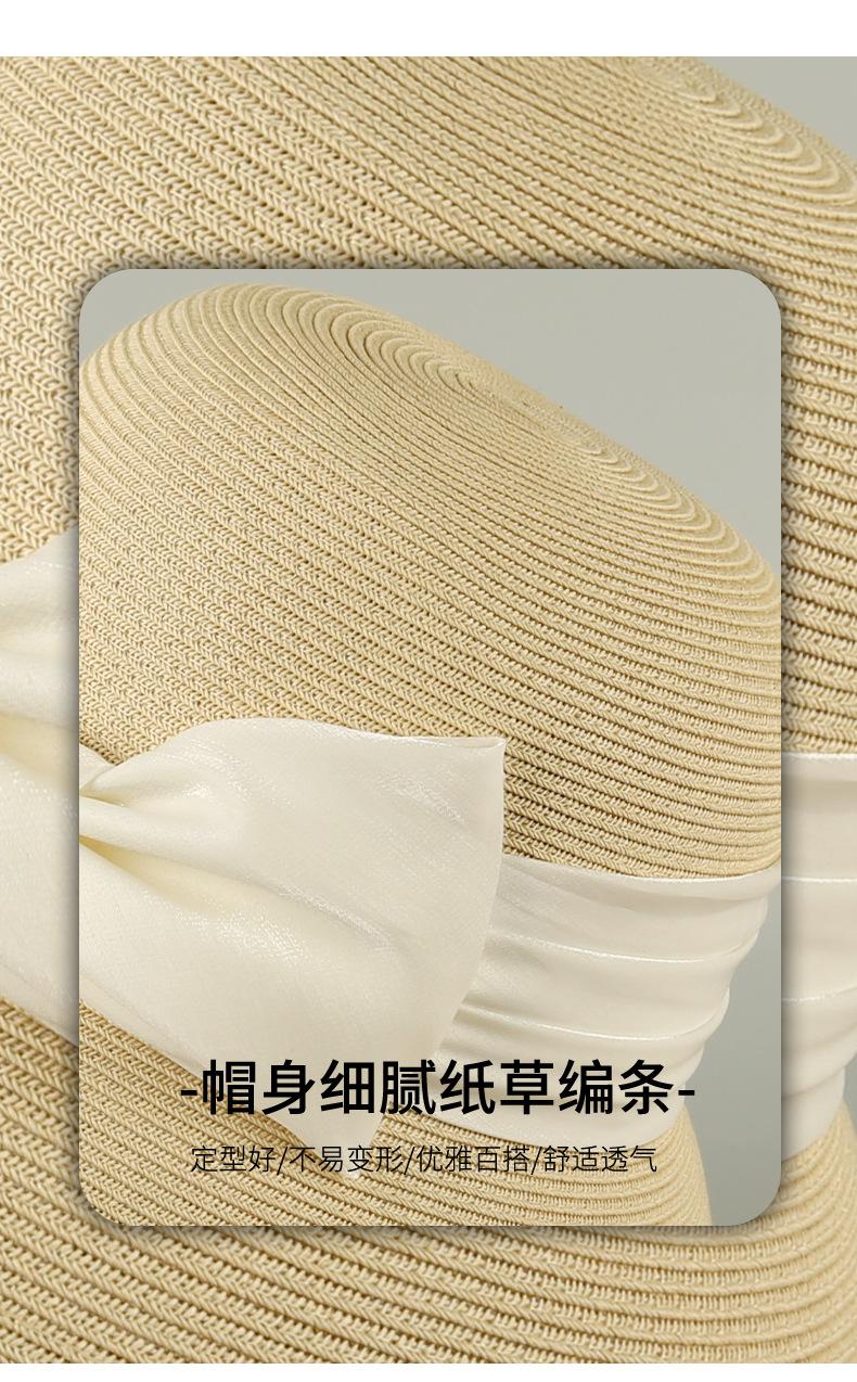 Sombrero de pescador de lino sintético con lazo de cinta para mujer, sombrero de playa con ala grande para vacaciones en la playa, parasol, protección solar, sombrero de paja para verano