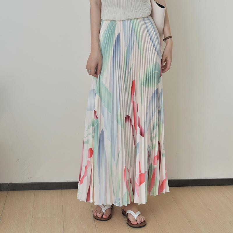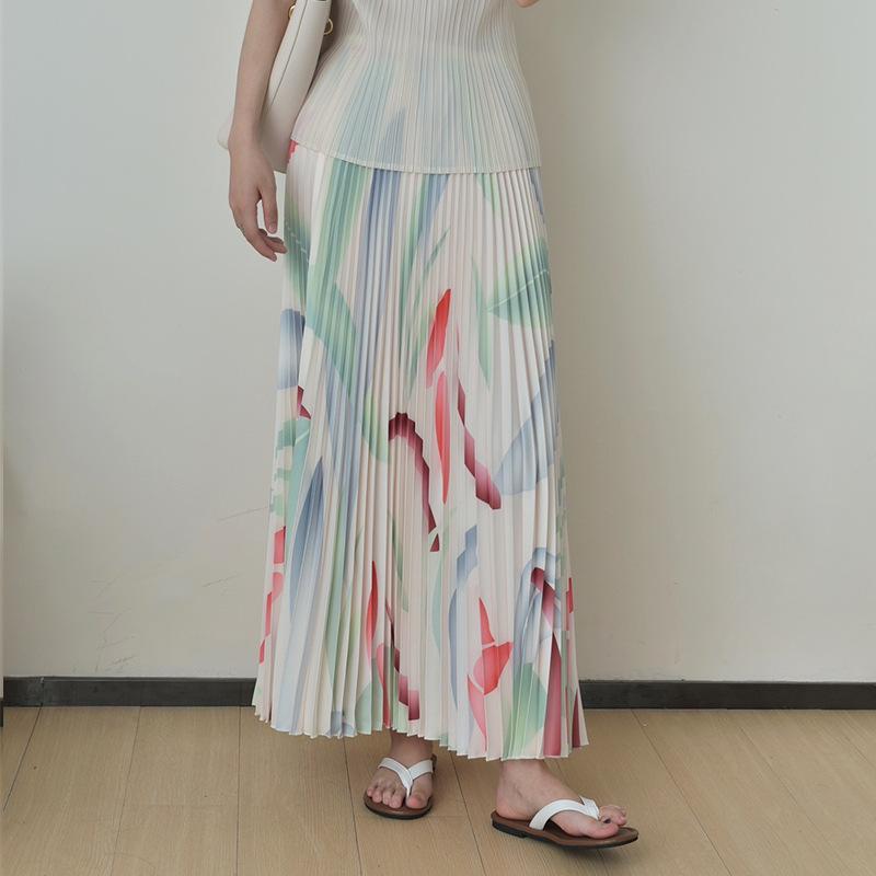 | Ropa de gran venta de Xiaohongshu, traje plisado de moda para mujer, top ajustado estampado, falda plisada de manga larga, traje de dos piezas |