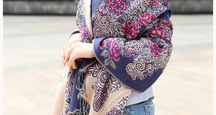 Bufanda de algodón y lino de doble cara, larga y gruesa, para mujer, de Lijiang, para primavera, otoño e invierno, venta al por mayor de fábrica