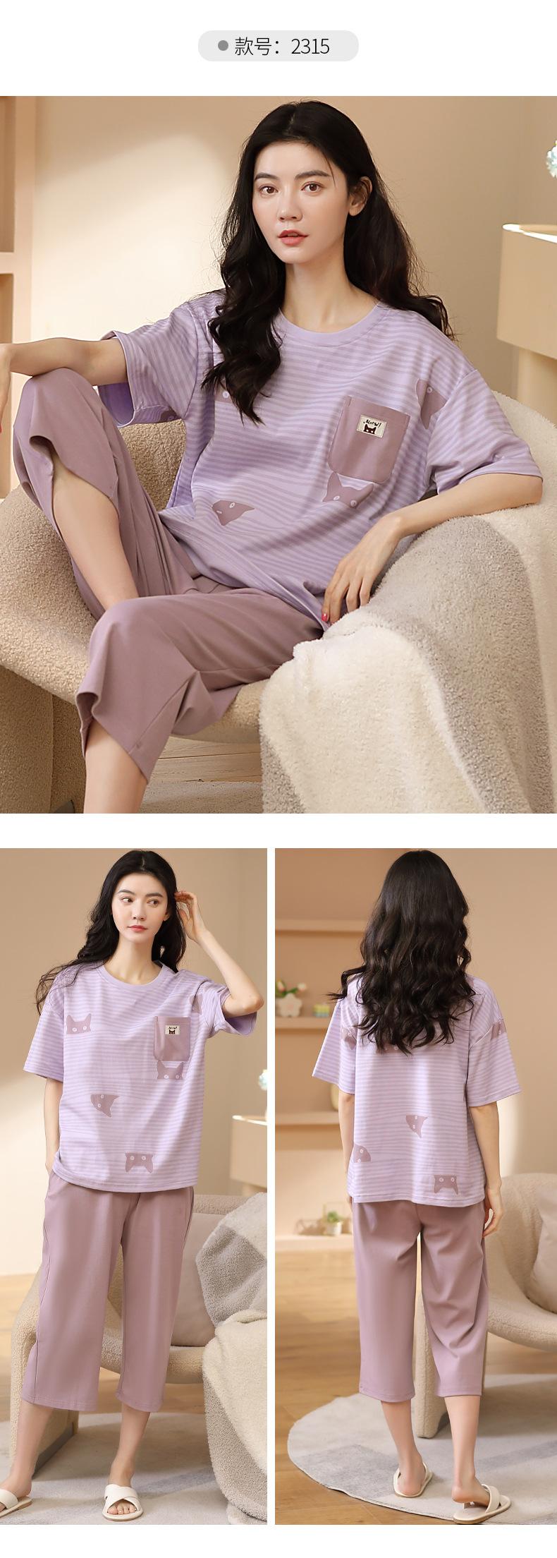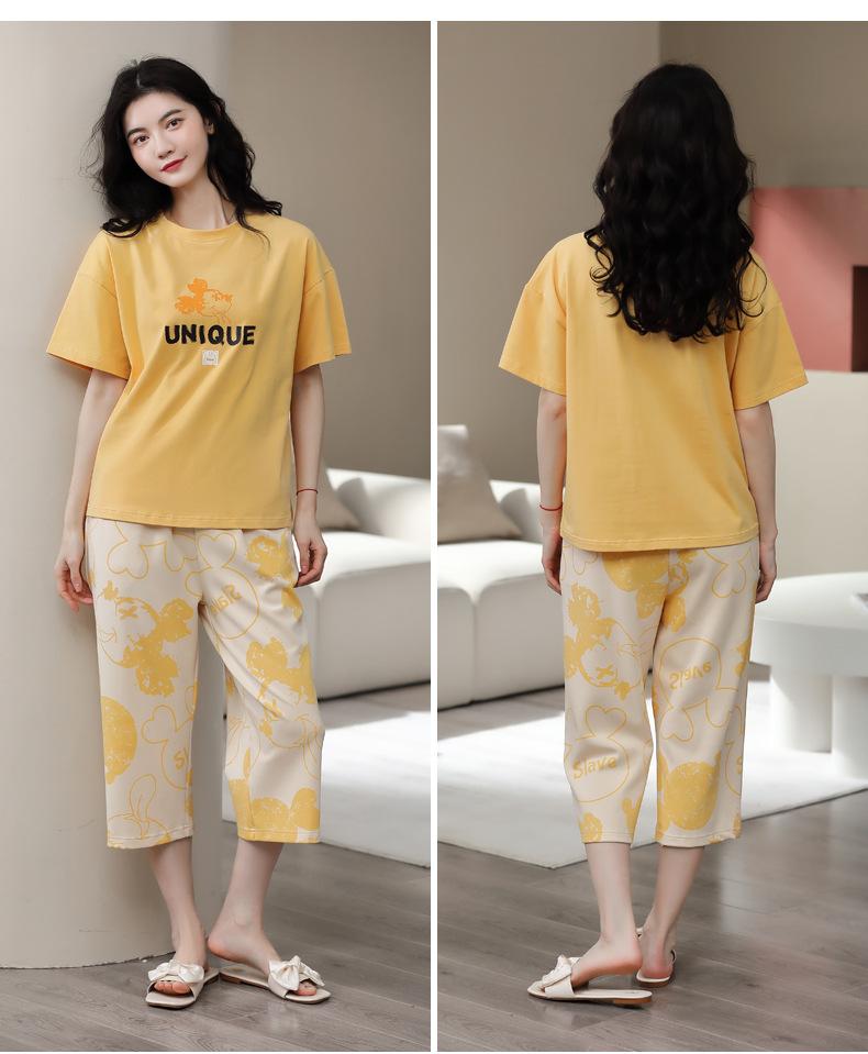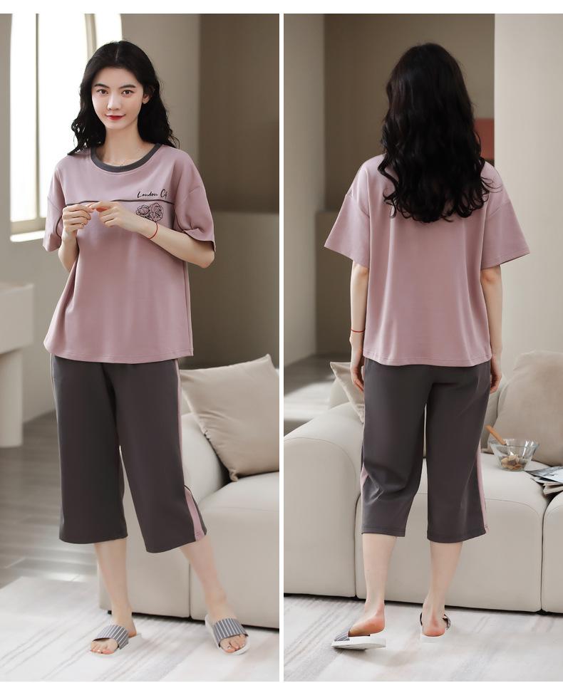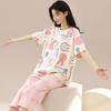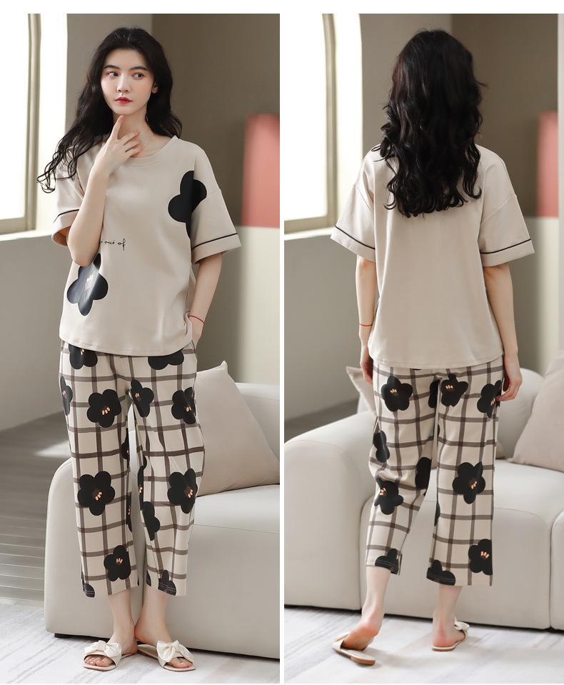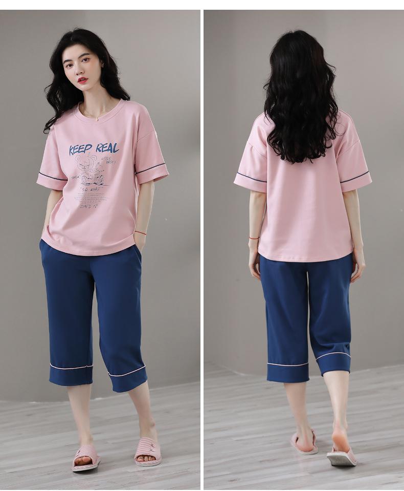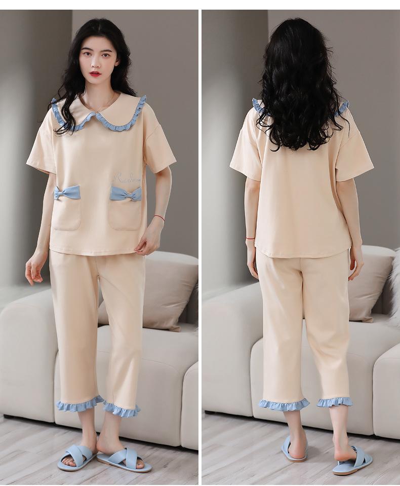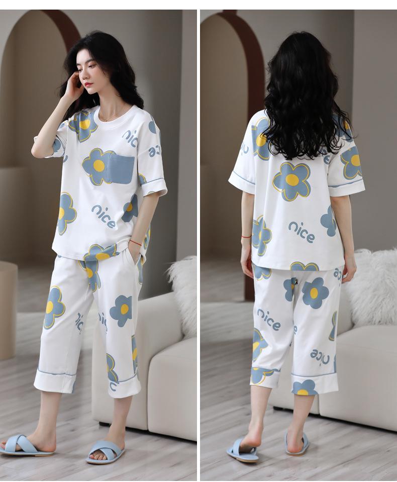 Pijamas de verano para mujer, de algodón puro, de manga corta, estilo capri, ropa informal de estilo dulce para el hogar, ropa exterior.