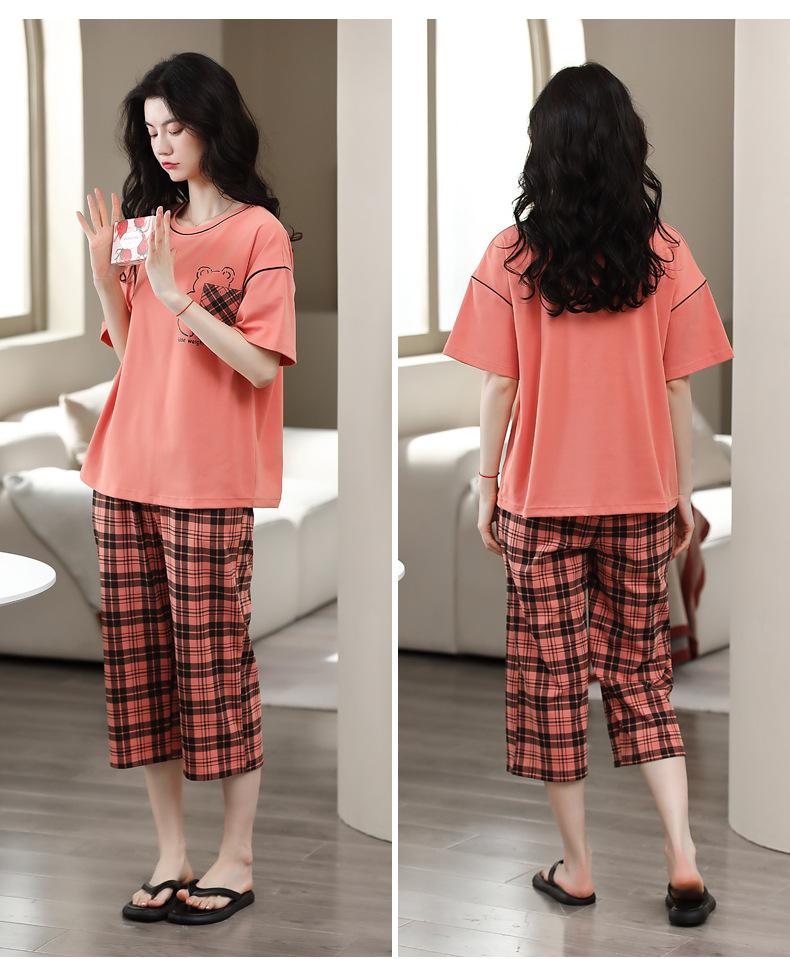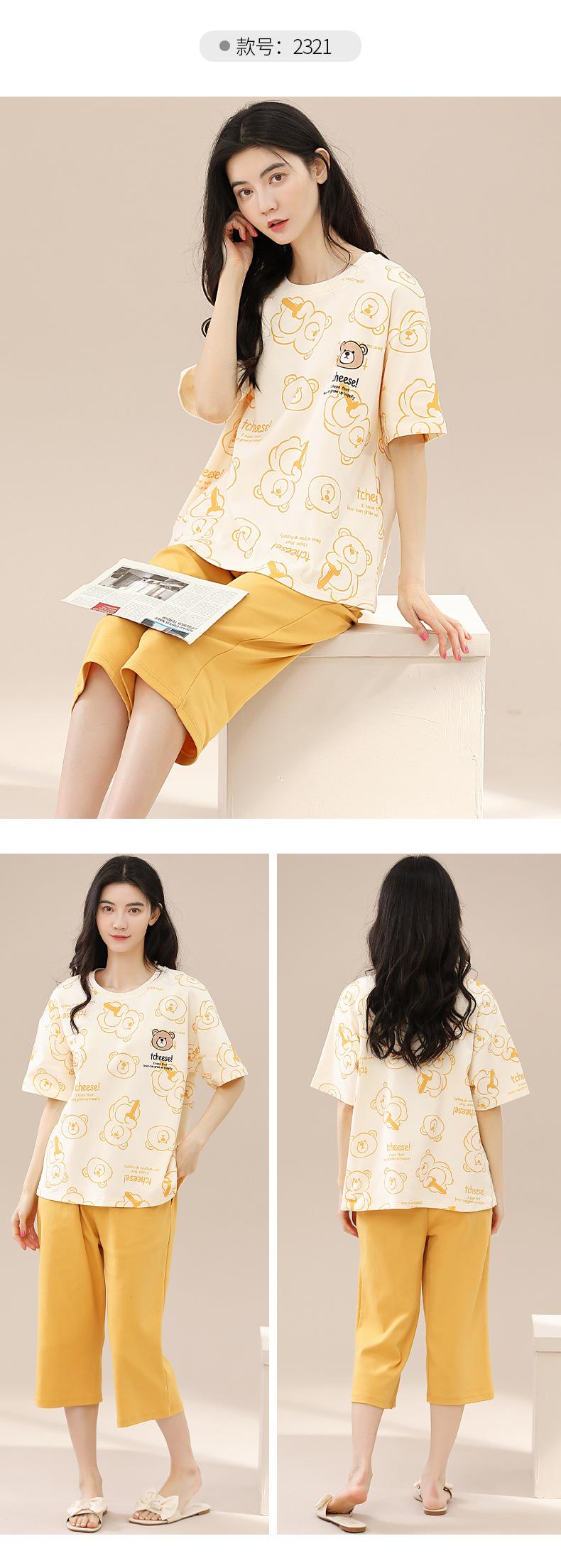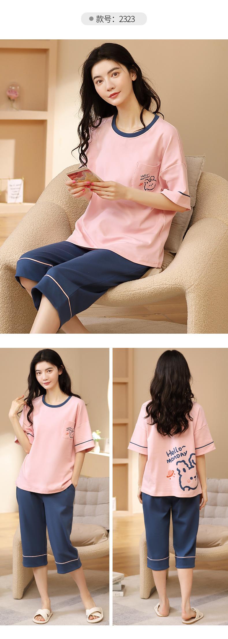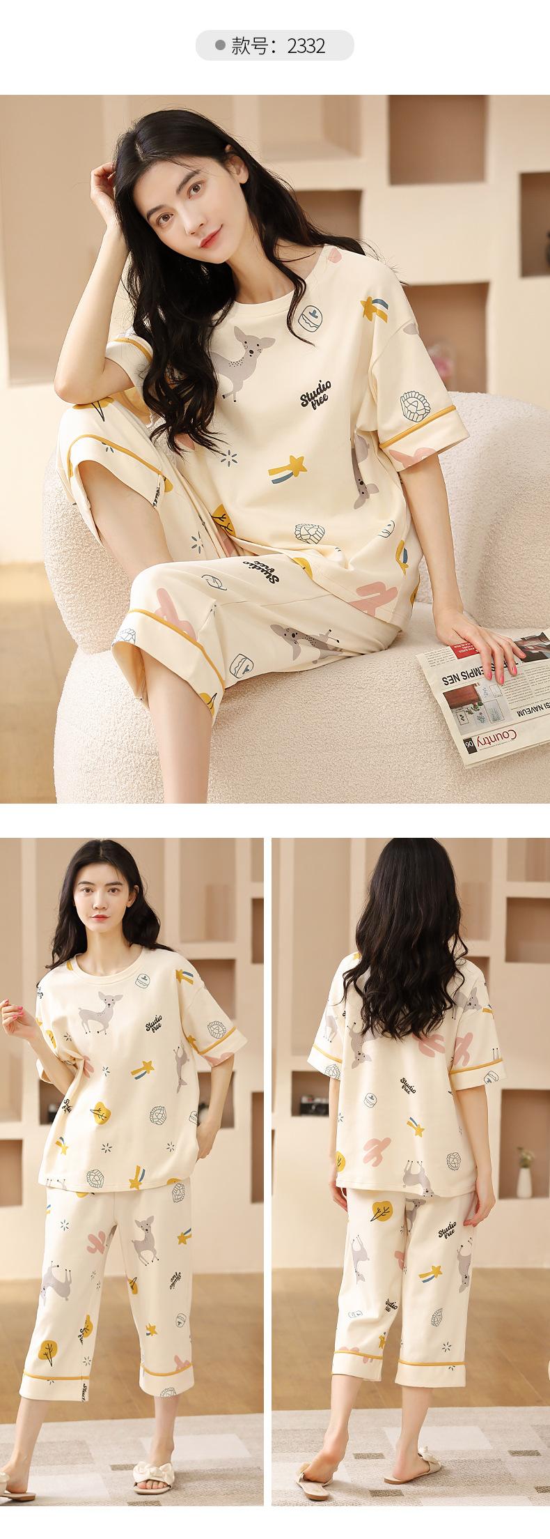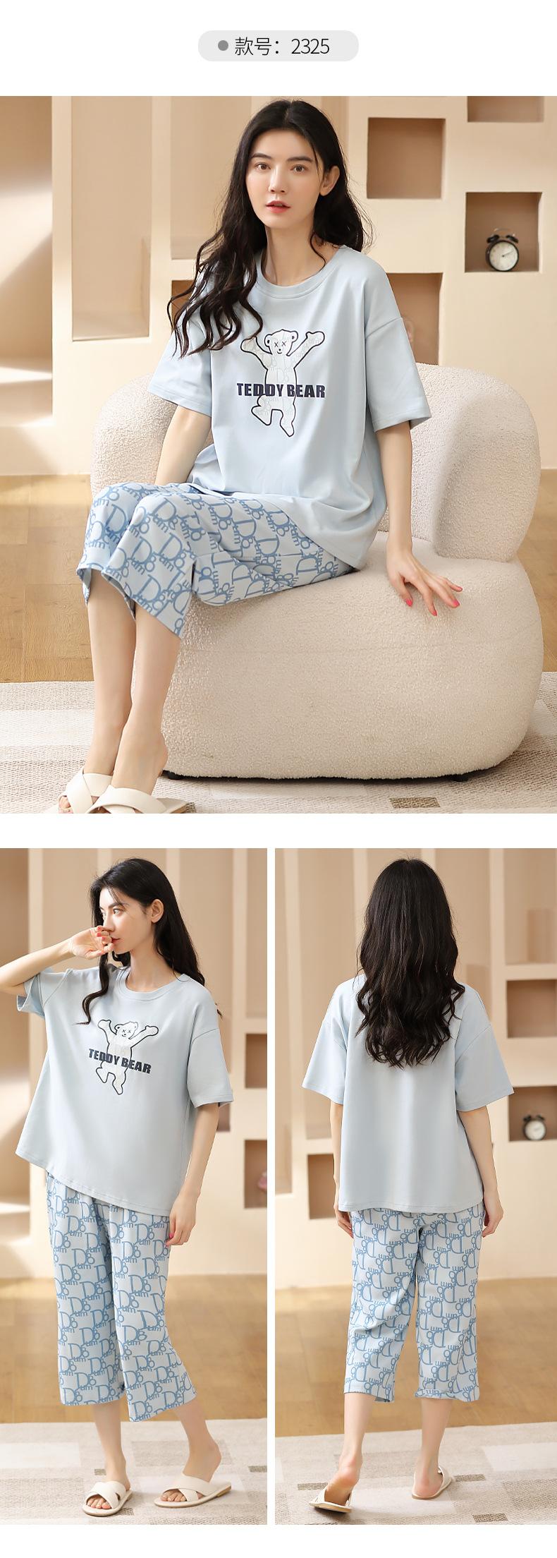 Pijamas de verano para mujer, de algodón puro, de manga corta, estilo capri, ropa informal de estilo dulce para el hogar, ropa exterior.
