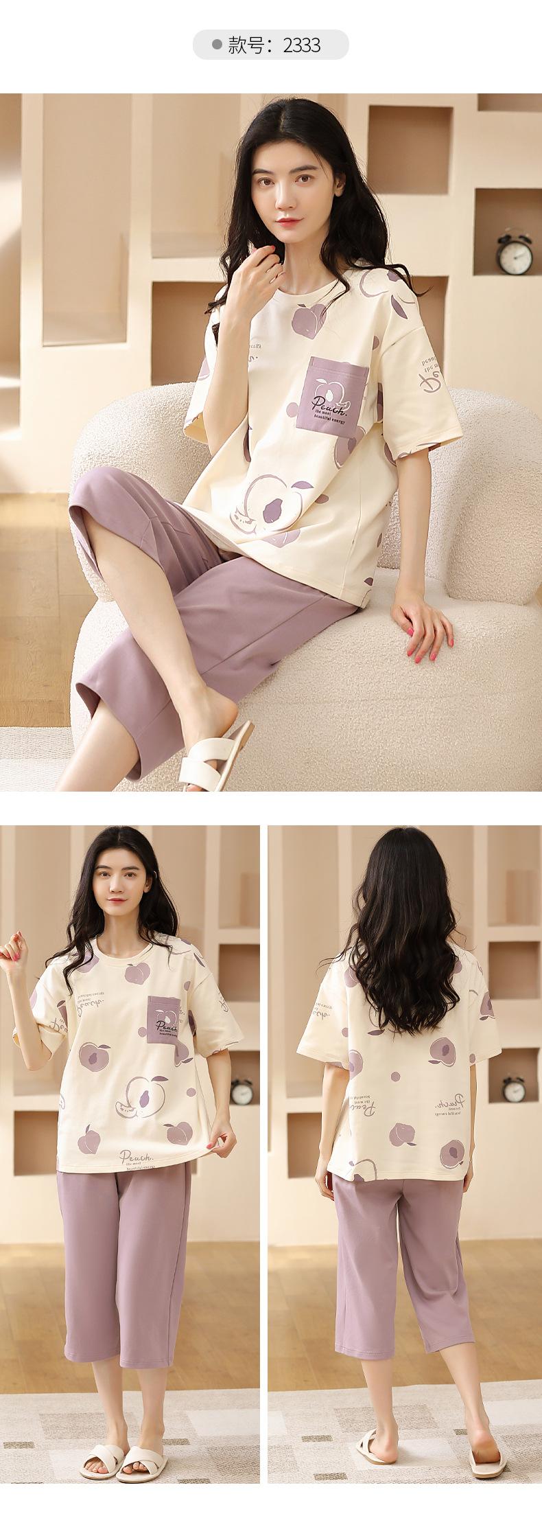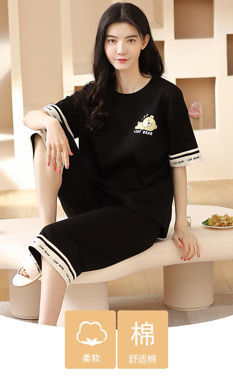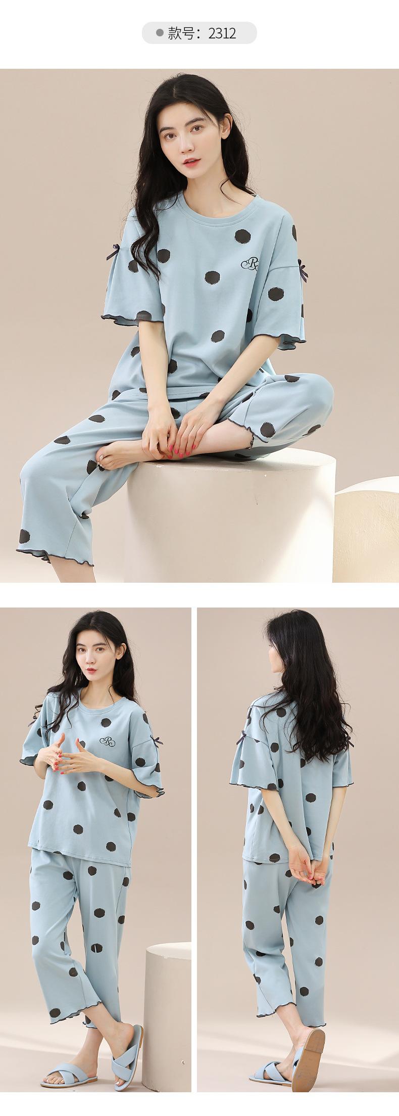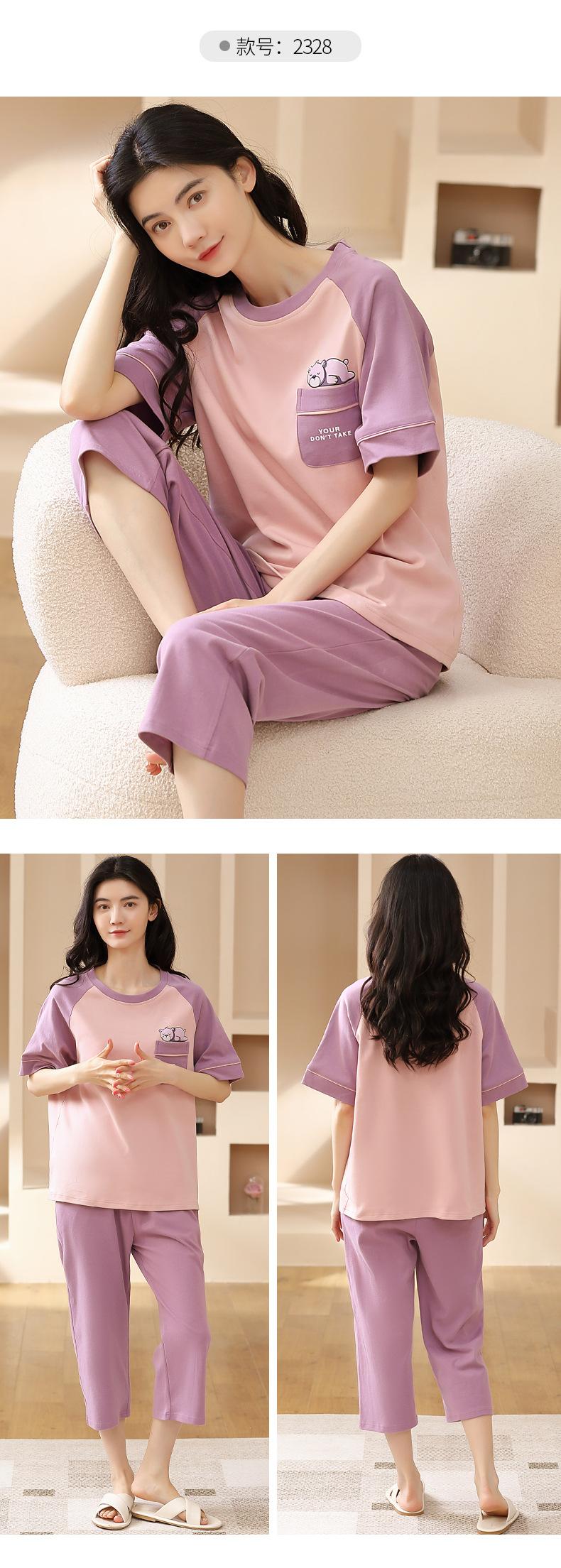 Pijamas de verano para mujer, de algodón puro, de manga corta, estilo capri, ropa informal de estilo dulce para el hogar, ropa exterior.