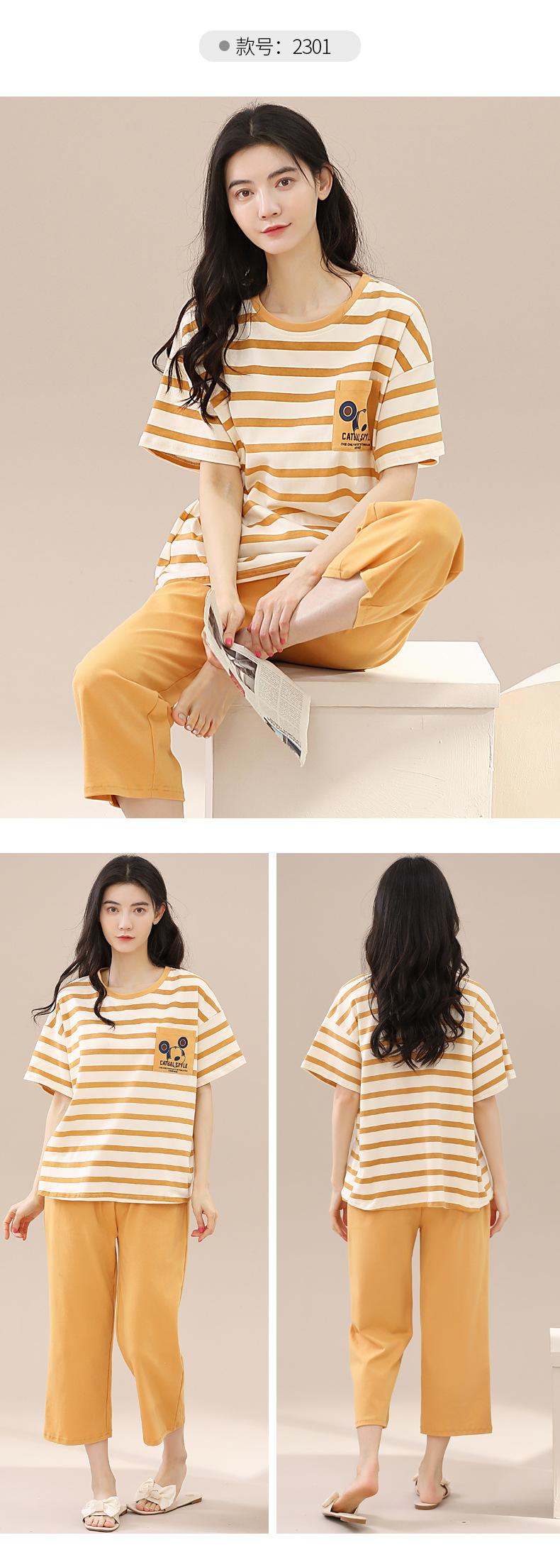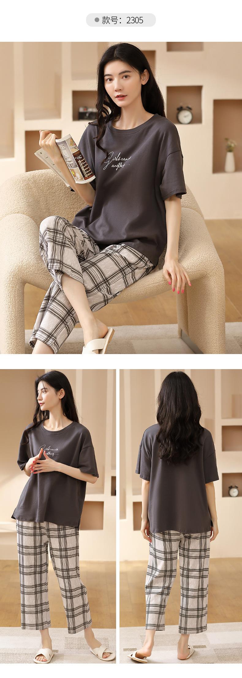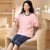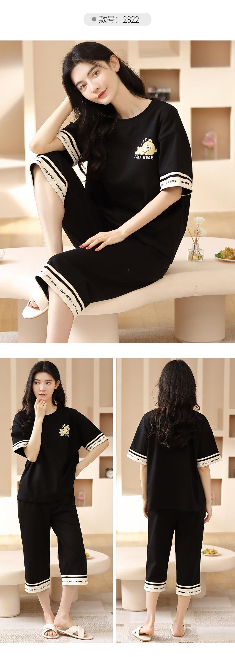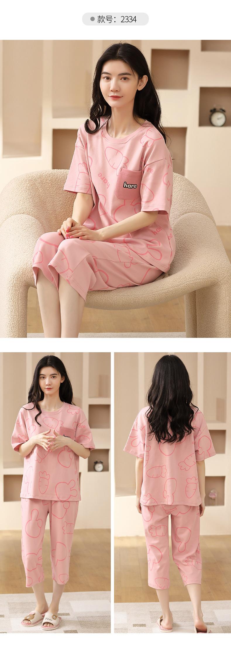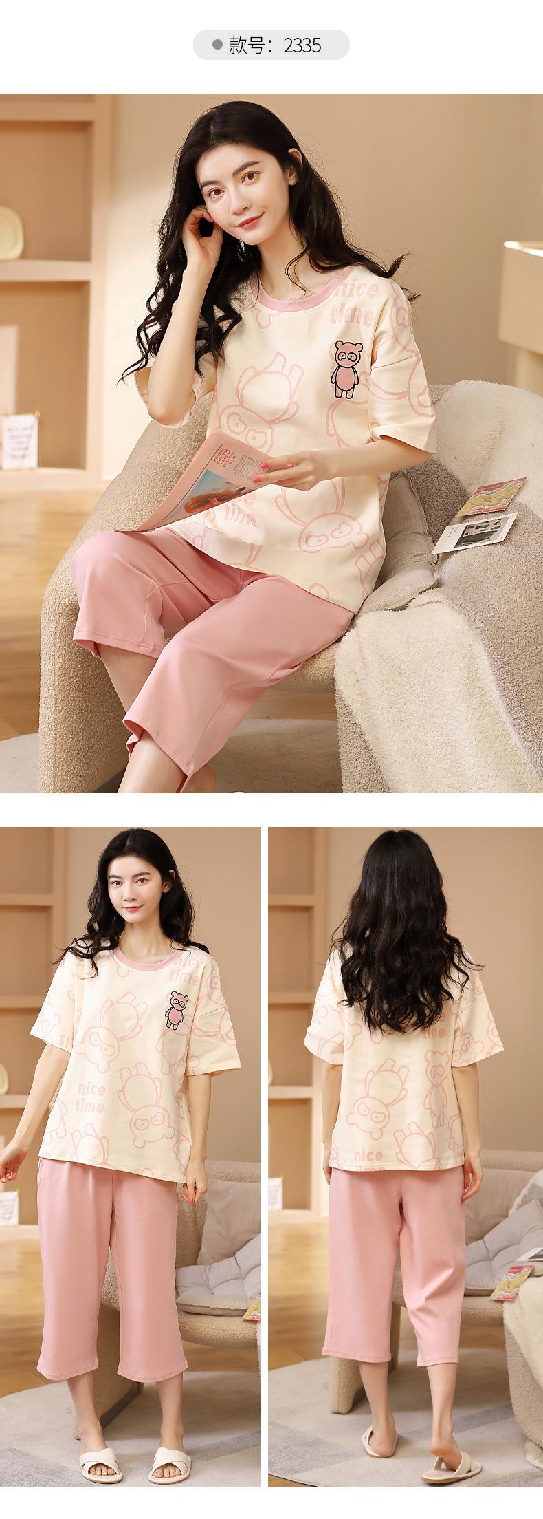 Pijamas de verano para mujer, de algodón puro, de manga corta, estilo capri, ropa informal de estilo dulce para el hogar, ropa exterior.