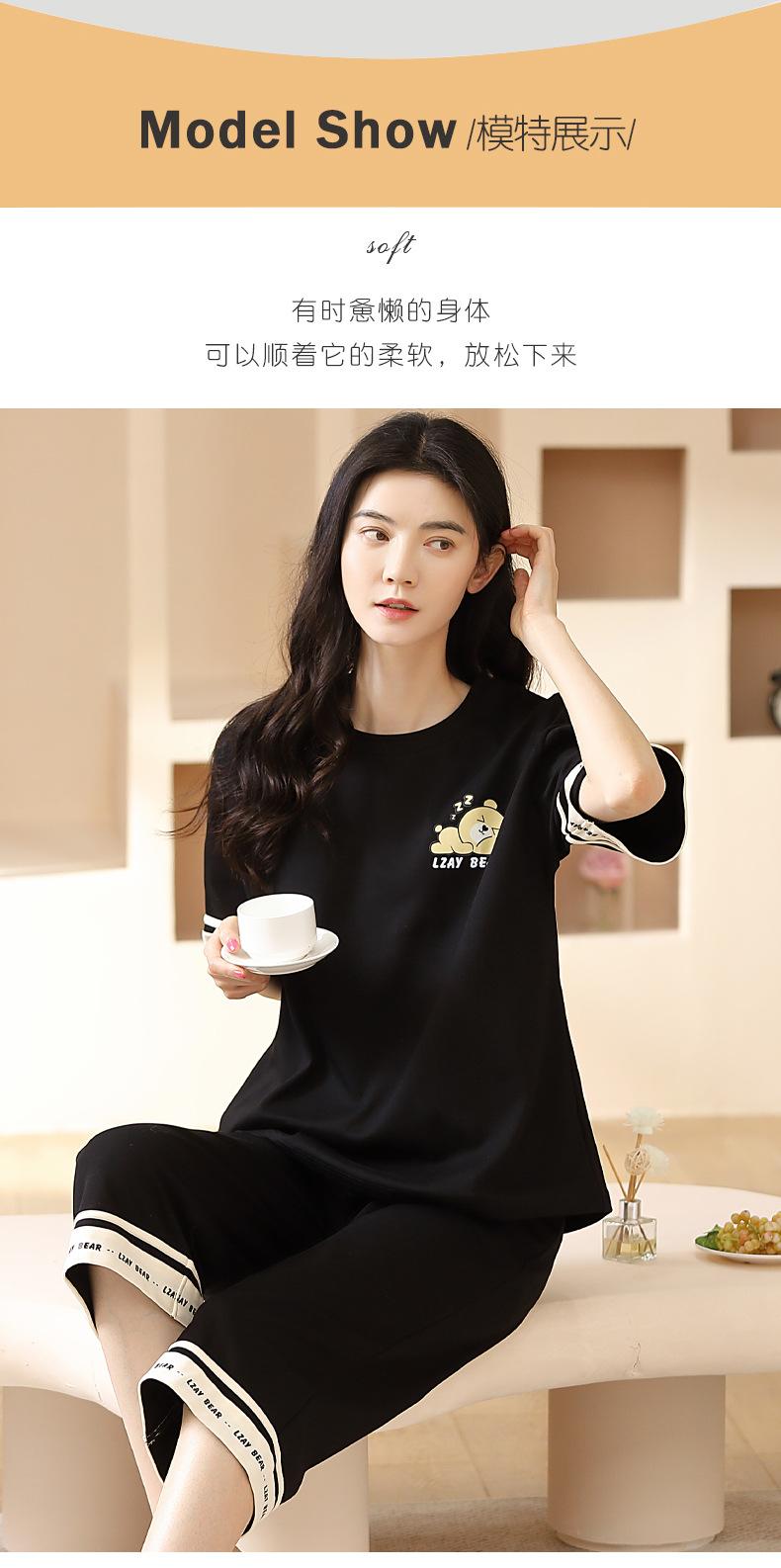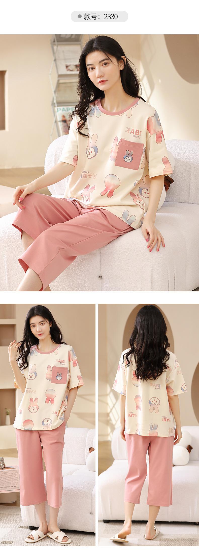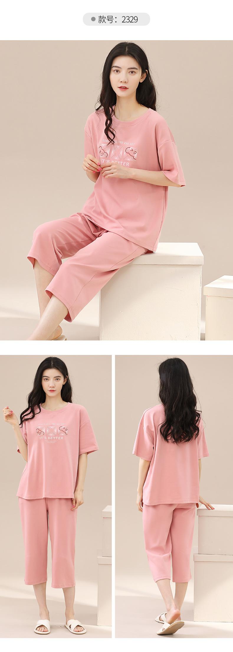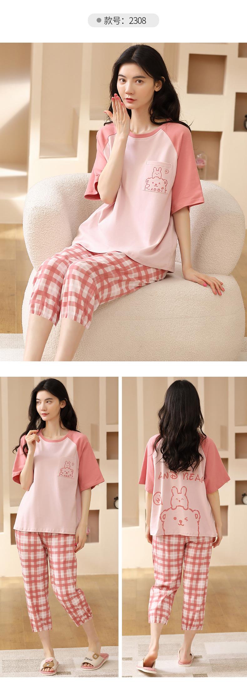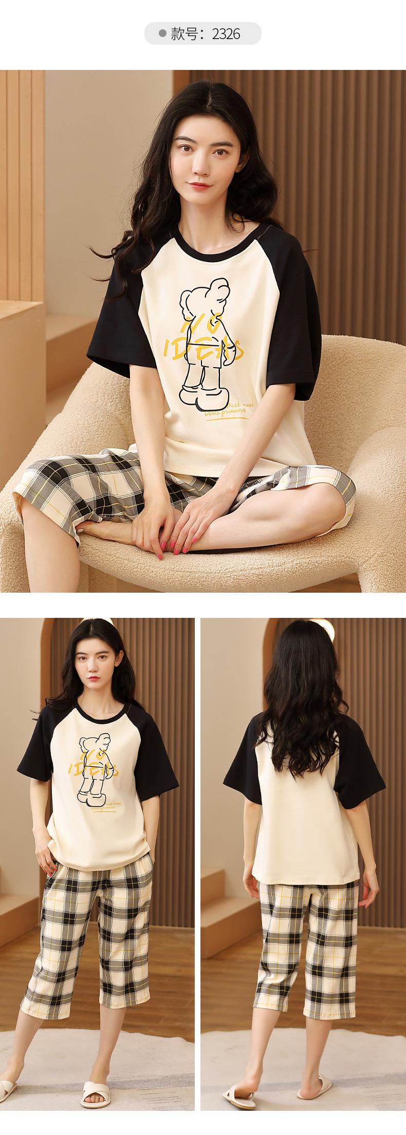Pijamas de verano para mujer, de algodón puro, de manga corta, estilo capri, ropa informal de estilo dulce para el hogar, ropa exterior.