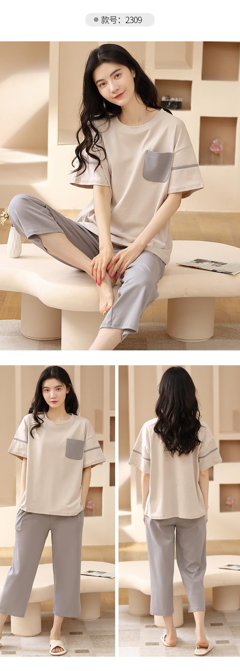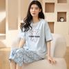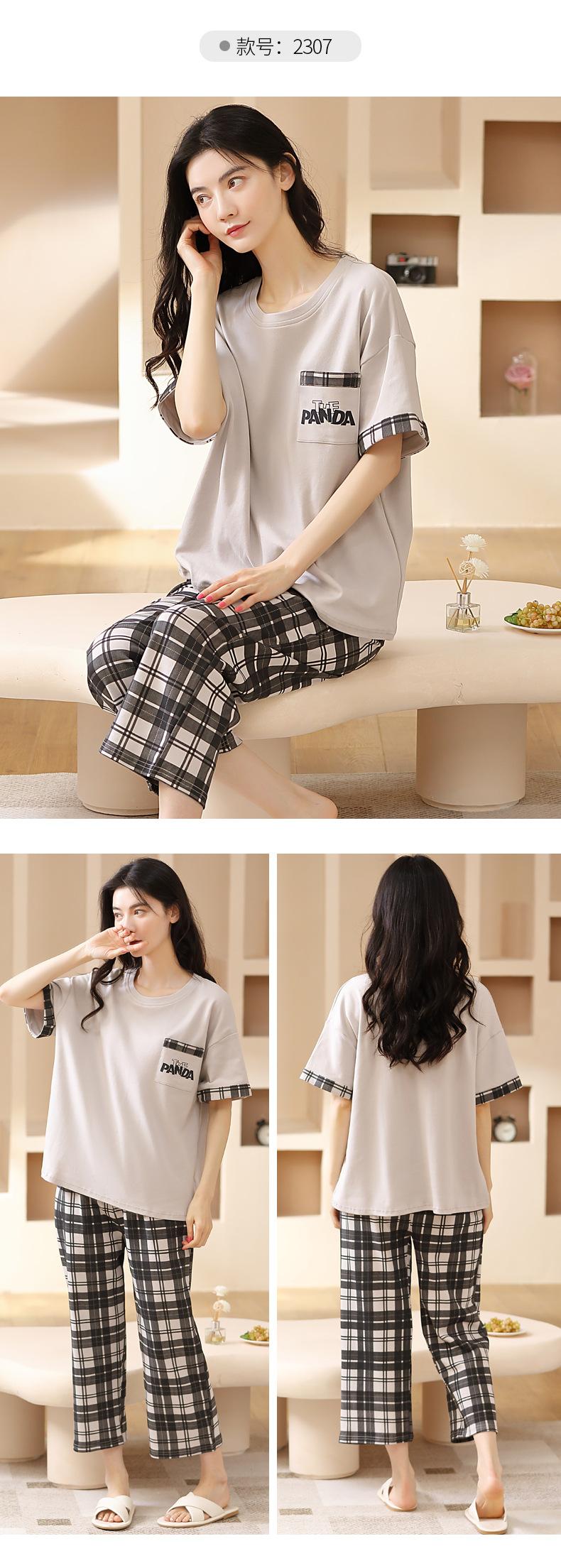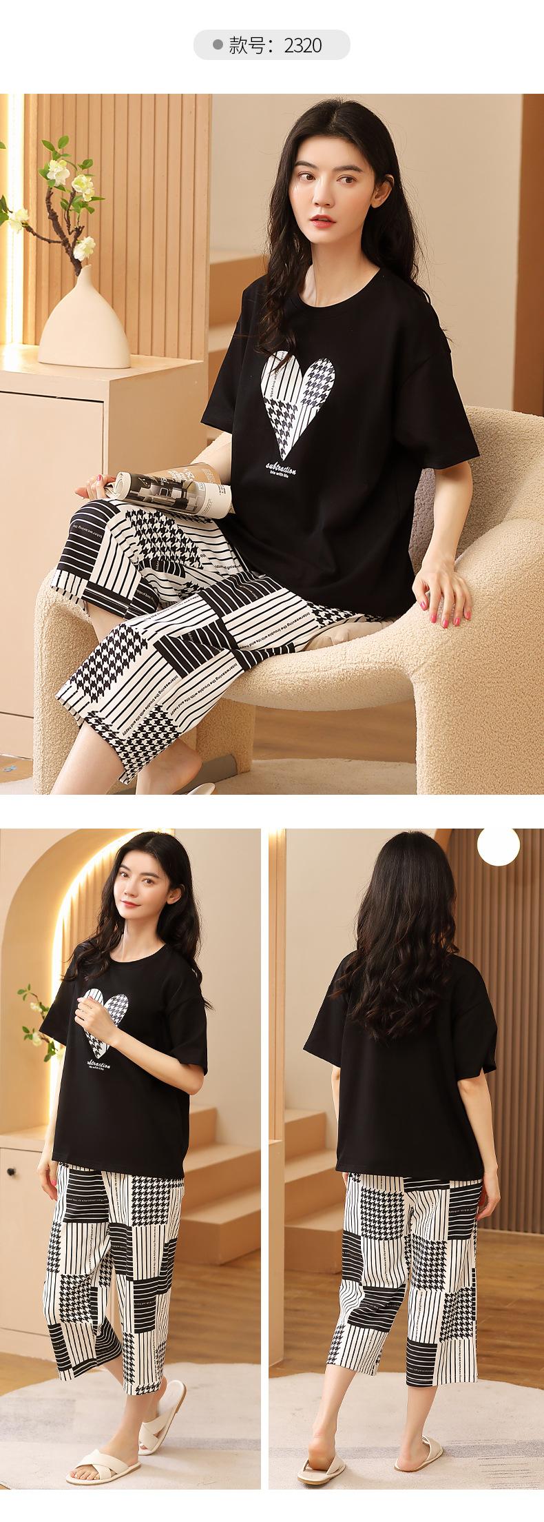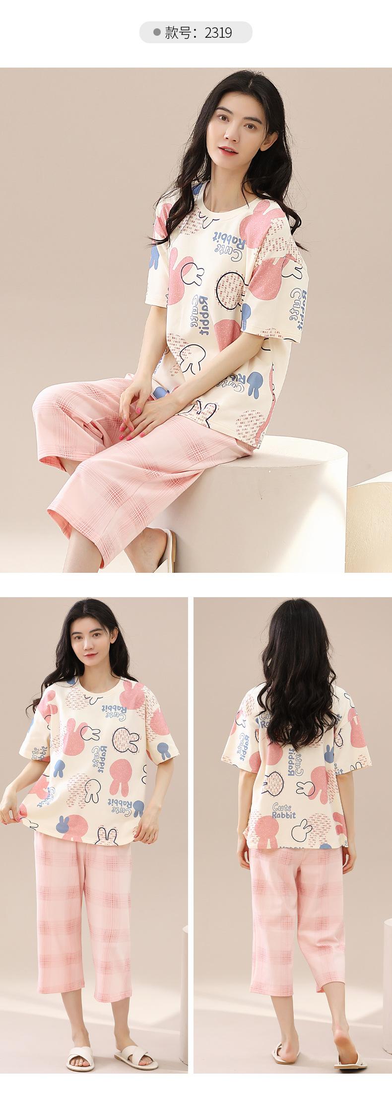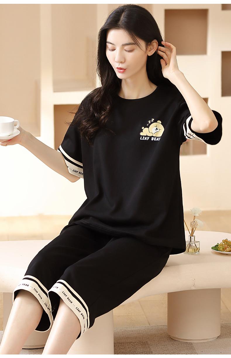 Pijamas de verano para mujer, de algodón puro, de manga corta, estilo capri, ropa informal de estilo dulce para el hogar, ropa exterior.