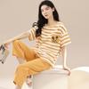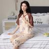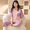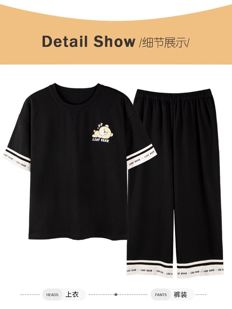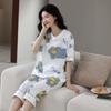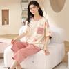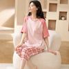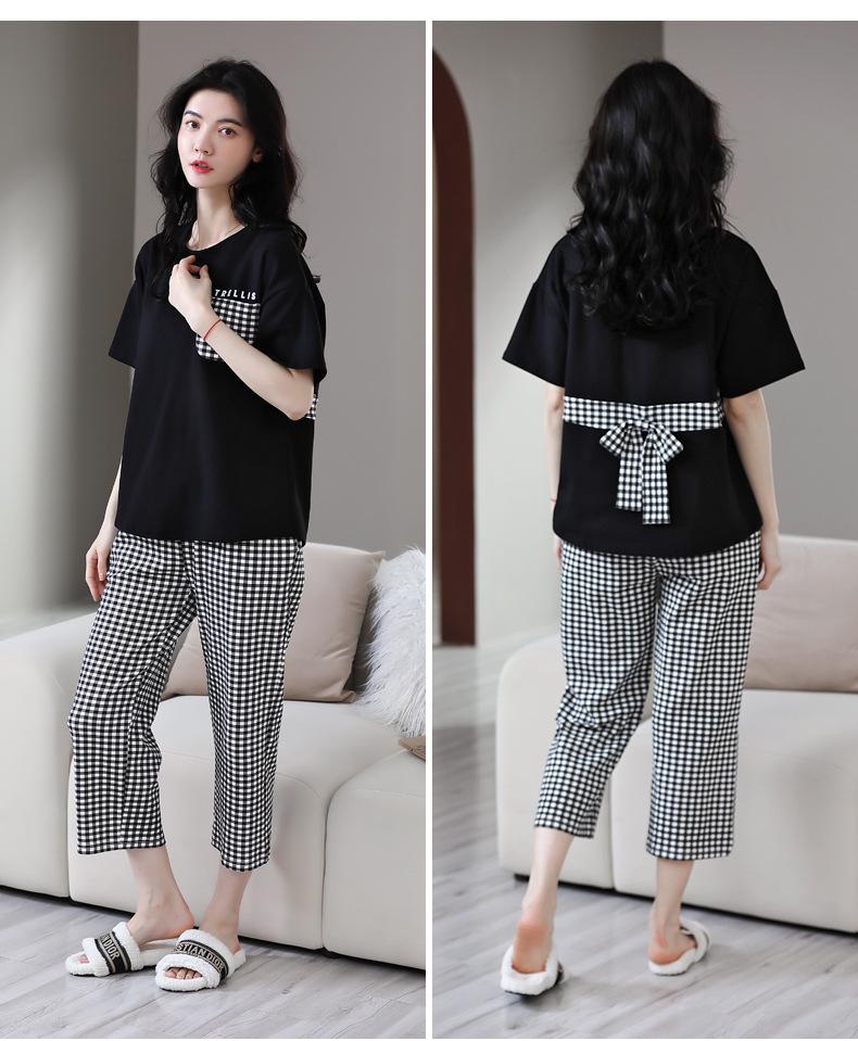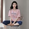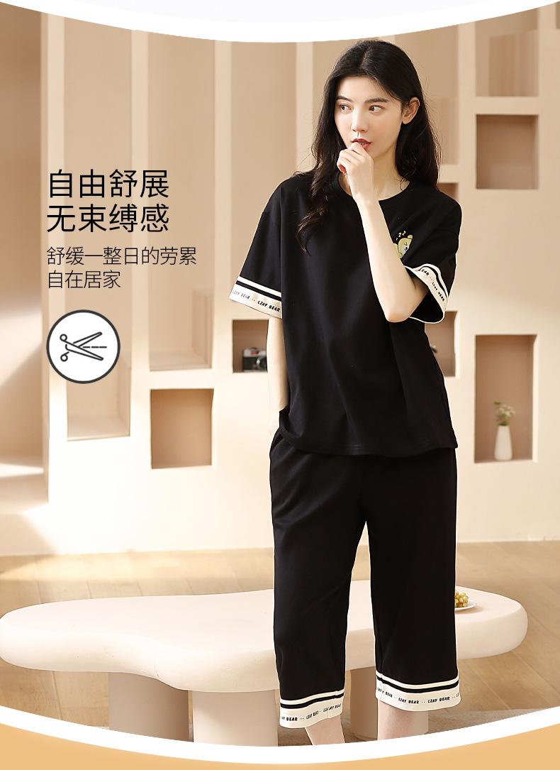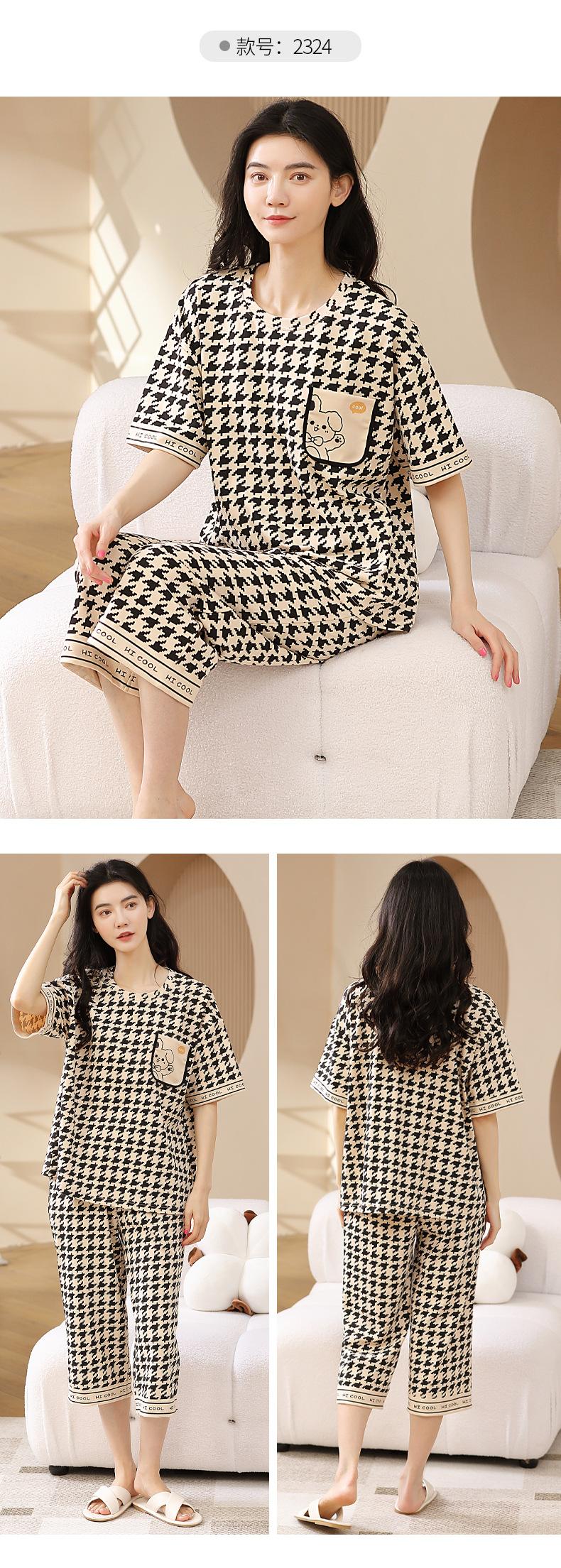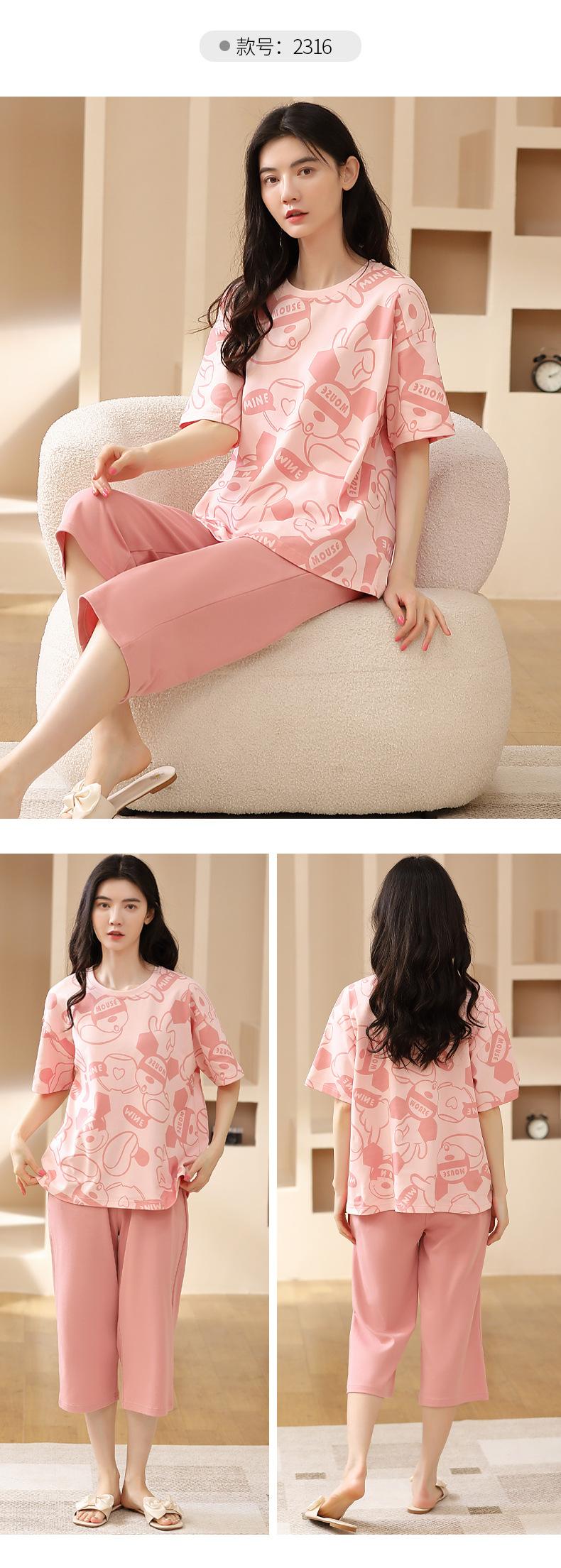 Pijamas de verano para mujer, de algodón puro, de manga corta, estilo capri, ropa informal de estilo dulce para el hogar, ropa exterior.