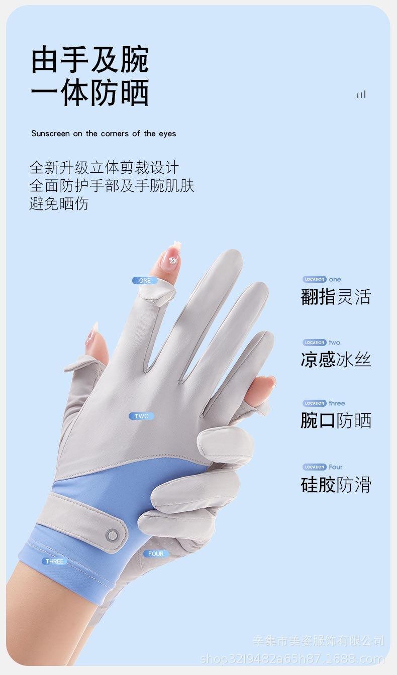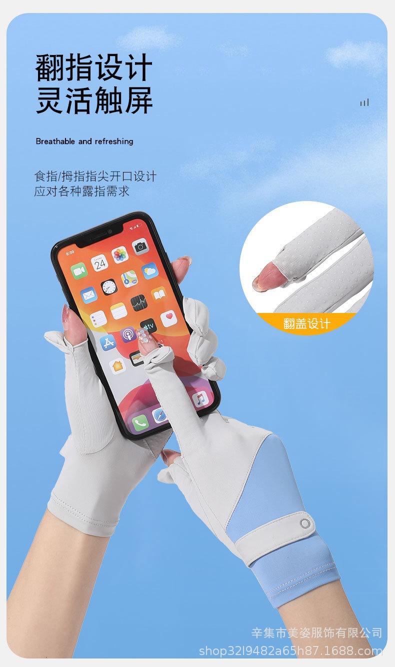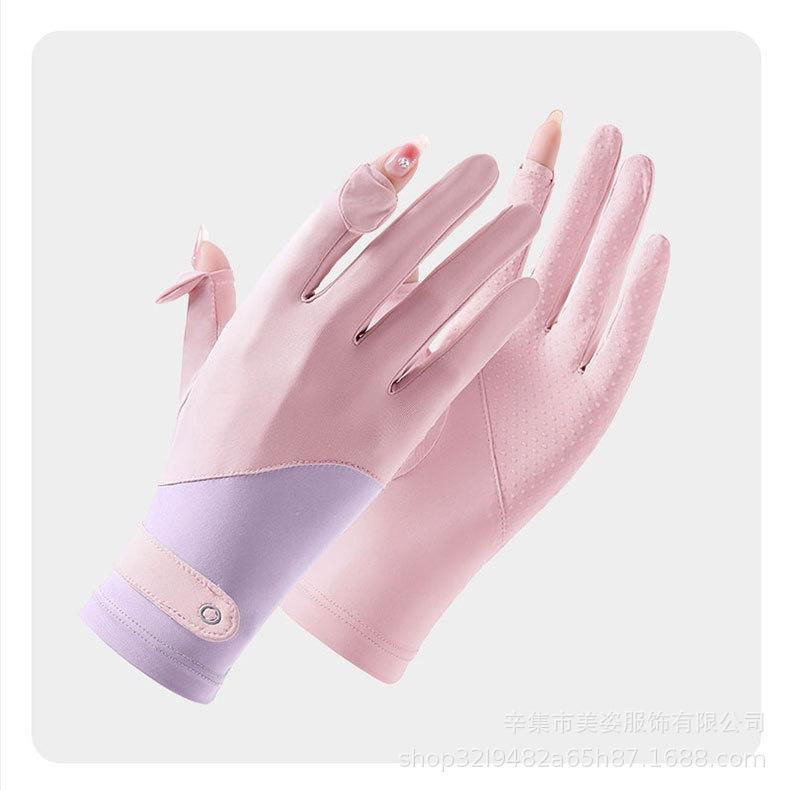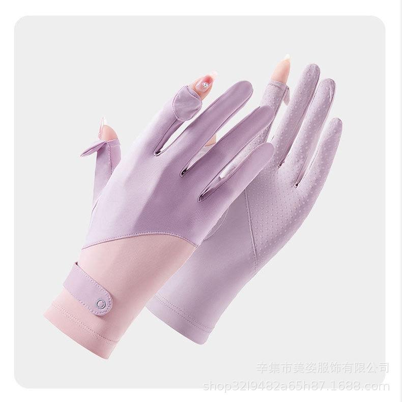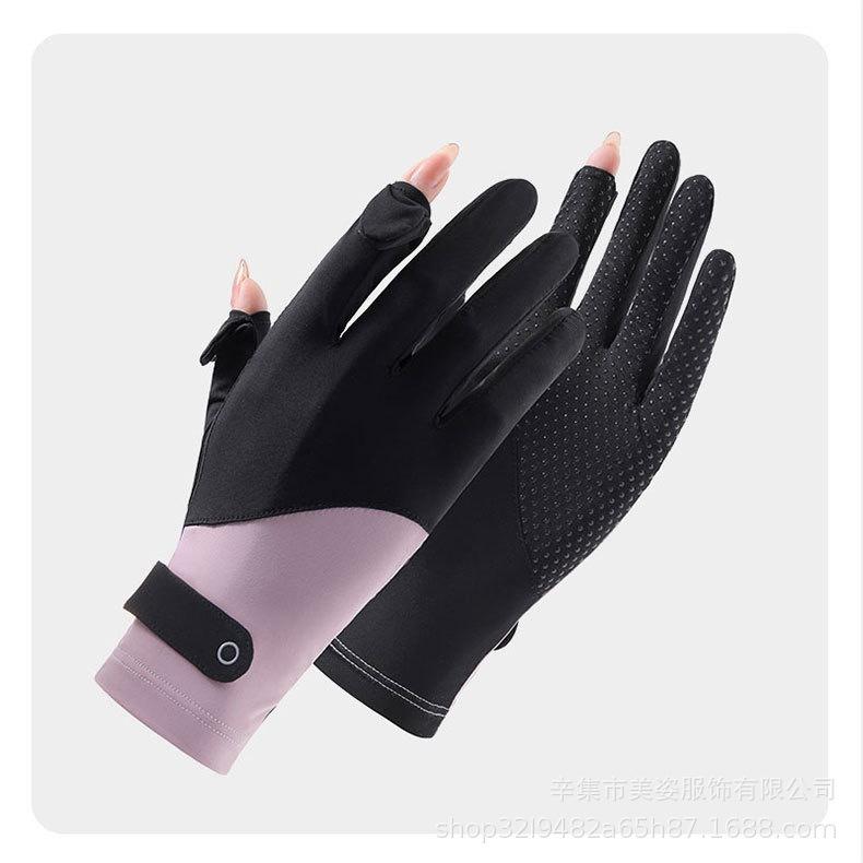 Guantes de Protección Solar para Mujer, Anti-uv, Ciclismo y Conducción, Sombreado Fino de Primavera y Verano, Transpirables, Guantes de Seda de Hielo sin Dedos, Xinji