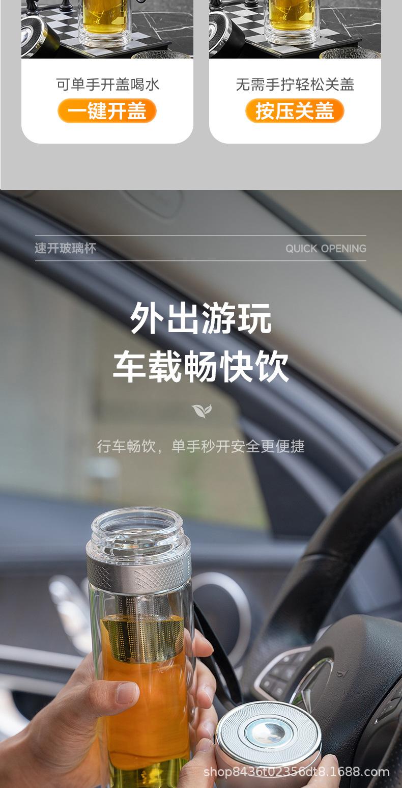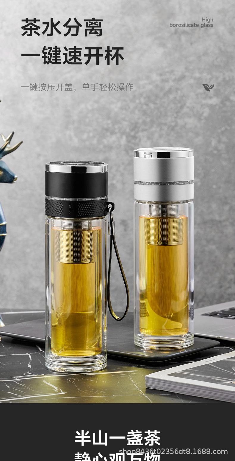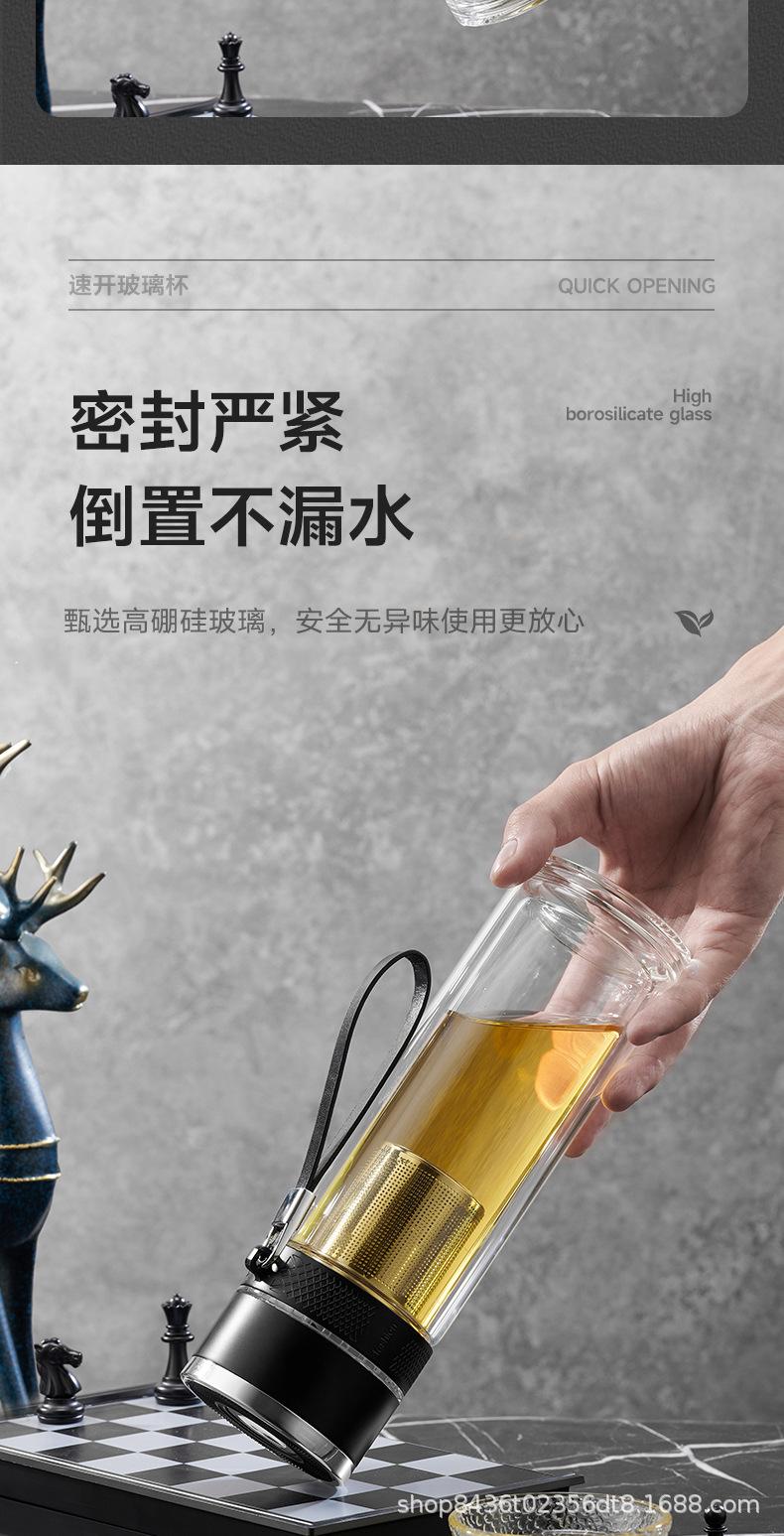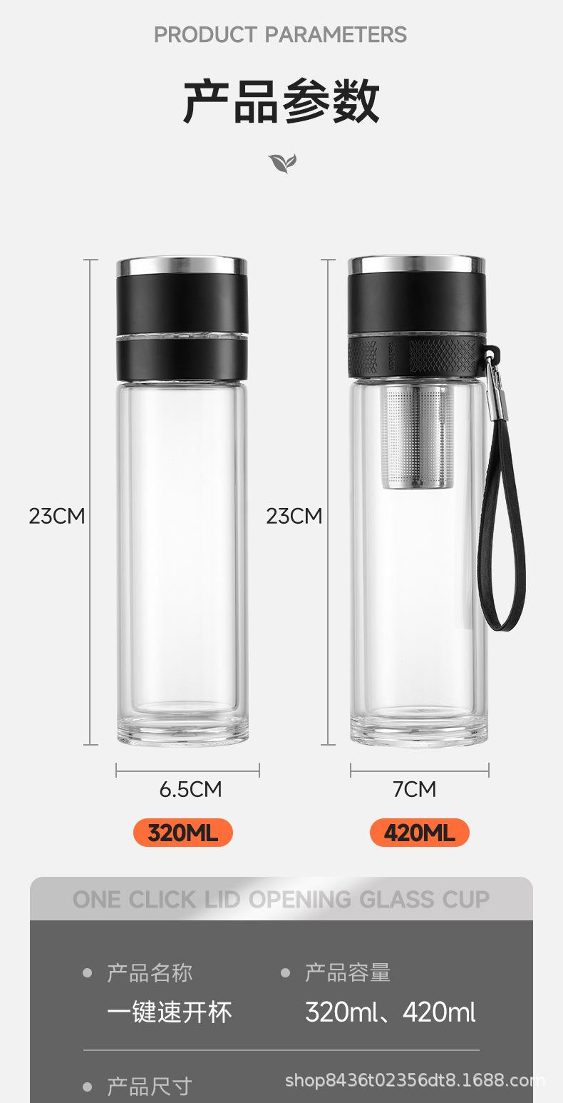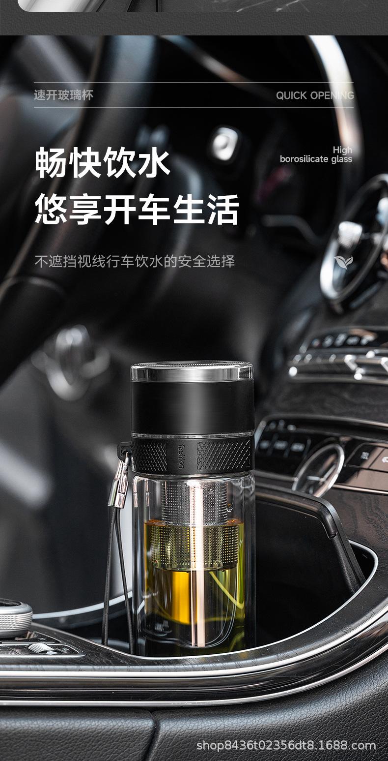 Taza de té de vidrio súper grande para hombre, nueva taza de té de alta gama con tapa abierta automática, separación de té, taza de agua portátil de doble capa